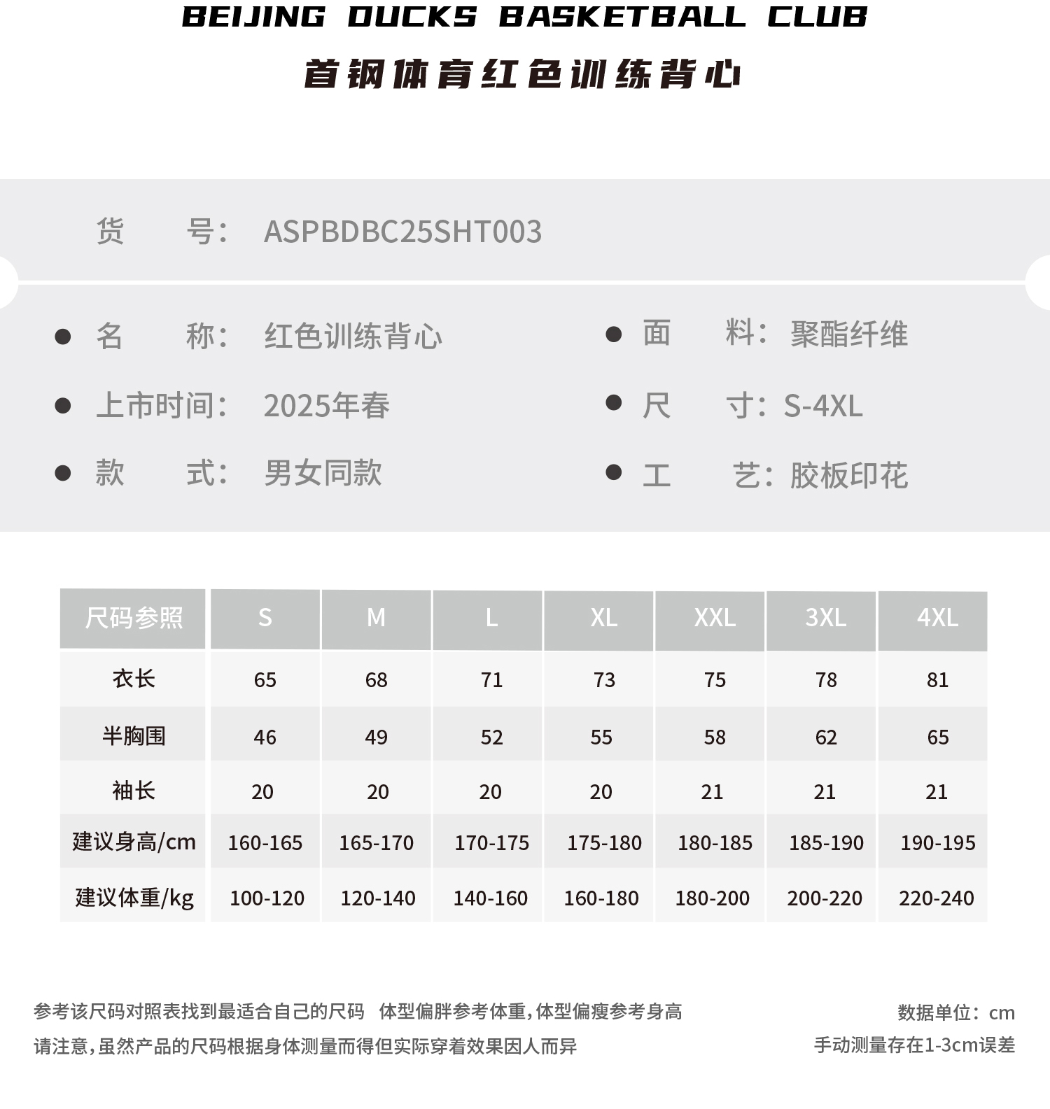 【官方正版】北京首钢篮球俱乐部 | 春夏新款红色训练背心透气凉爽运动户外