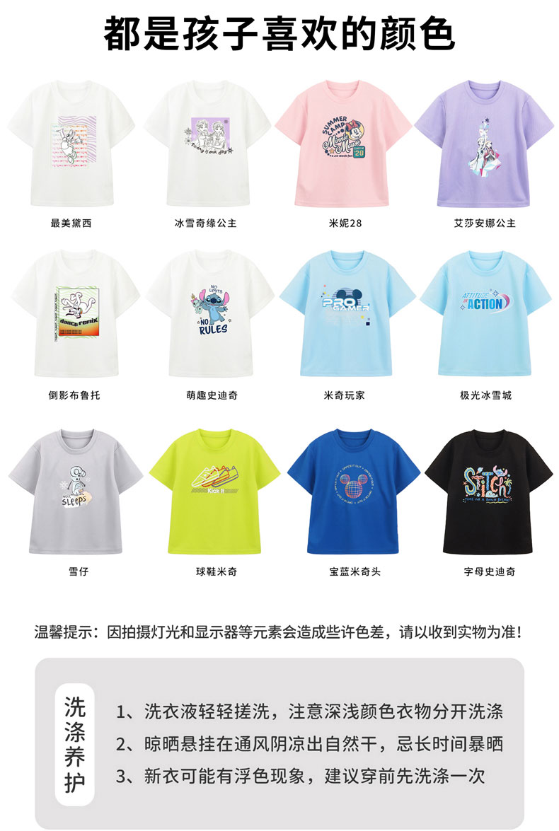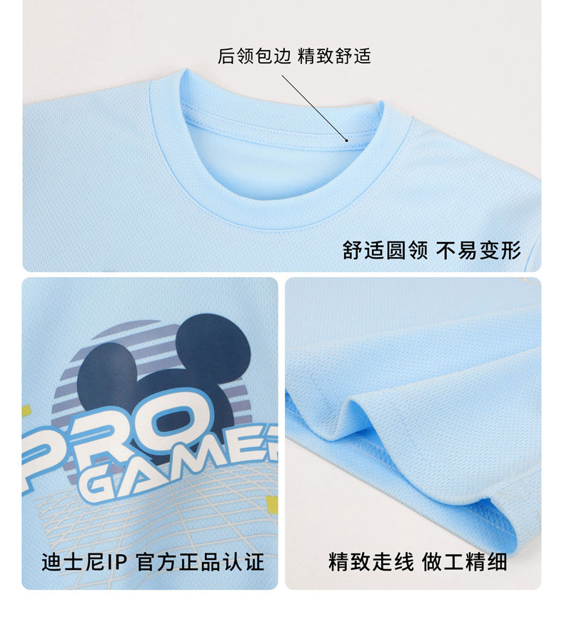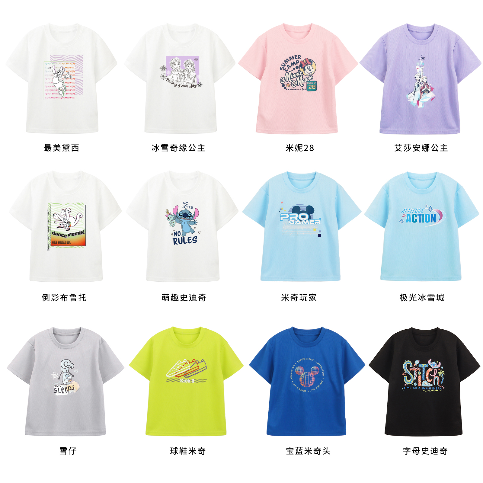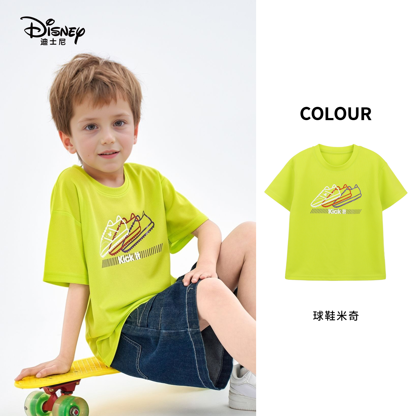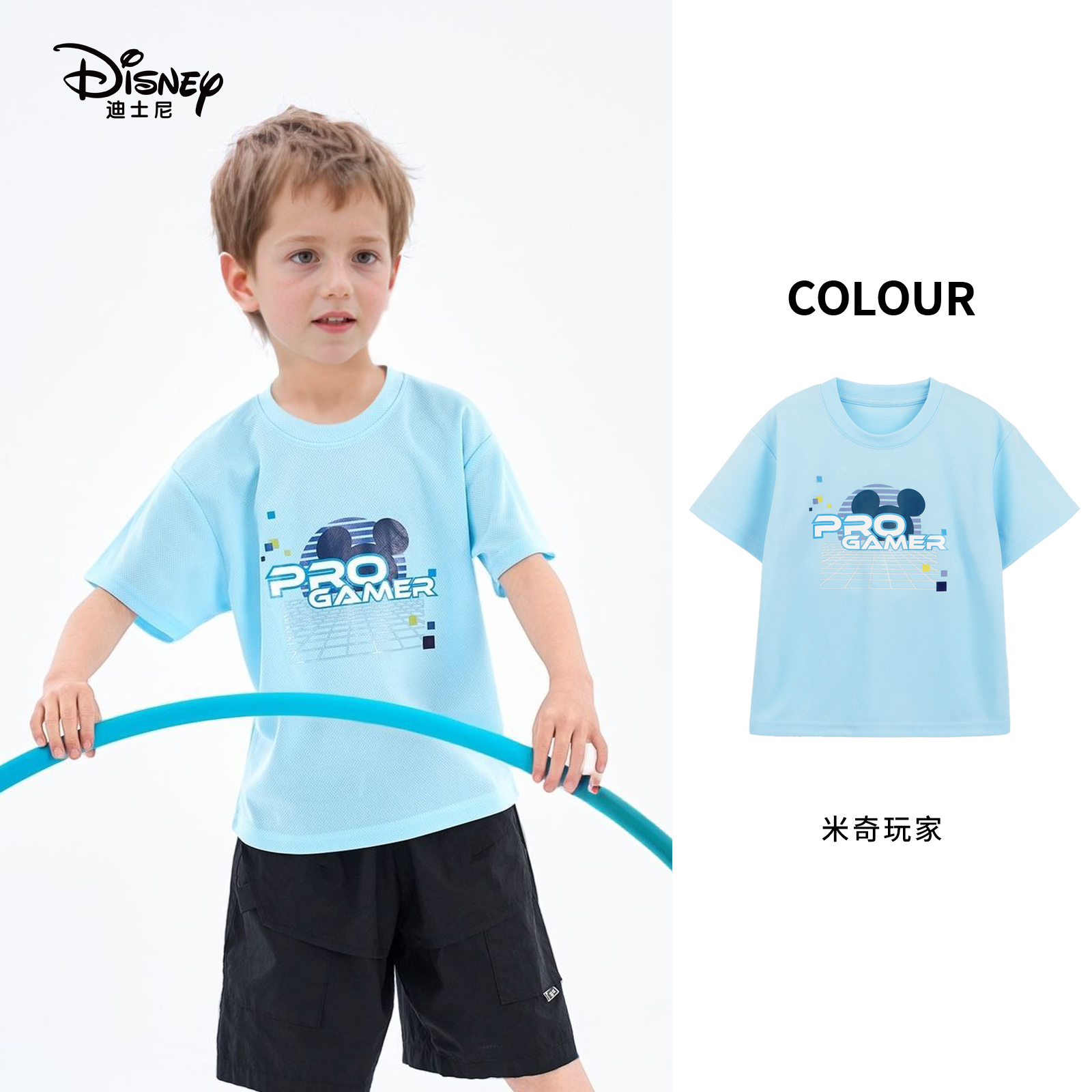 【39.9元/3件任选清仓】迪士尼速干T恤12色男童女童短袖儿童夏季不易褶皱透气舒适爽滑