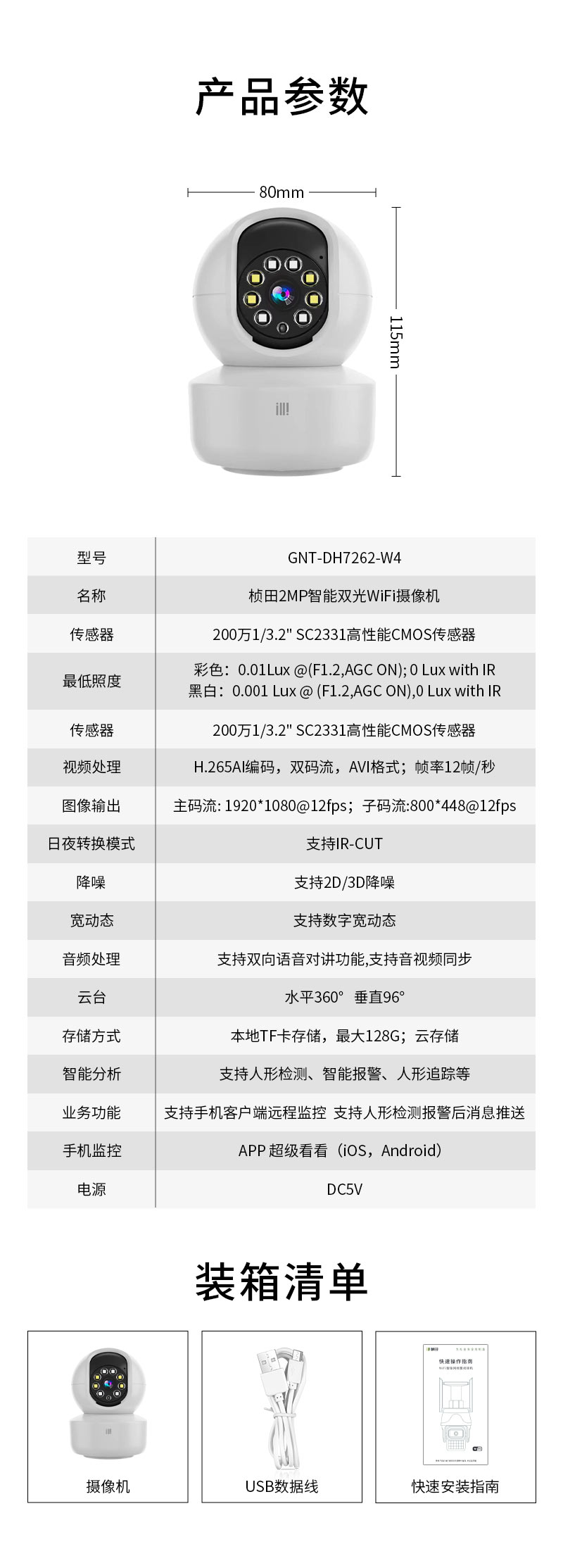 桢田200万家用远程360度wifi摇头机 DH7262-W4