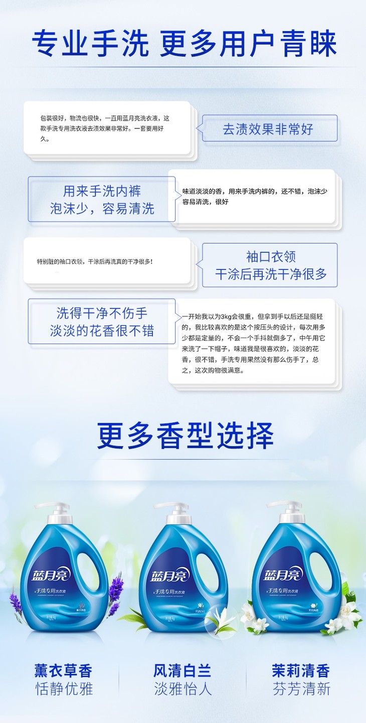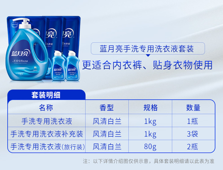 10001024【品牌直发】【内衣内裤救星】蓝月亮手洗洗衣液1kg+袋1kg×3+旅行装80g×2风清白兰香