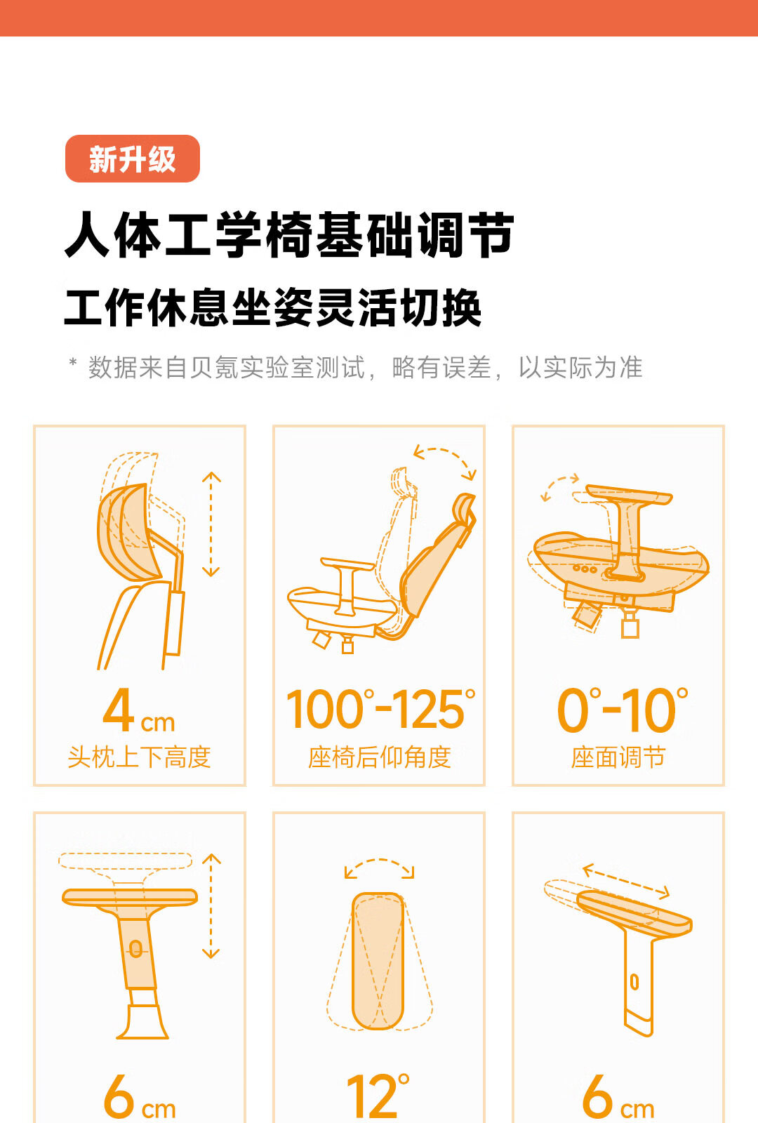 贝氪人体工学电脑椅家用舒适久坐不累午休可躺 智能气动托腰椅