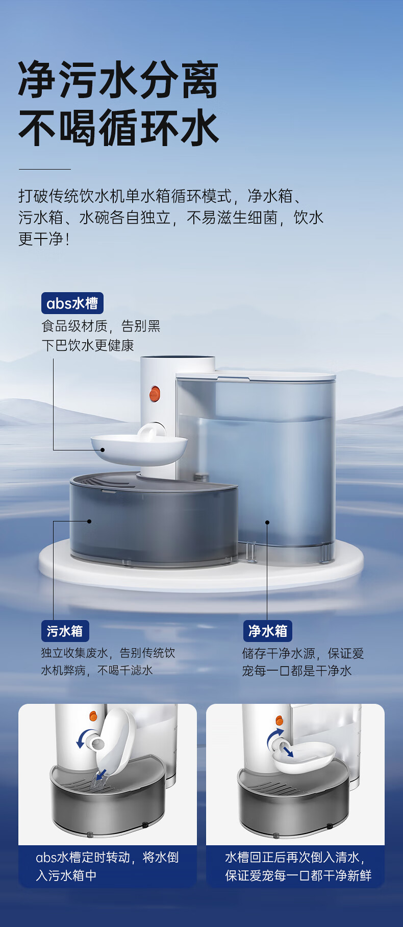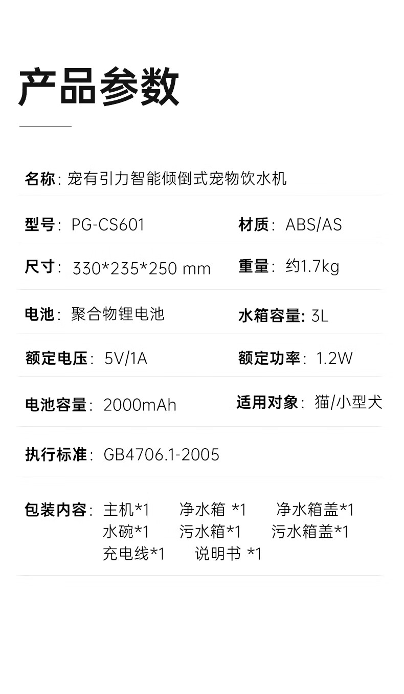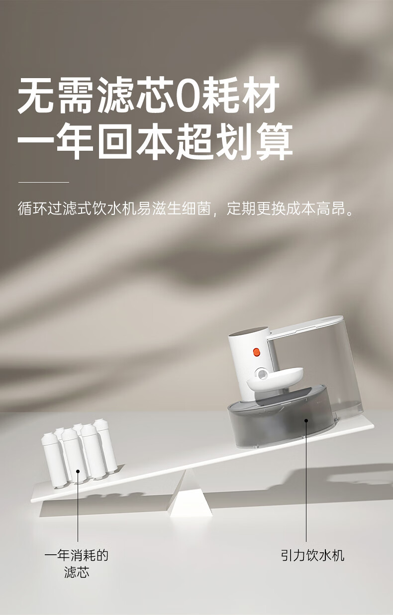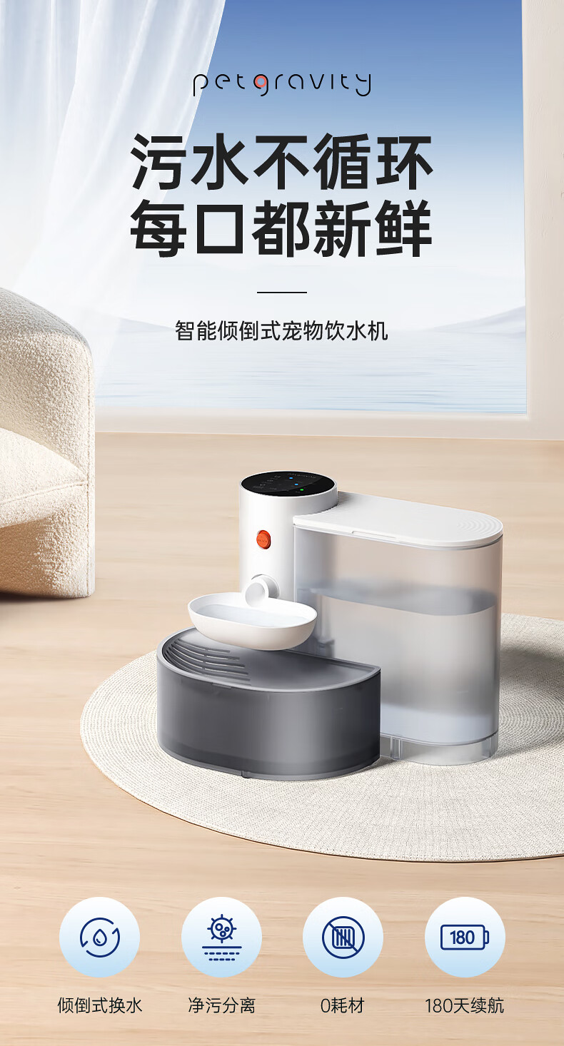 PETGRAVITY宠有引力倾倒式猫咪饮水机流动水不插电自动喂水器宠物狗狗饮水器 白色【0耗材 无线续航180天】
