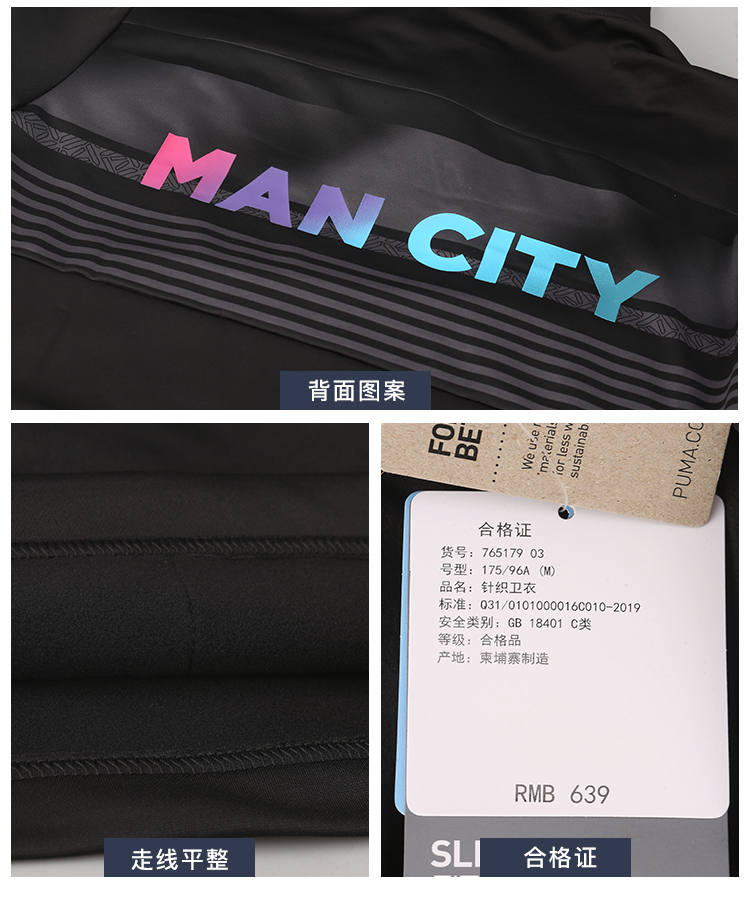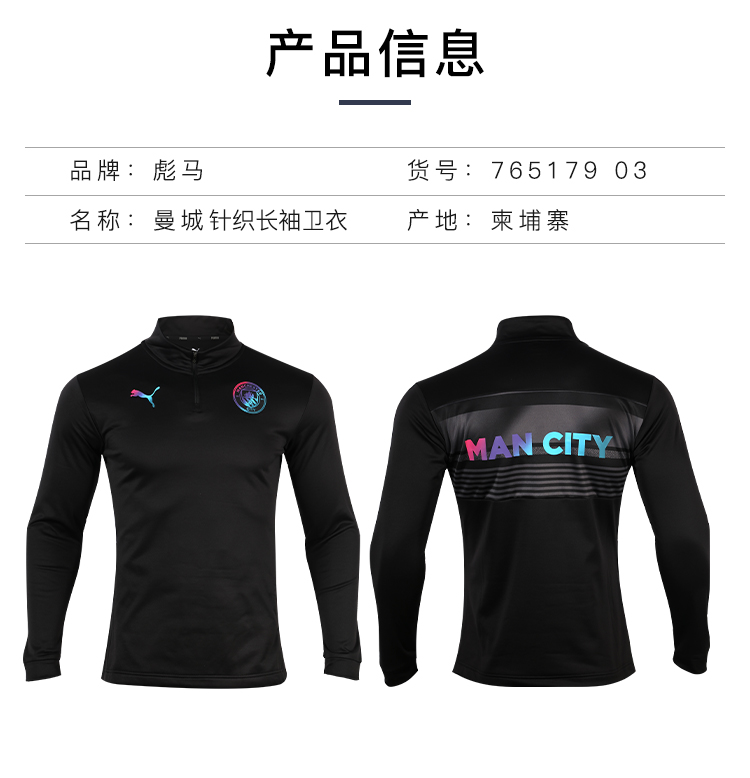PUMA/彪马曼城足球比赛训练半拉链长袖卫衣成人男765179-03