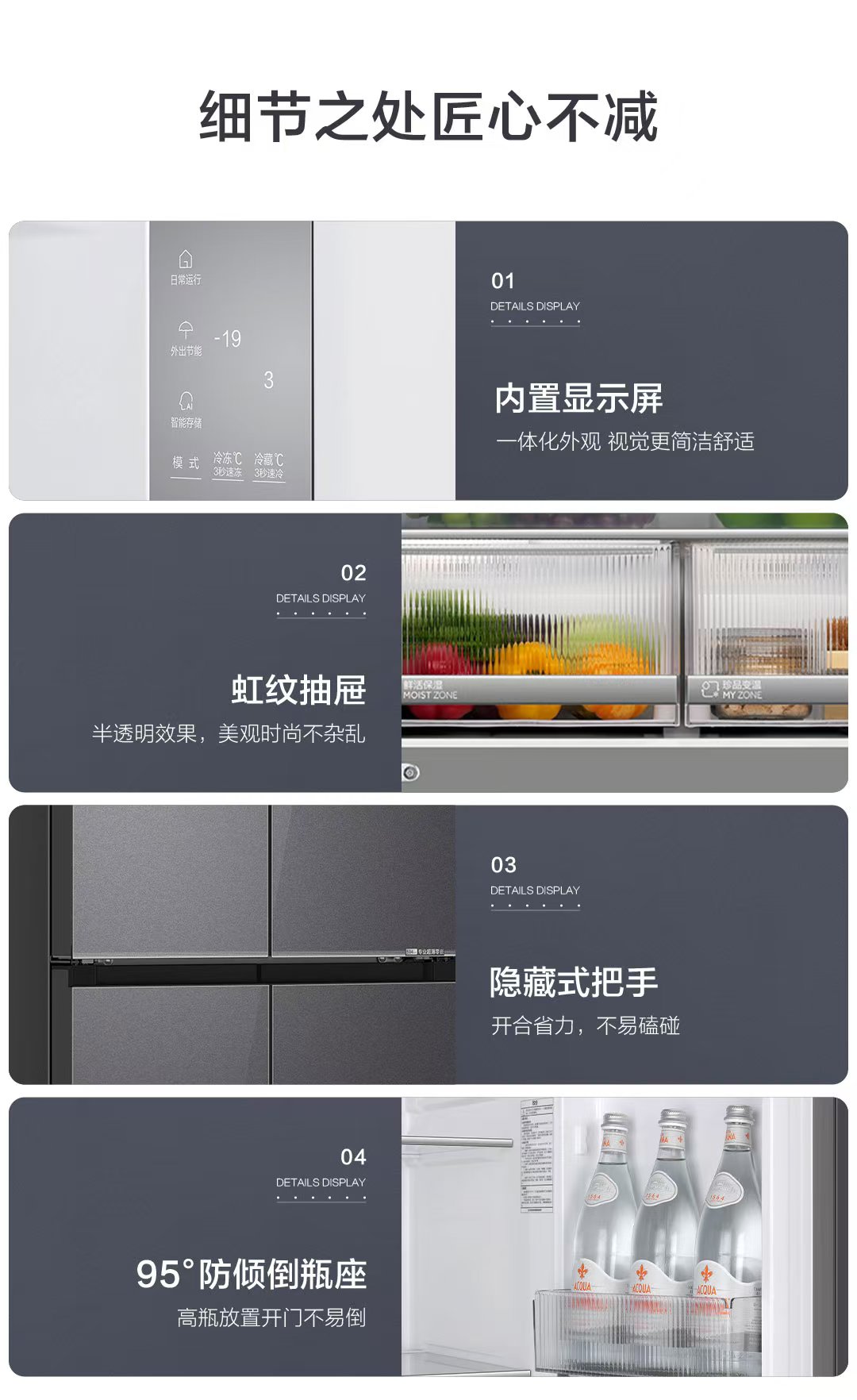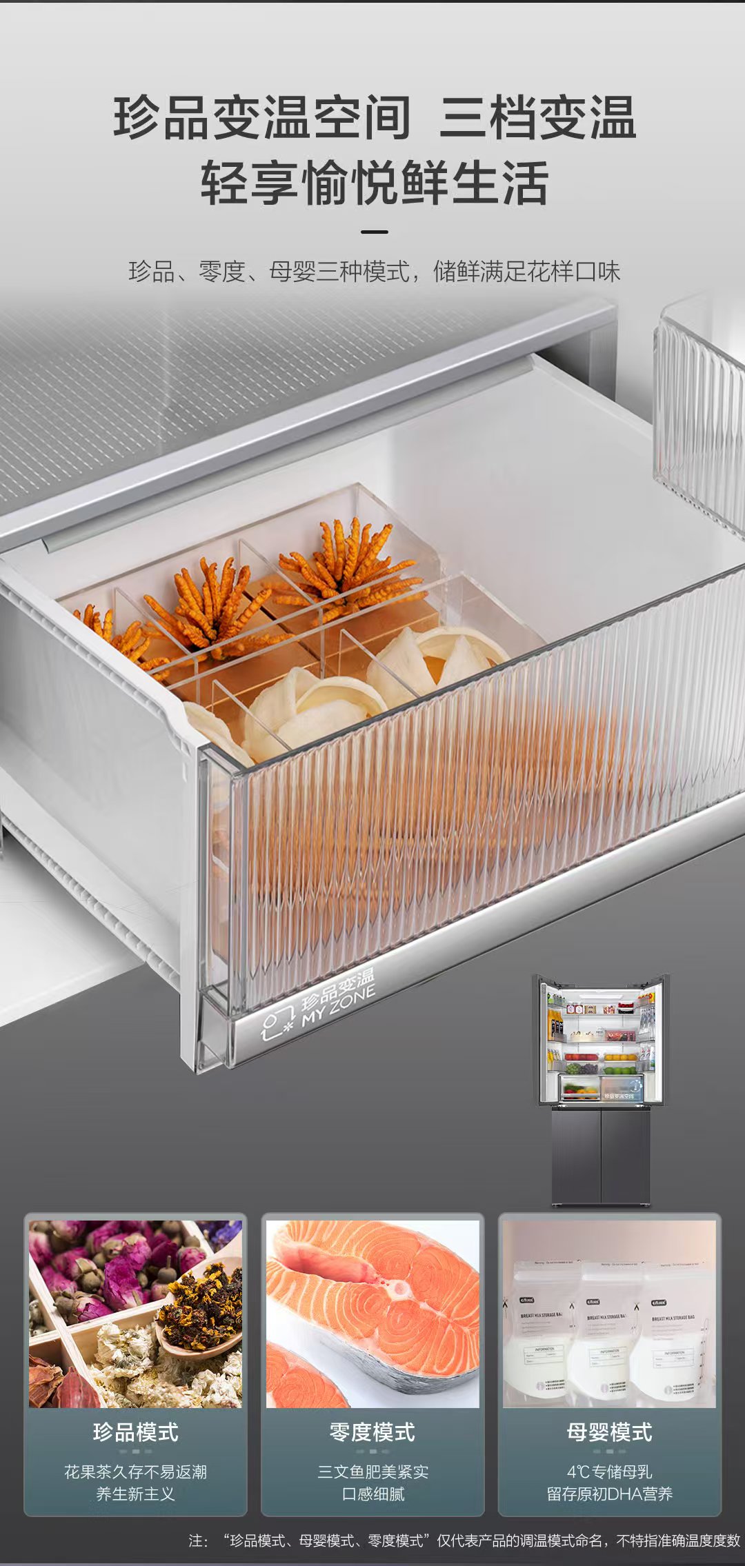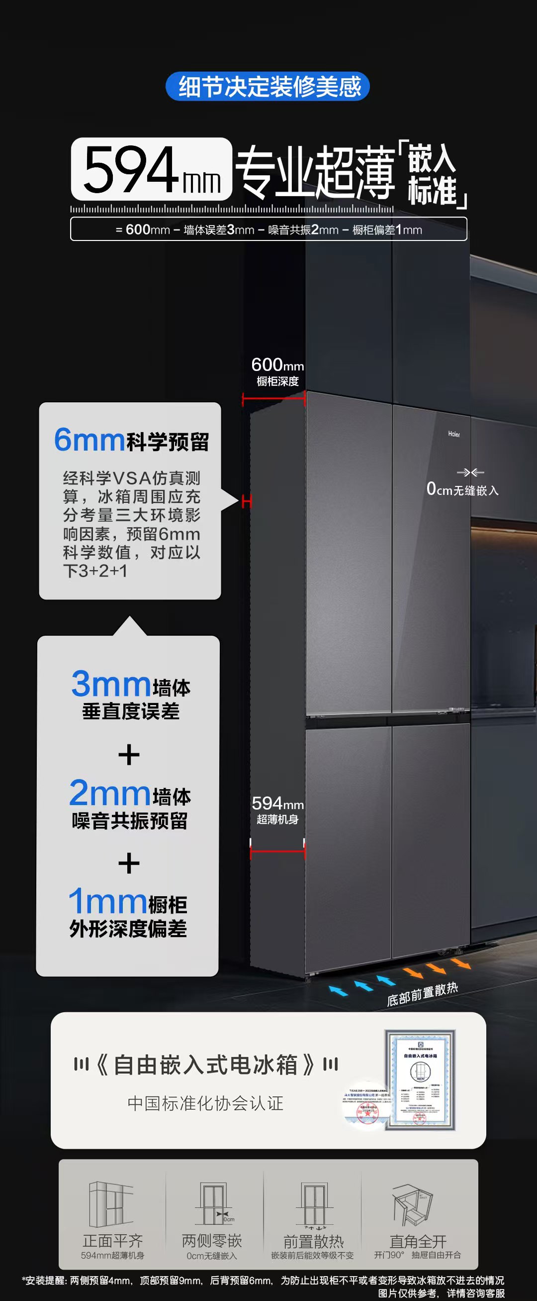 海尔冰箱501升超薄零嵌入式60cm内四开门双开门十字门一级能效双变频BCD-501WGHTDB5XAU1