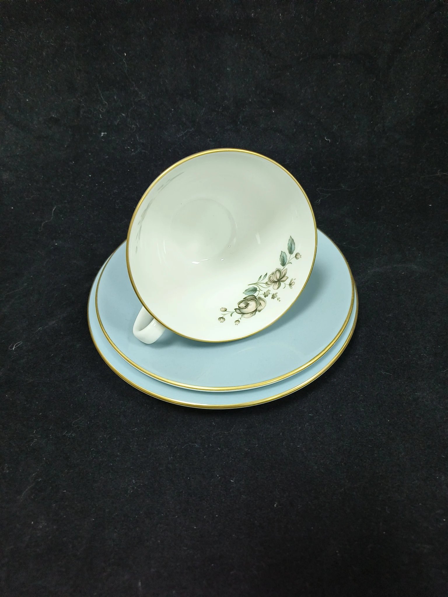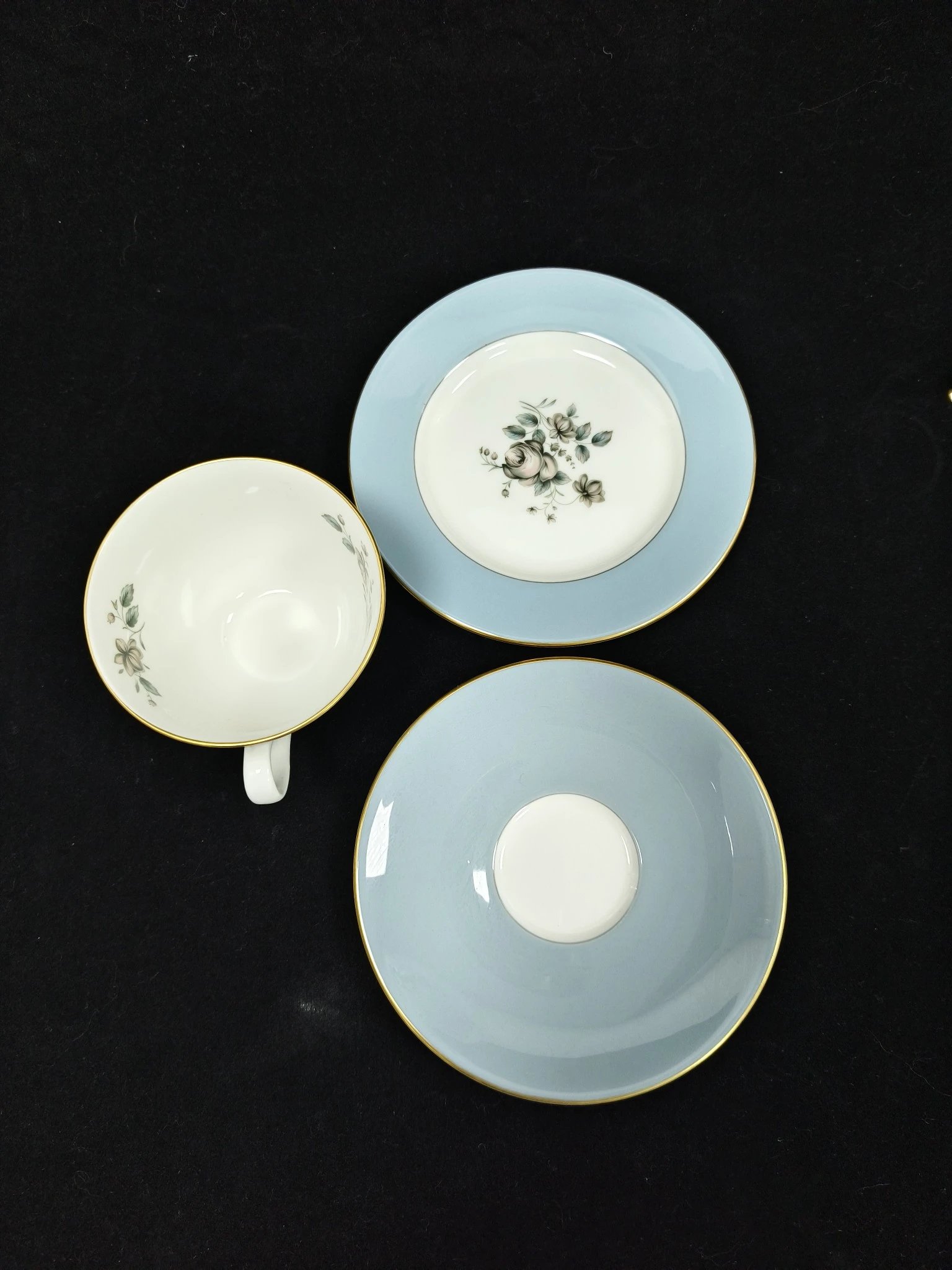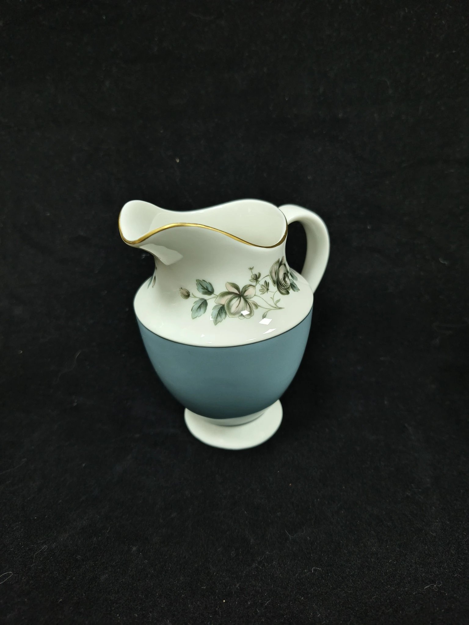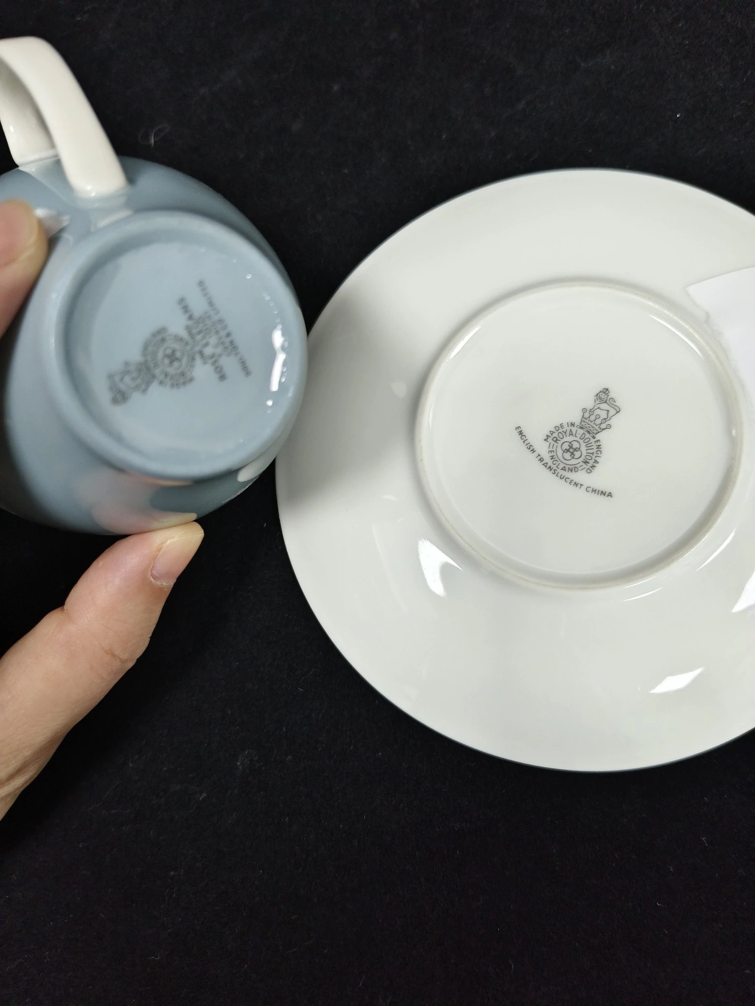 皇家道尔顿蓝色玫瑰系列作品,这组作品包括了一杯一碟的摩卡杯,一杯两碟阔口杯,糖罐奶罐以及壶。莫兰迪蓝色非常舒适,内敛而优雅。