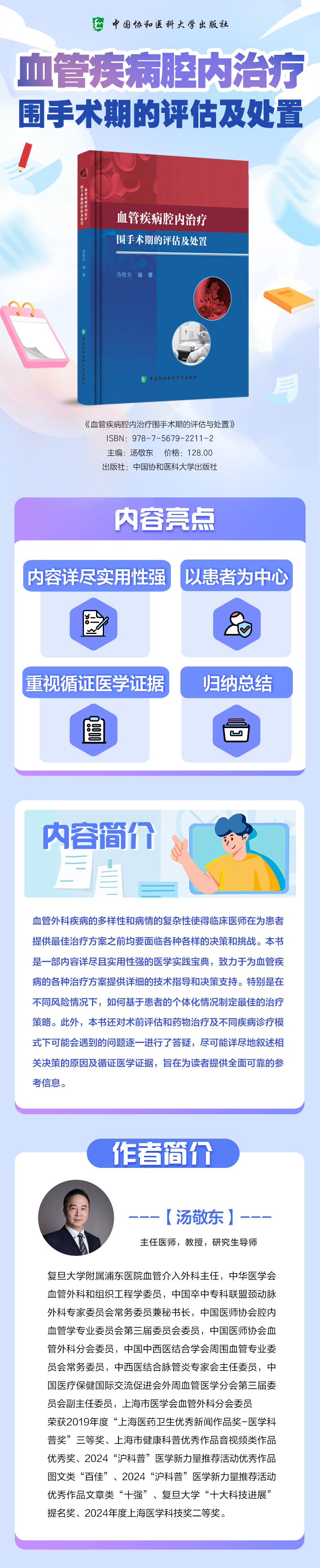 血管疾病腔内治疗围手术期的评估与处置 汤敬东 主编 为血管疾病的各种治疗方案提供详细的技术指导等 中国协和医科大学出版社