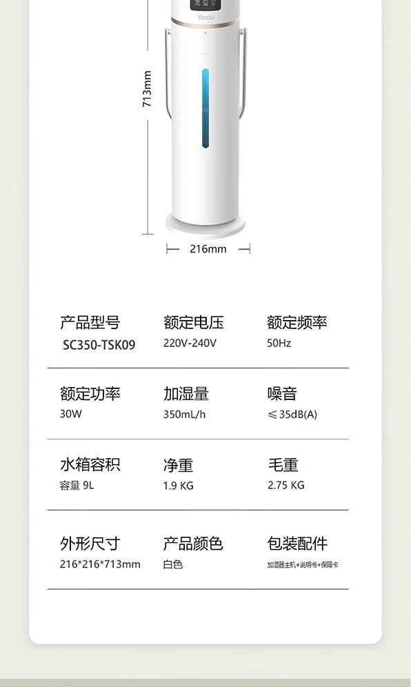 亚都亚都/YADU家用客厅落地式大雾量卧室轻音大容量加湿器空调伴侣SC350-TSK09