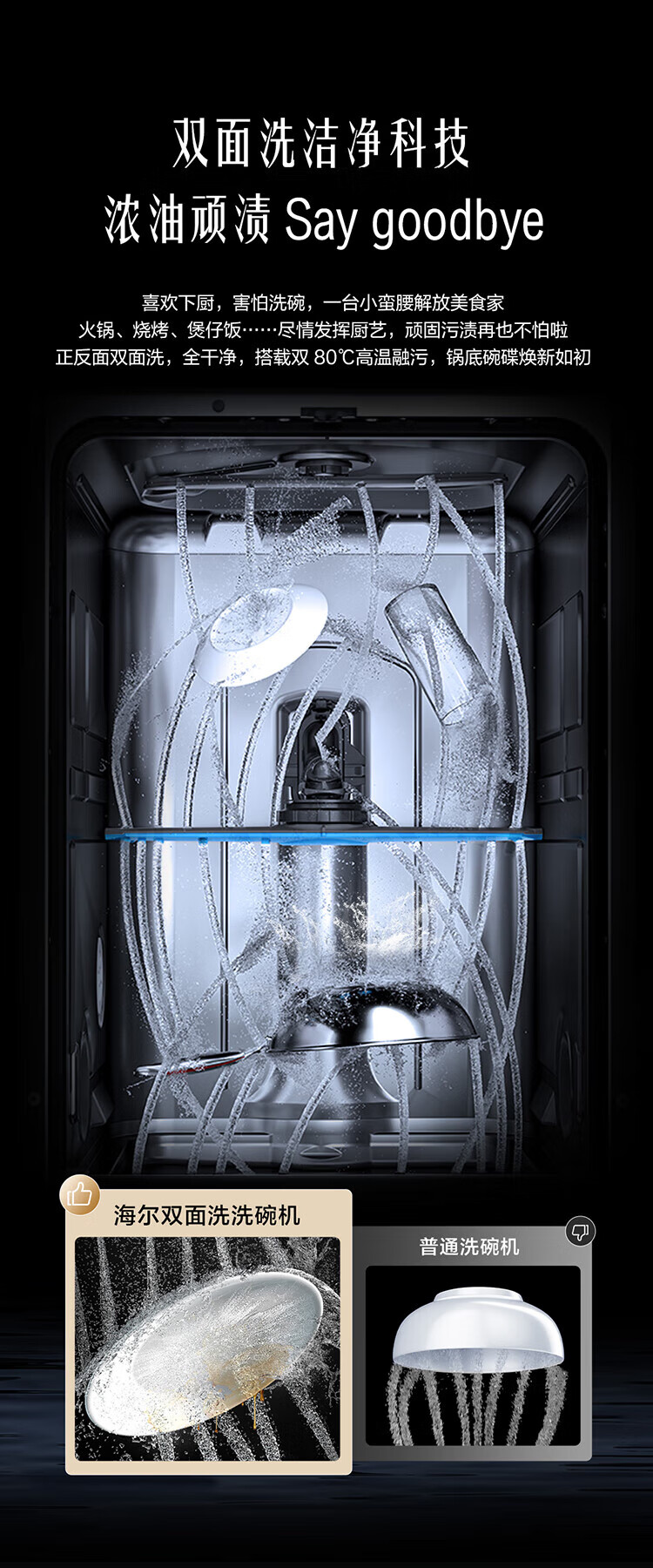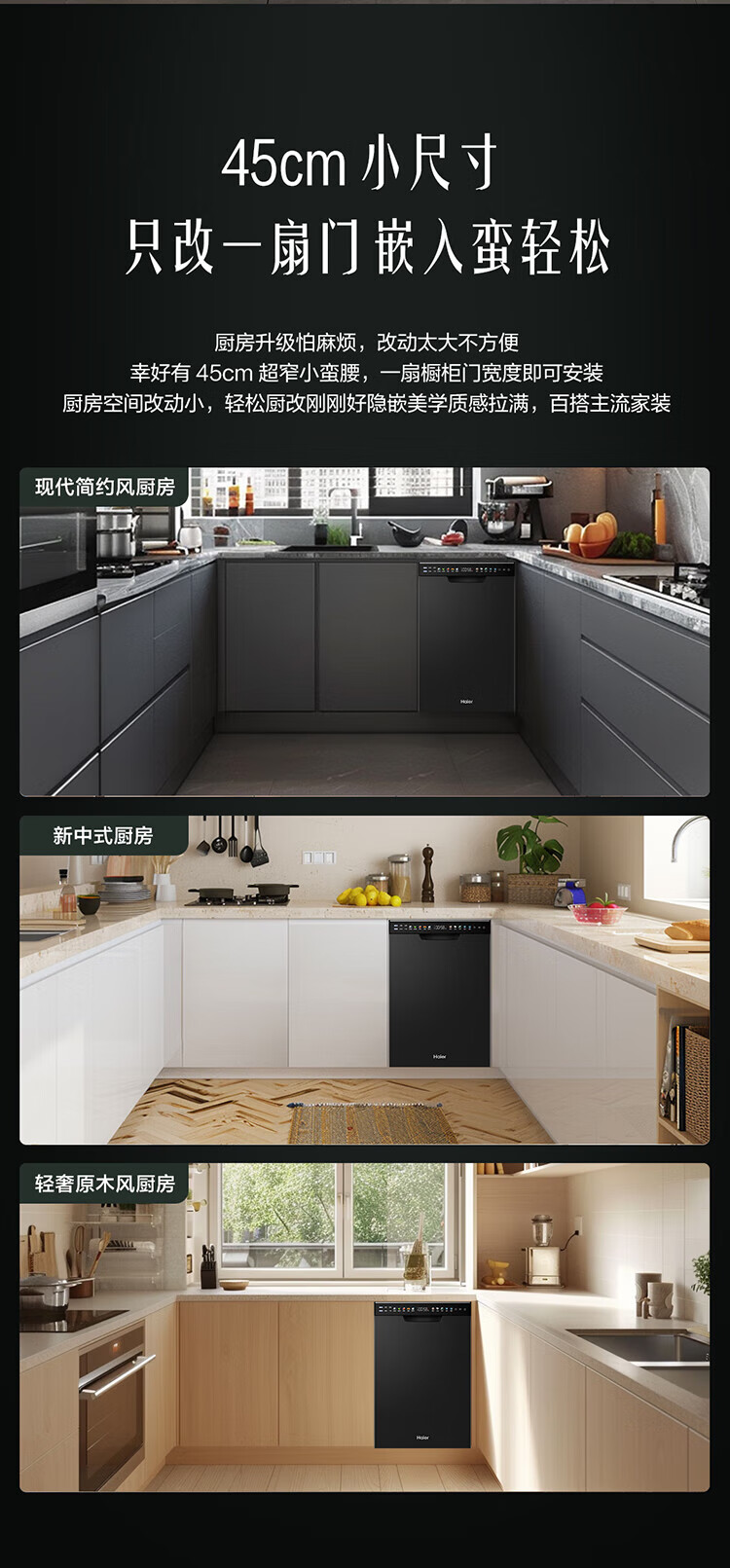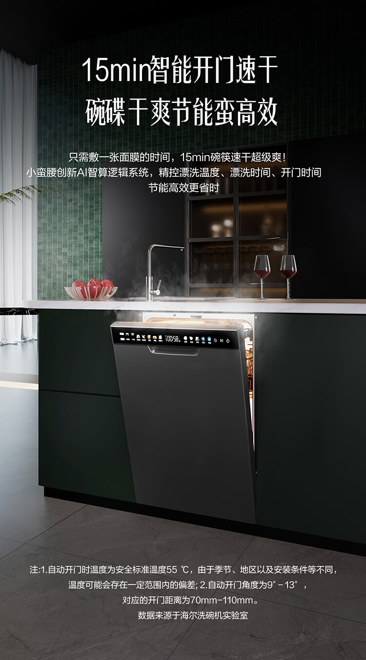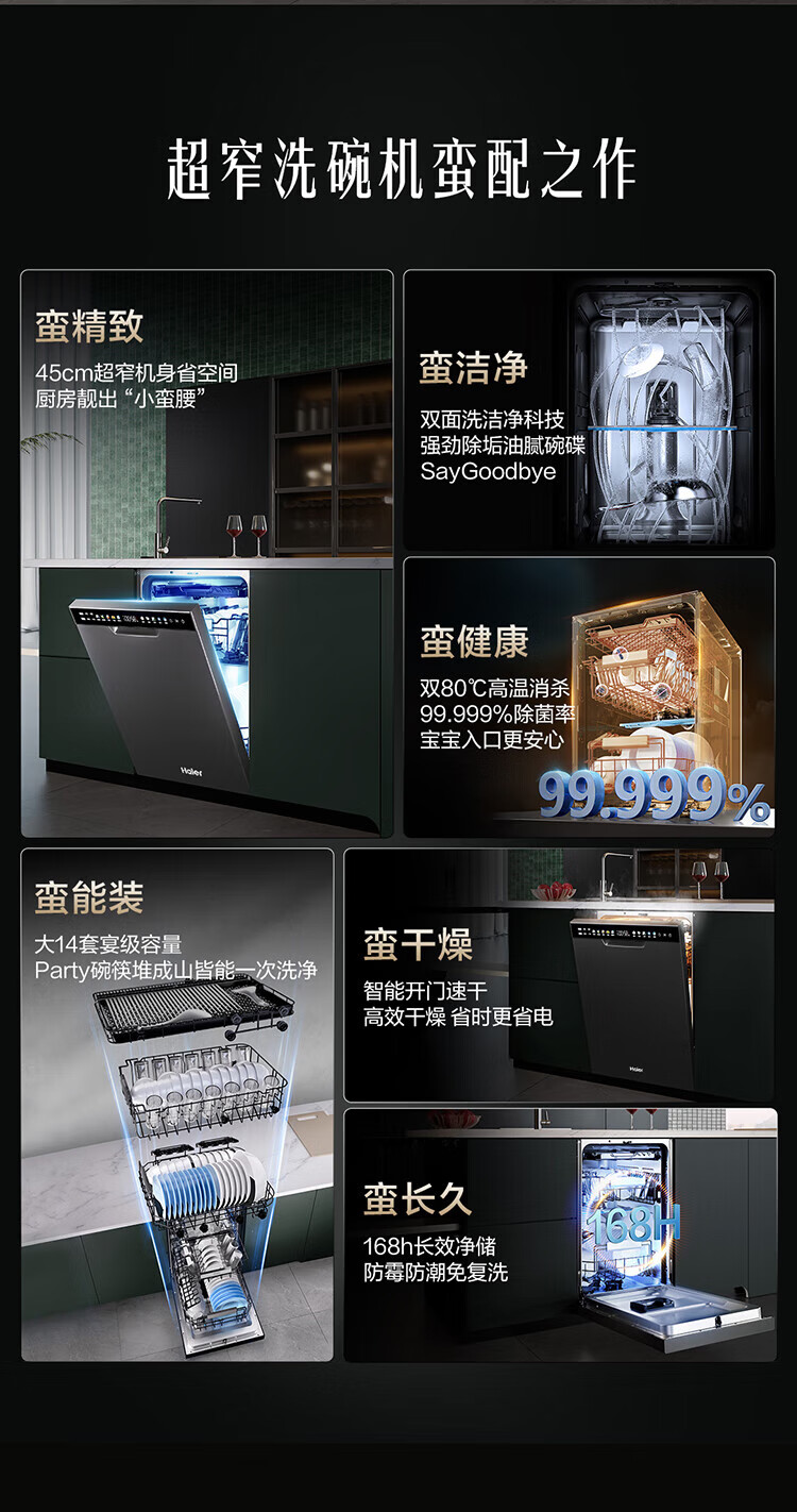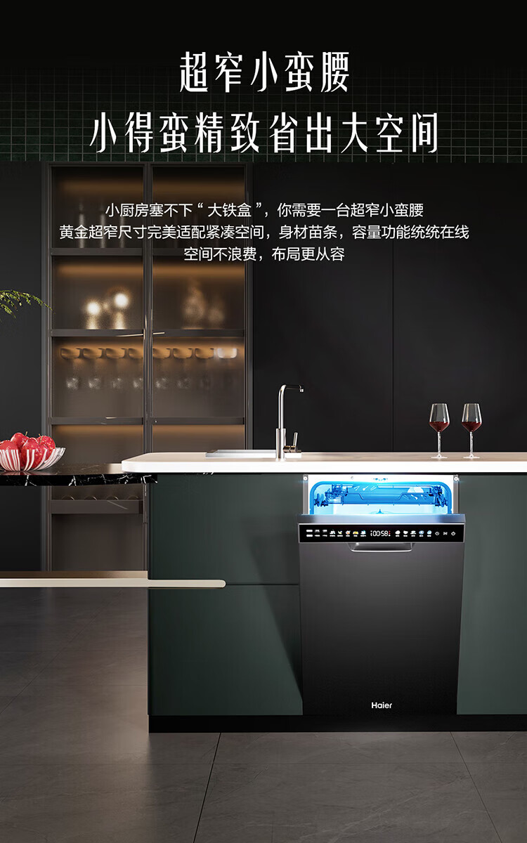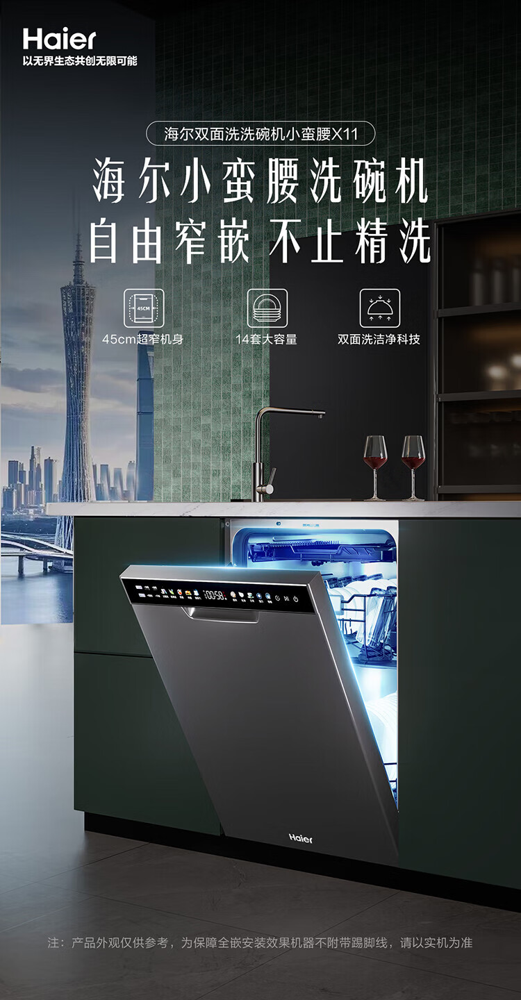 海尔(Haier)洗碗机【小蛮腰X11】X3000升级款超窄晶彩变频80℃消杀分区洗开门速干一级水效【超窄45cm】 嵌入式 115升【X-11】全新升级超窄双面洗