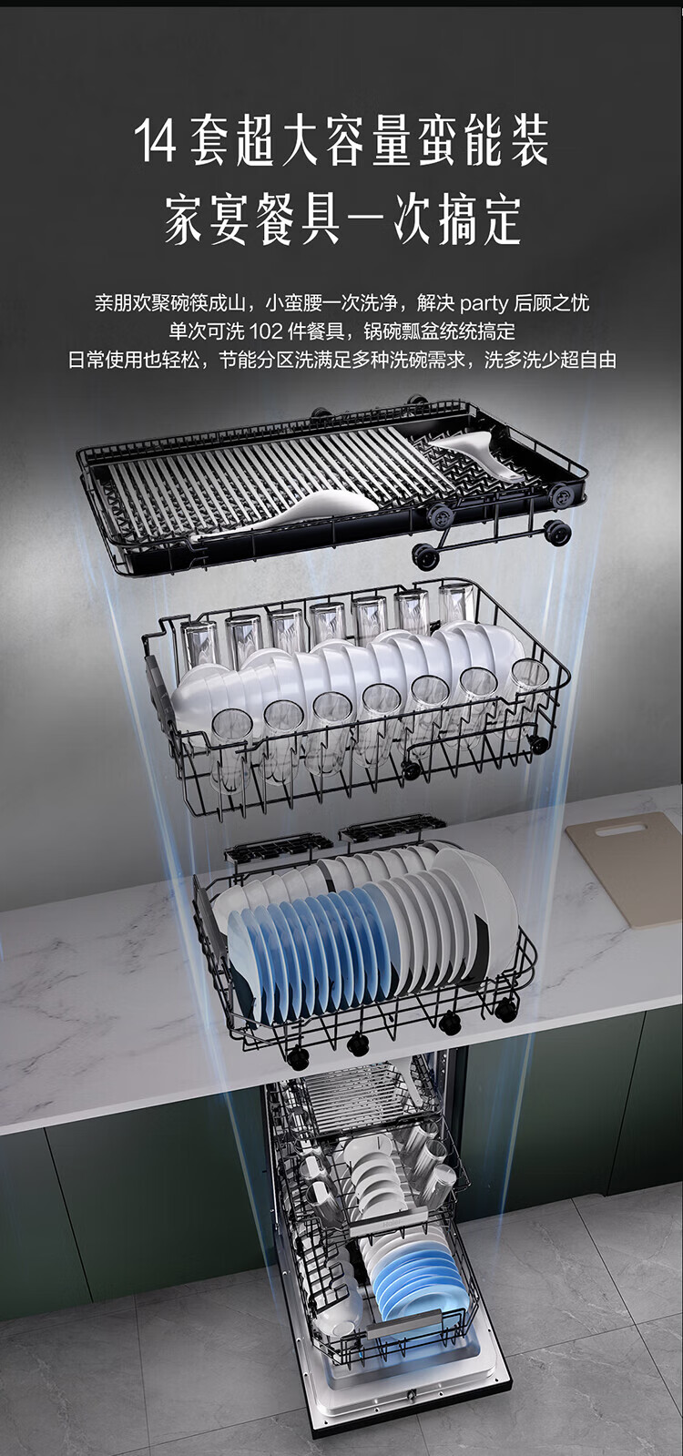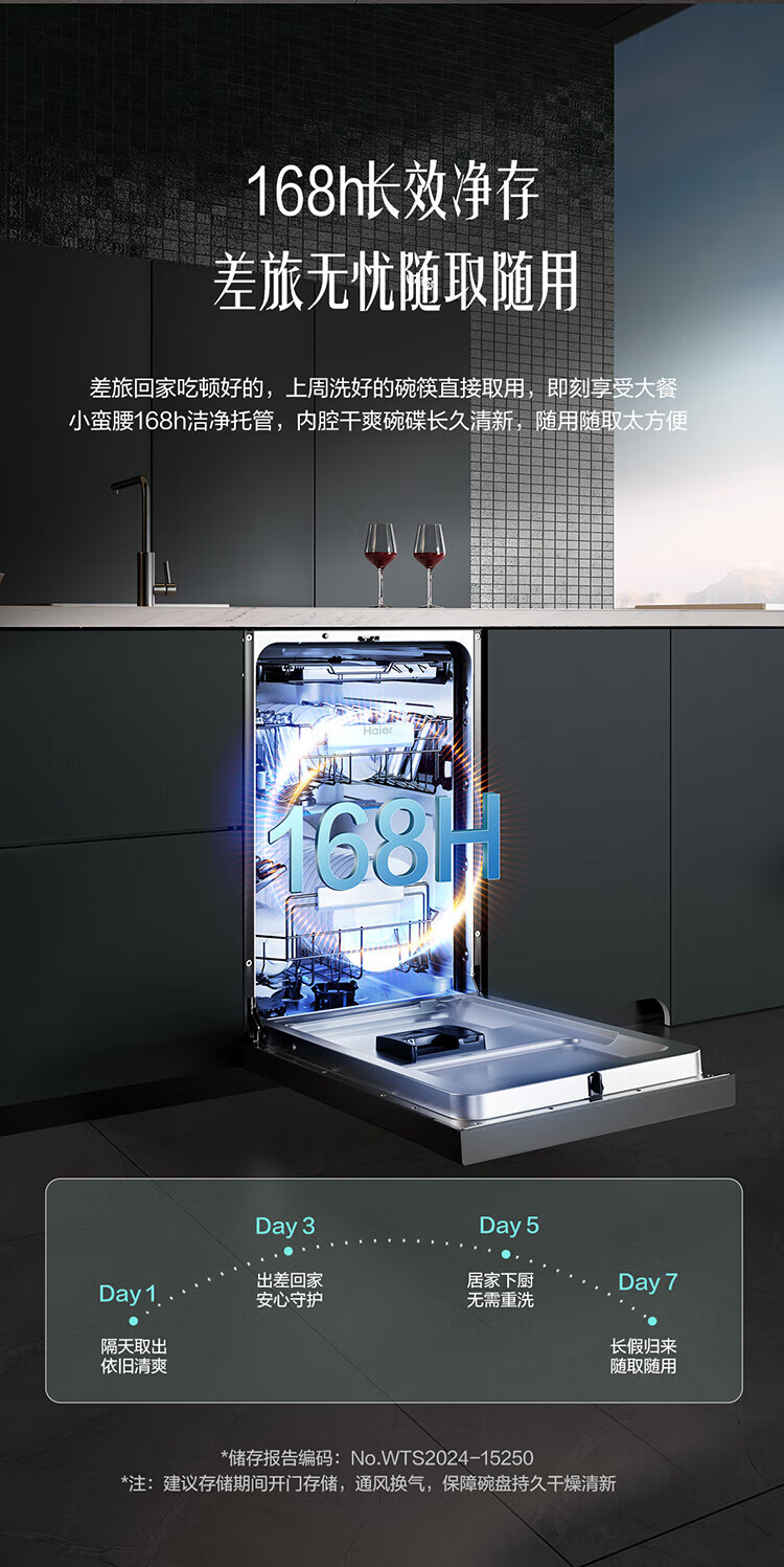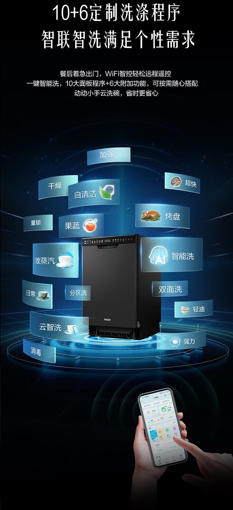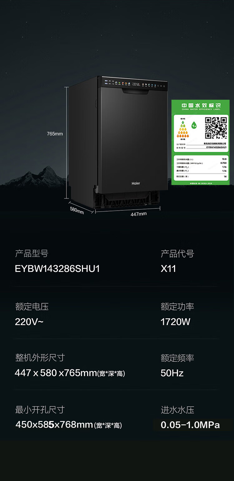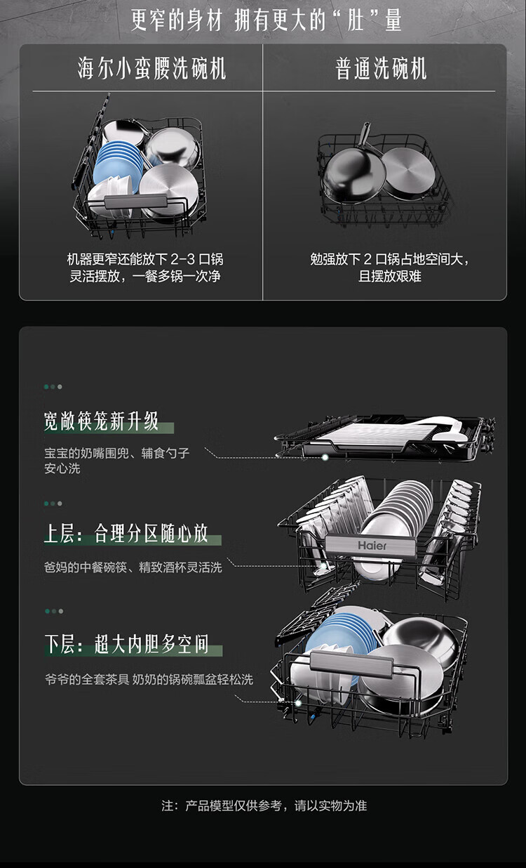 海尔(Haier)洗碗机【小蛮腰X11】X3000升级款超窄晶彩变频80℃消杀分区洗开门速干一级水效【超窄45cm】 嵌入式 115升【X-11】全新升级超窄双面洗