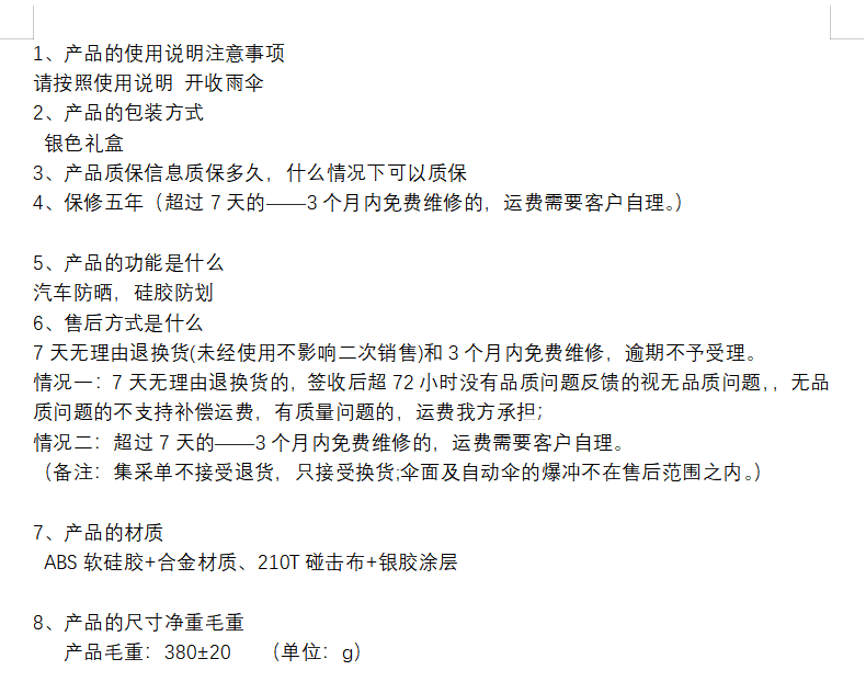 左都汽车遮阳伞ZD221 自然凉感温度刚好