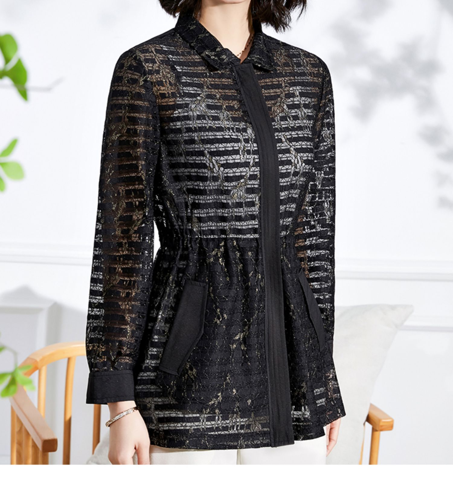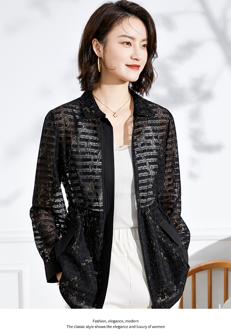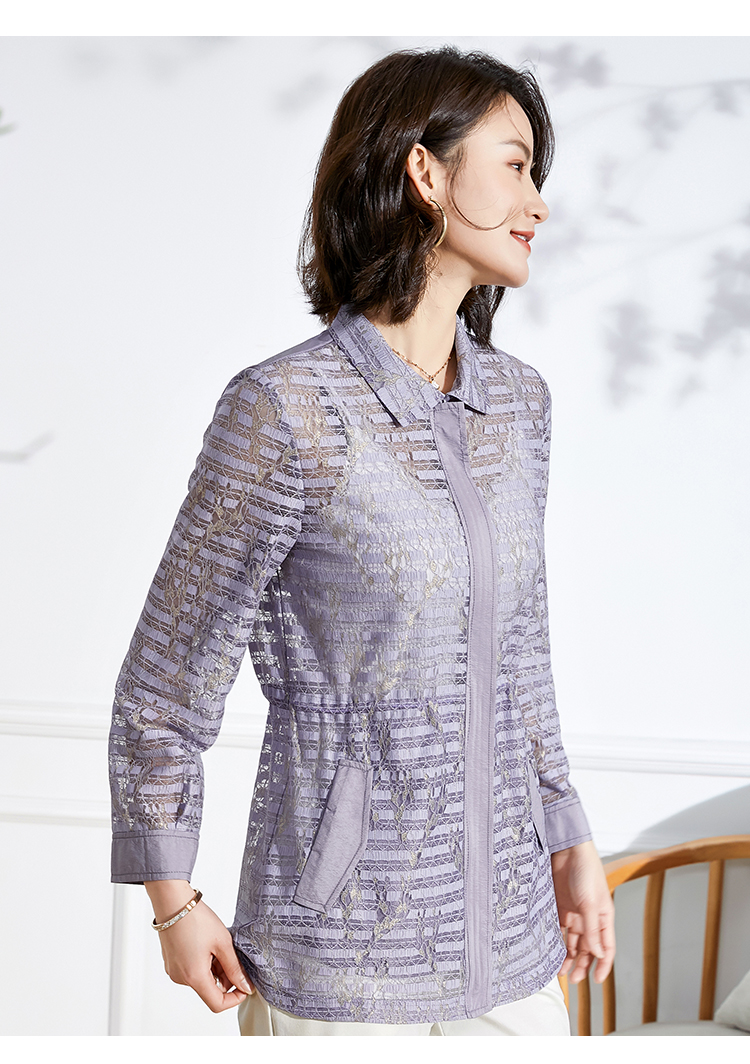 佐尔美2022春夏新款衬衣领镂空绣花收腰衬衫外套上衣女E13SY42