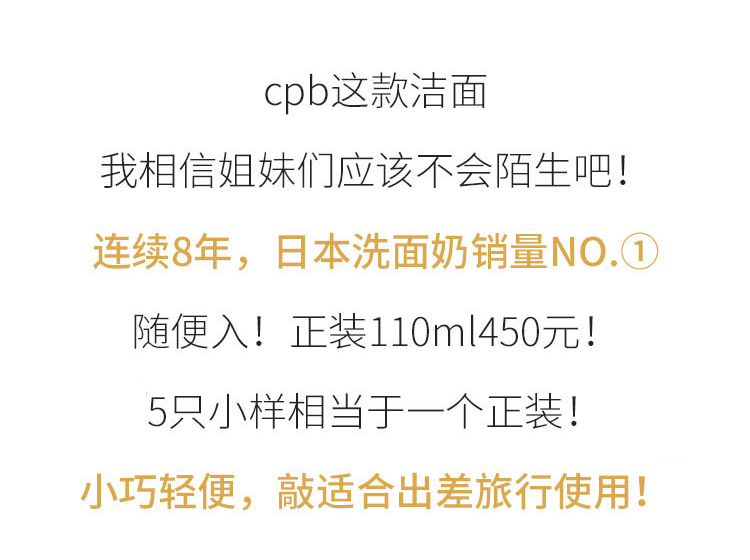 【99任选3件】CPB肌肤之钥光采洗面奶洁面乳 清爽/滋润 20ml中小样