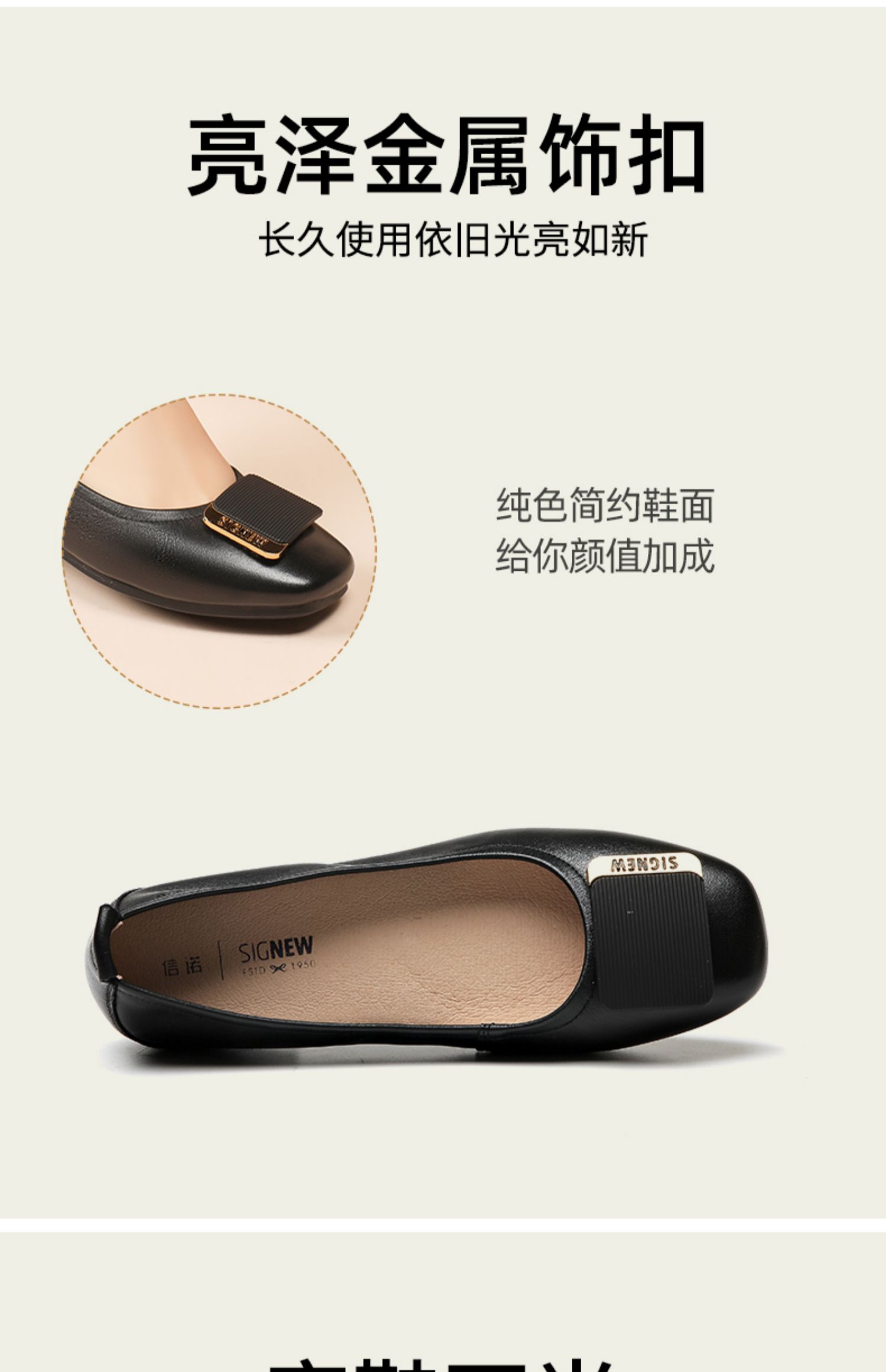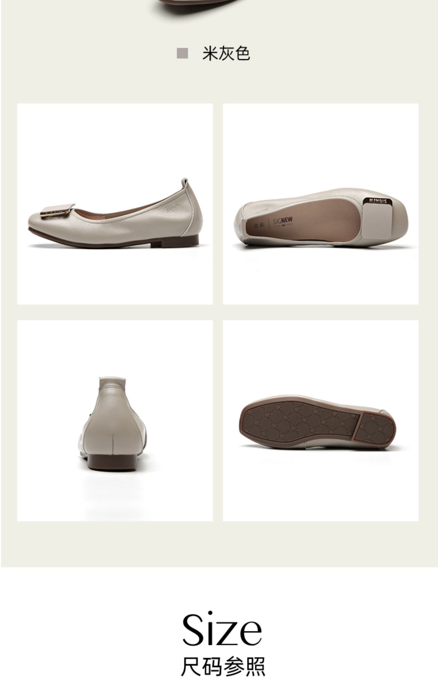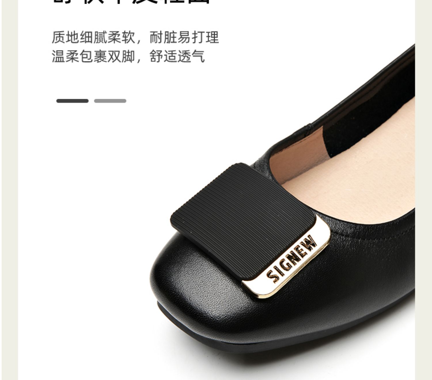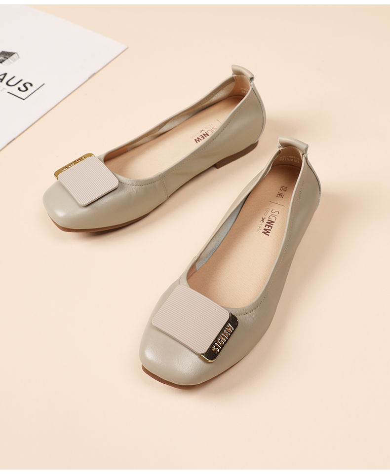 信诺真皮舒适女鞋2023春季新款鞋子优雅浅口奶奶鞋通勤平底女单鞋23C1629-8