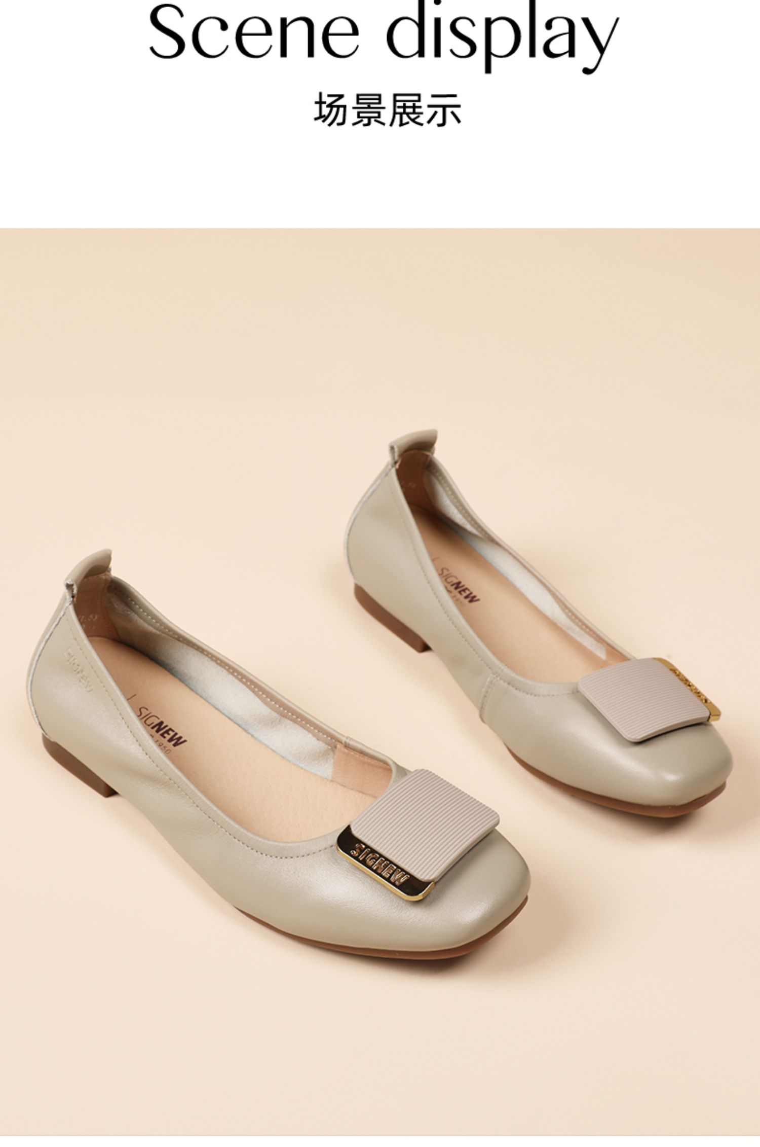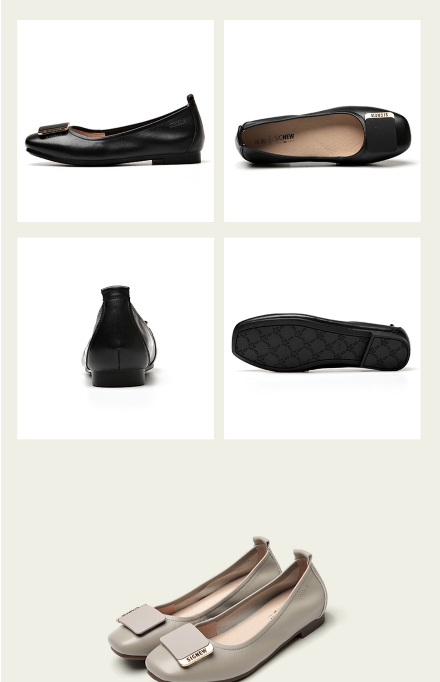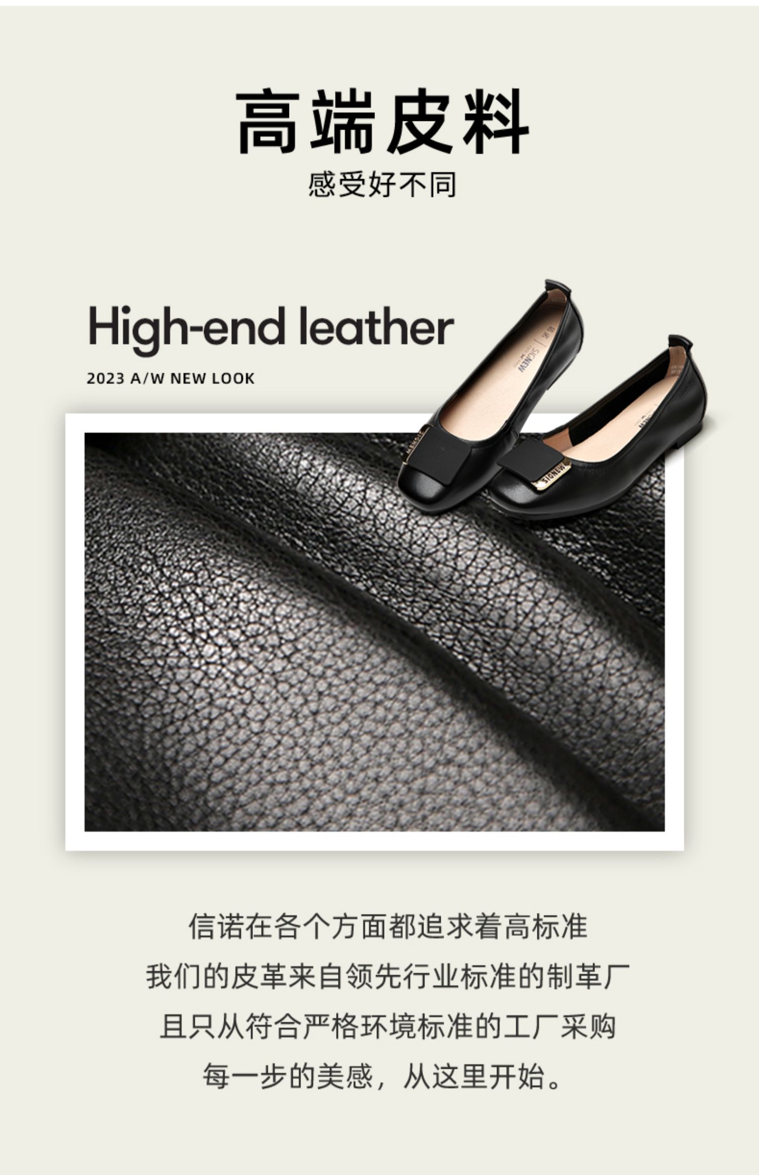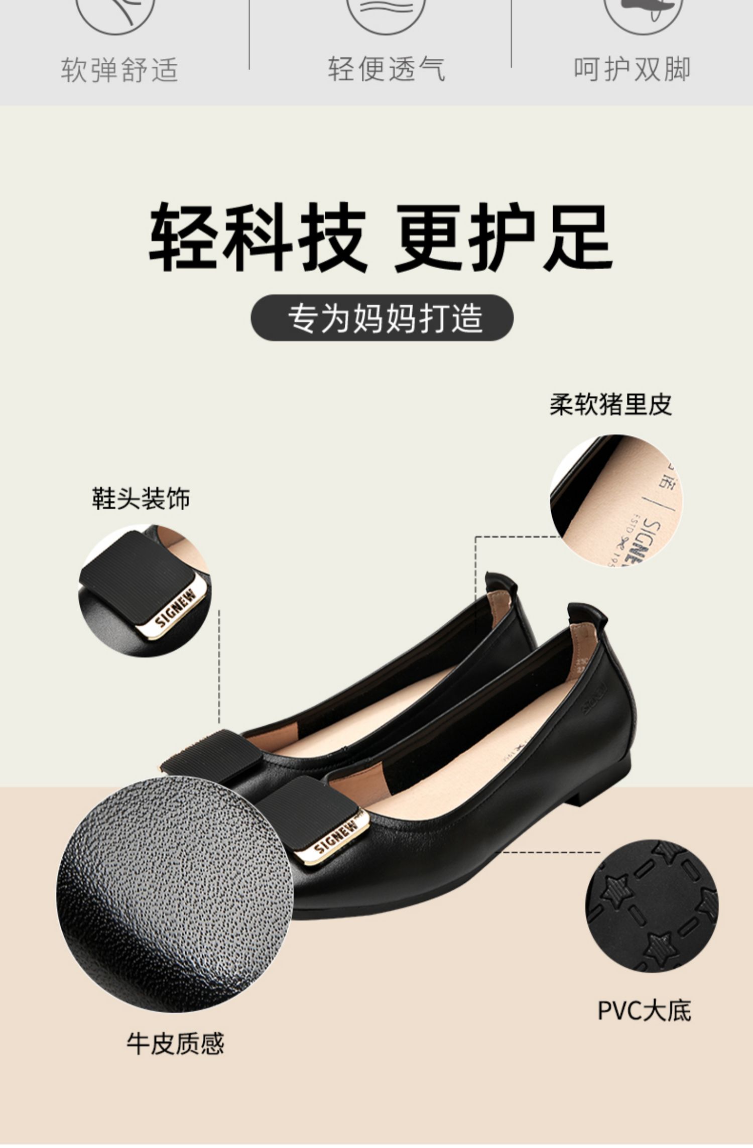 信诺真皮舒适女鞋2023春季新款鞋子优雅浅口奶奶鞋通勤平底女单鞋23C1629-8