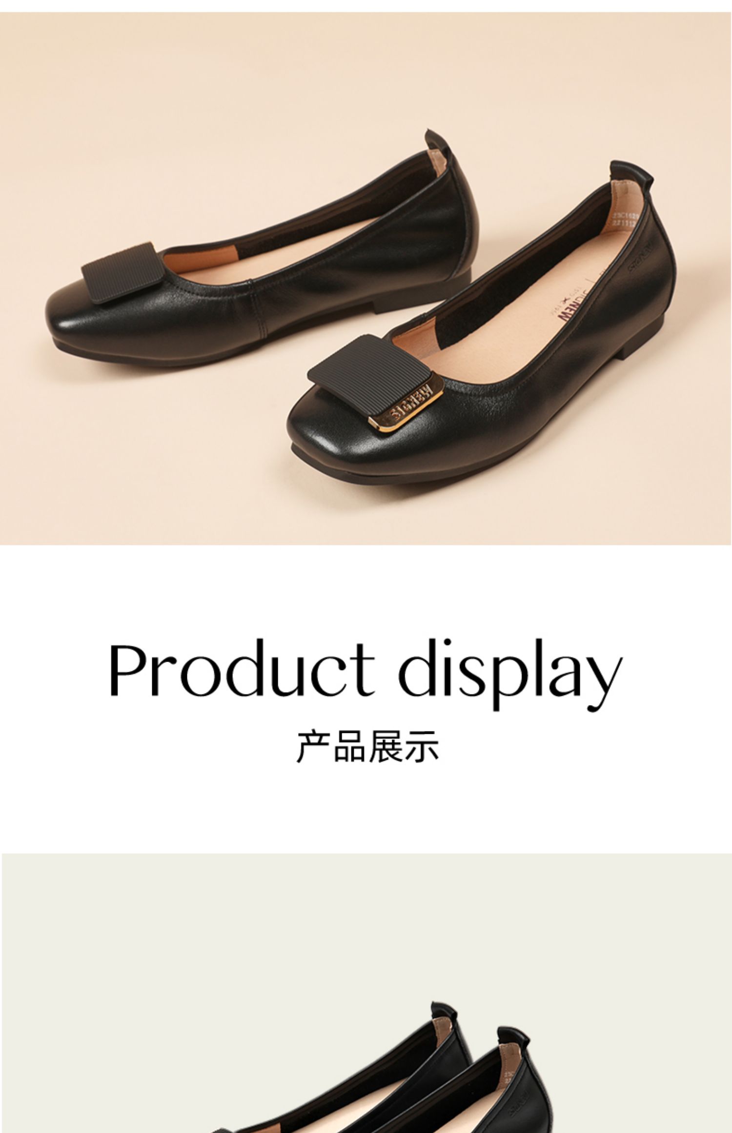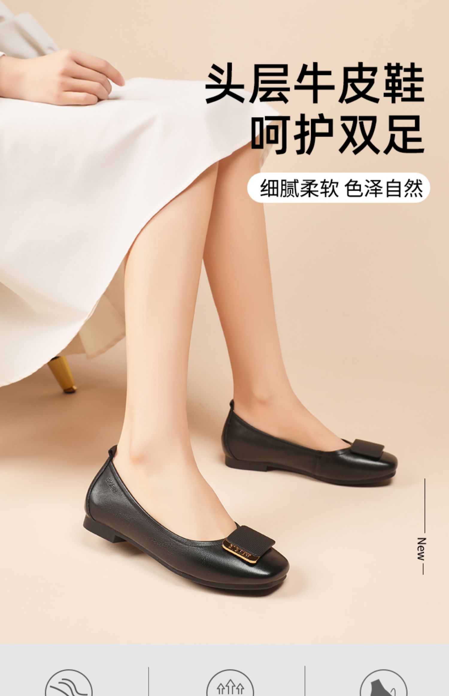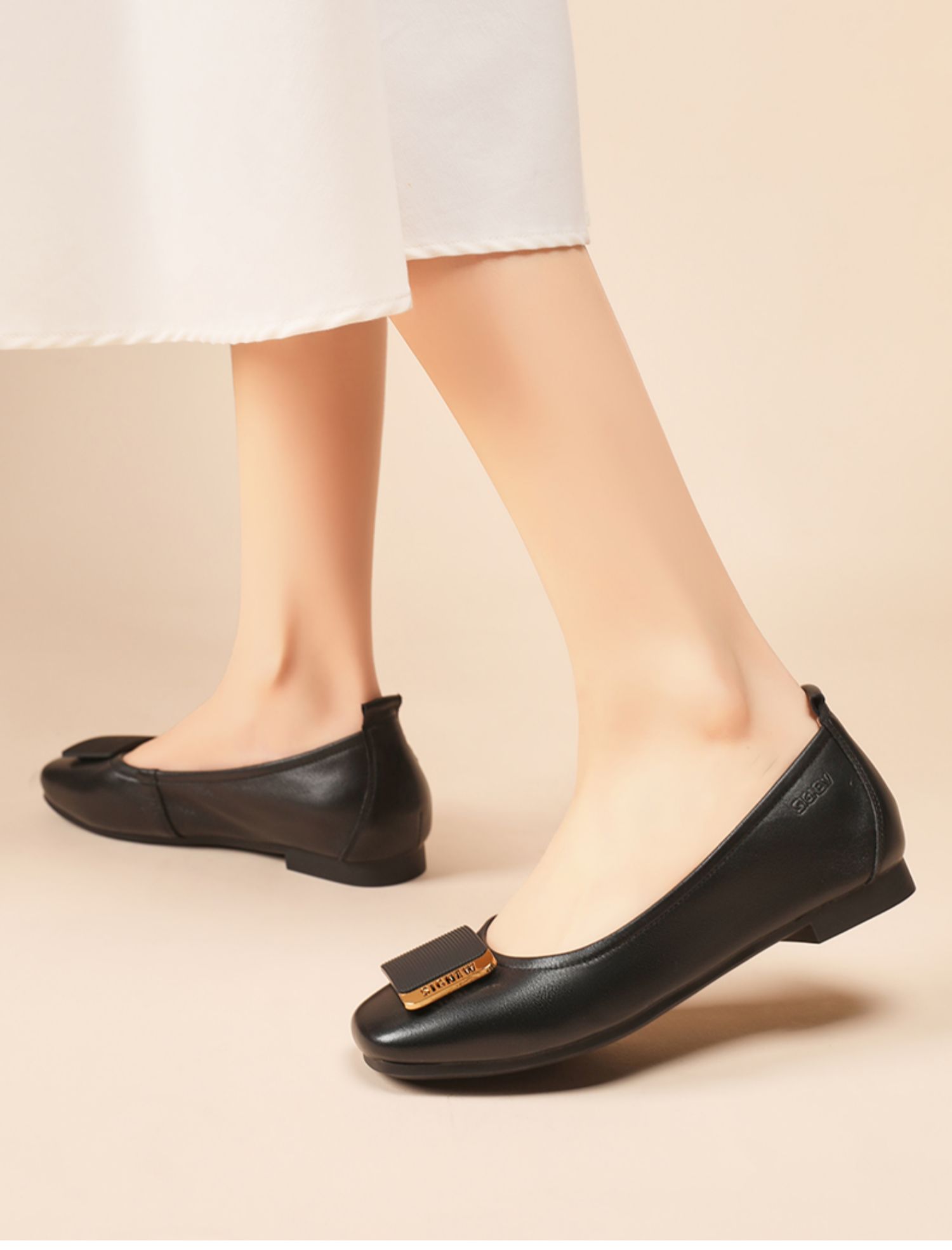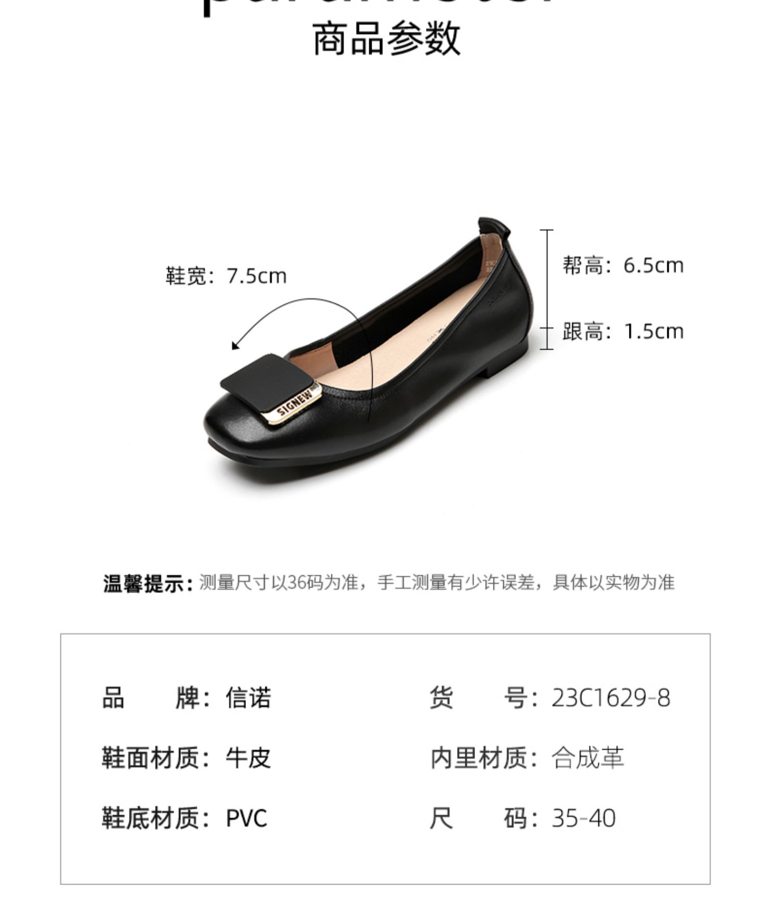 信诺真皮舒适女鞋2023春季新款鞋子优雅浅口奶奶鞋通勤平底女单鞋23C1629-8