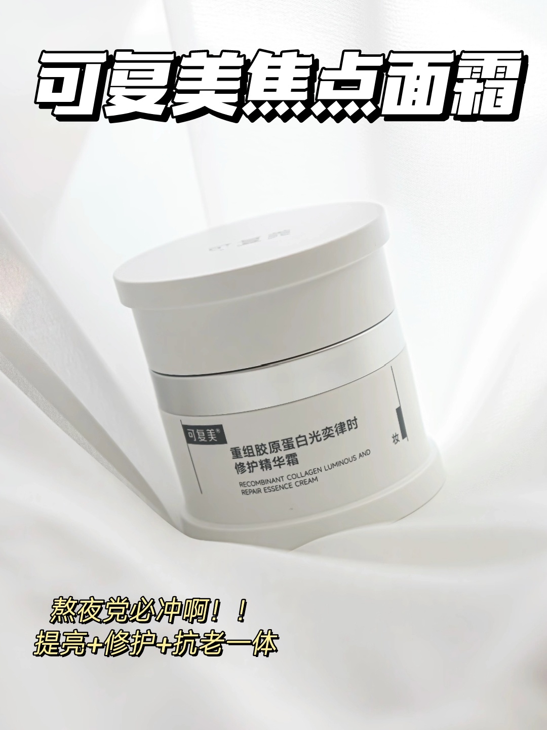 可复美焦点面霜 4种重组胶原蛋白+弹力多肽 一瓶提亮+修护+抗老 正装小样都有!