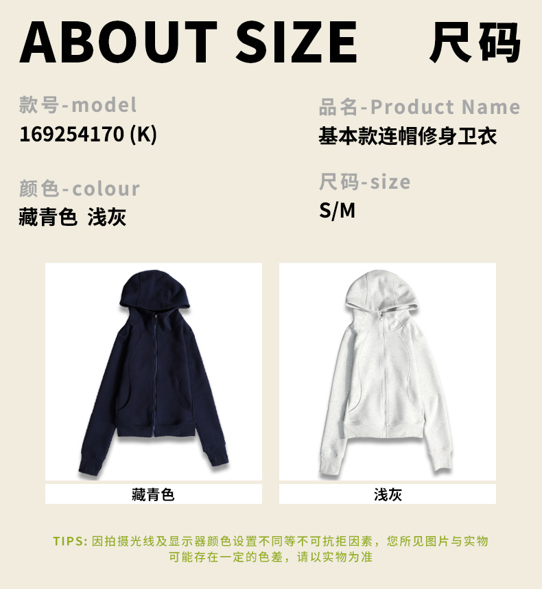 基本款连帽修身卫衣运动开衫上衣女外套-纪念日百货门店同款169254170