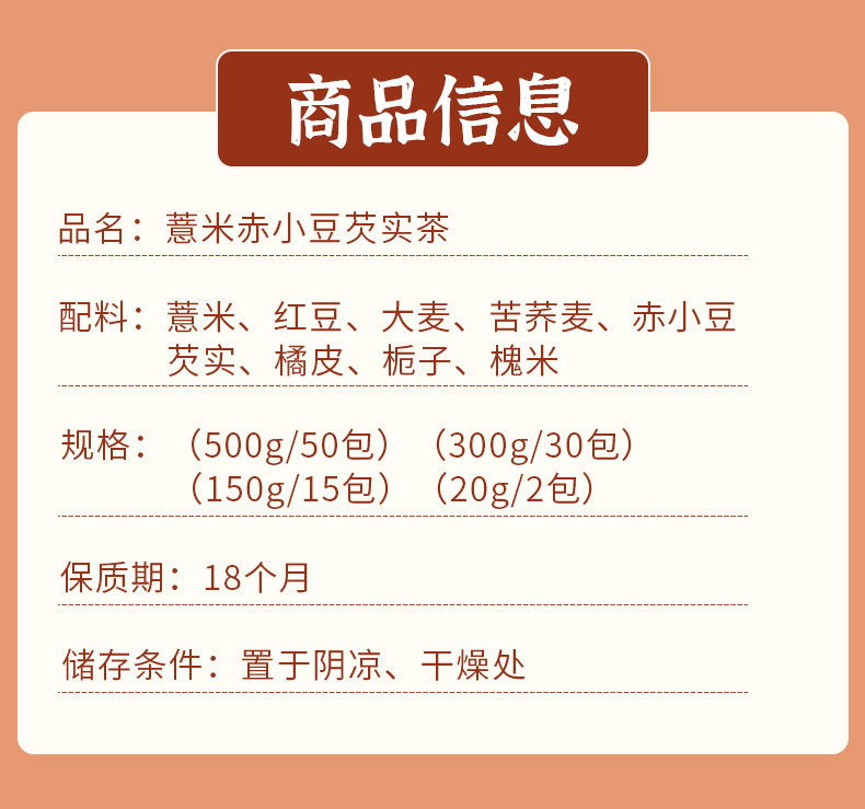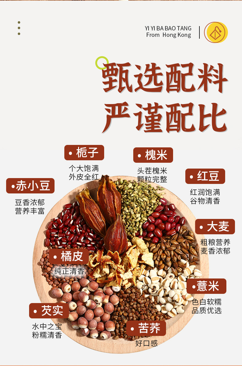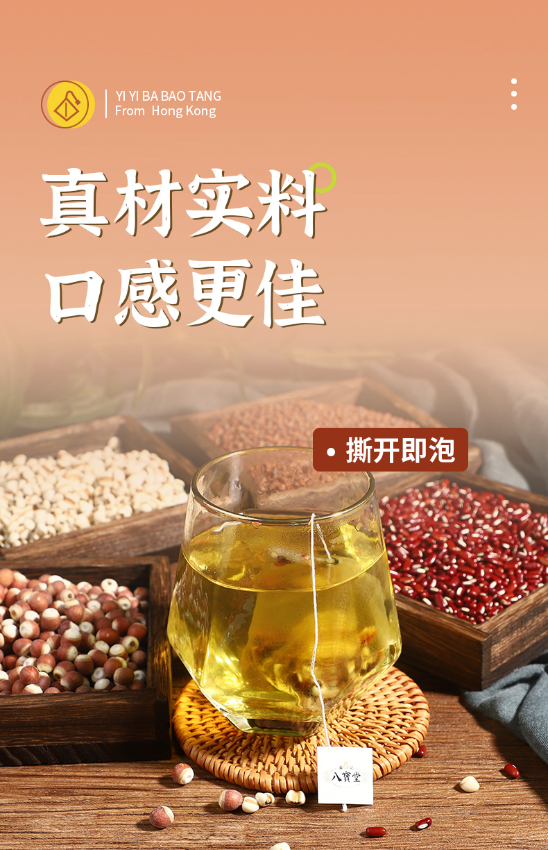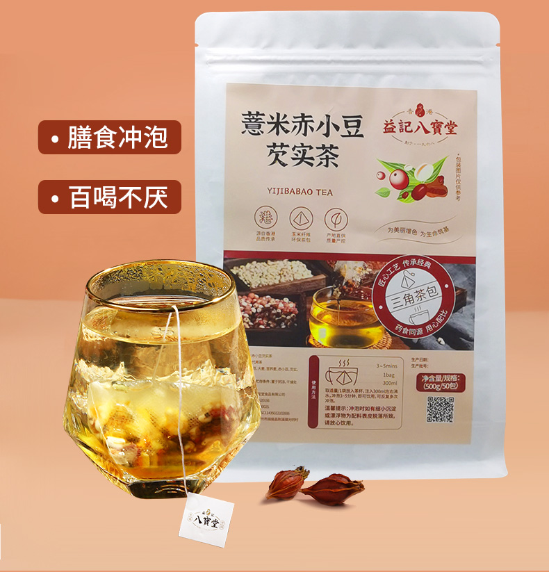【新品】香港益记八宝堂赤小豆薏米芡实茶牛皮袋装包装
