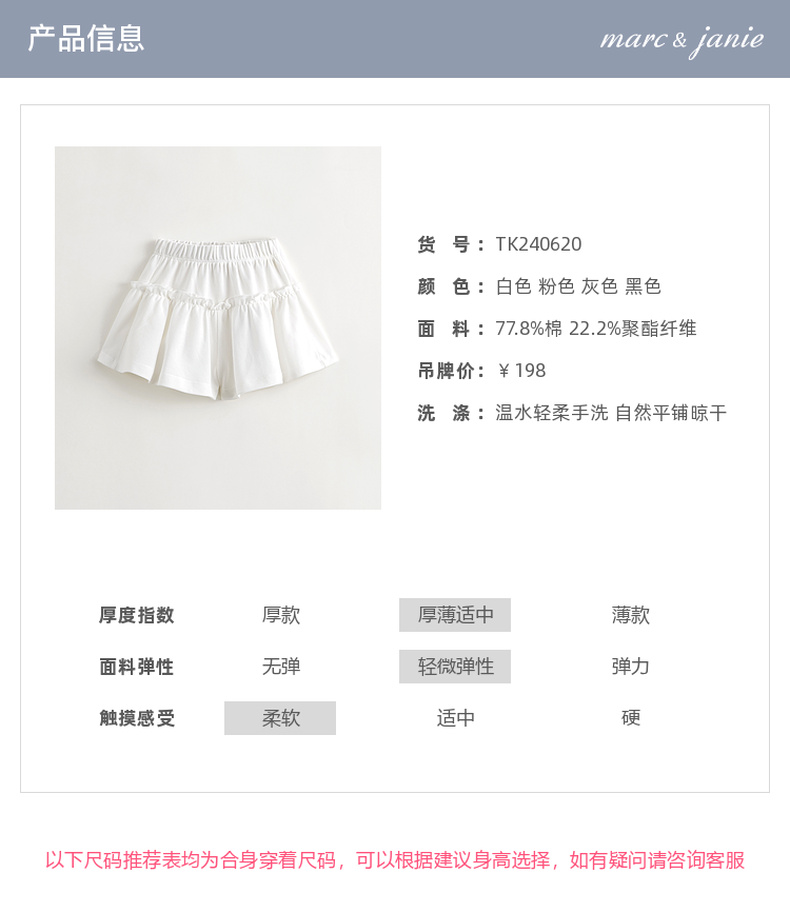【凉感快干】马克珍妮女童休闲运动A字宽松短裤夏装新款240620
