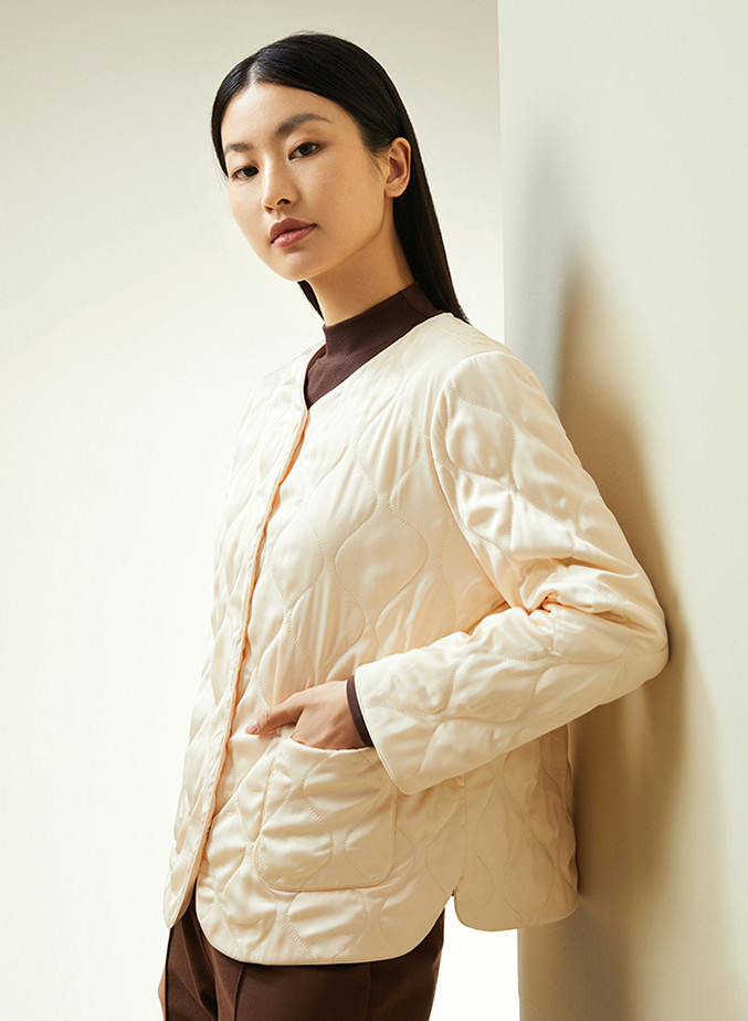 精致的小圆领,展露出脖子一段曲线,简约利落。衬得脸部轮廓更加柔和,打造一种温柔感性的感觉。