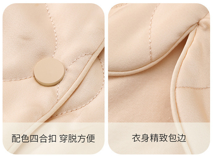 这件衣服的填充物选自自家基地的蚕宝宝吐的丝,洁白柔韧,拉力强。