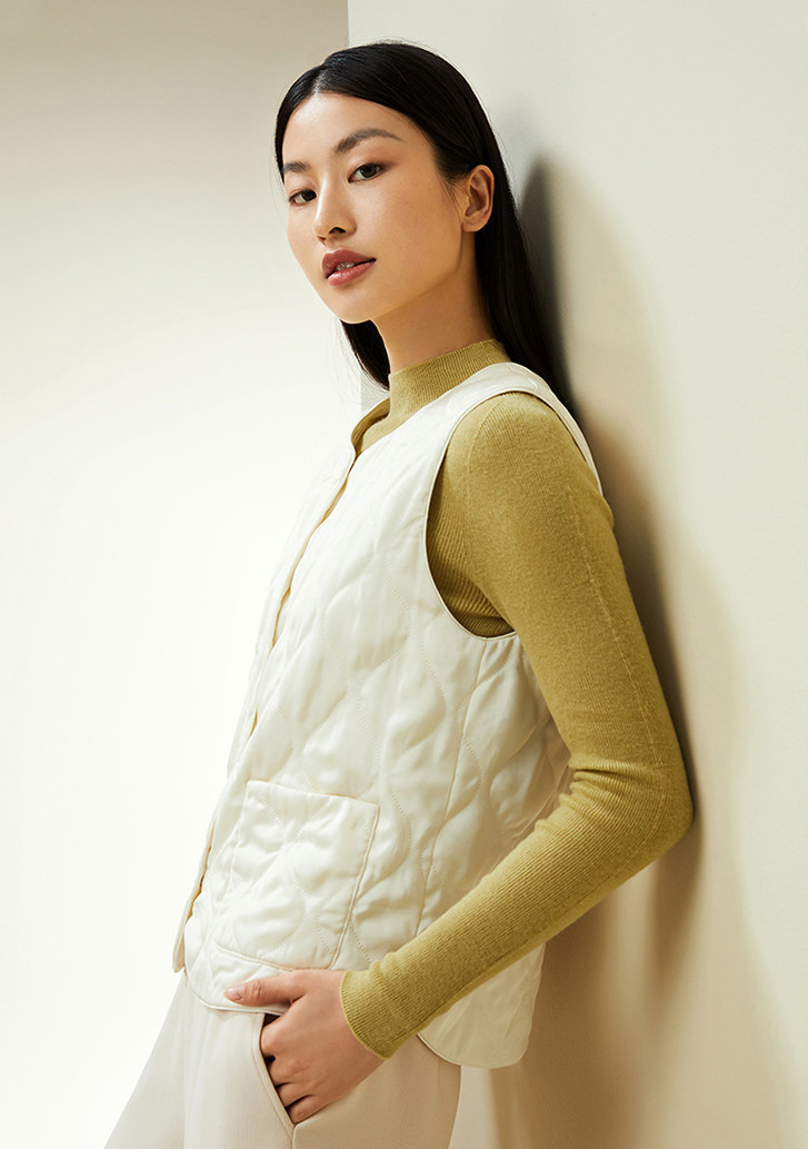 这款对襟马甲参考了明清时期中国传统服饰中的“马褂”,很有中式韵味。