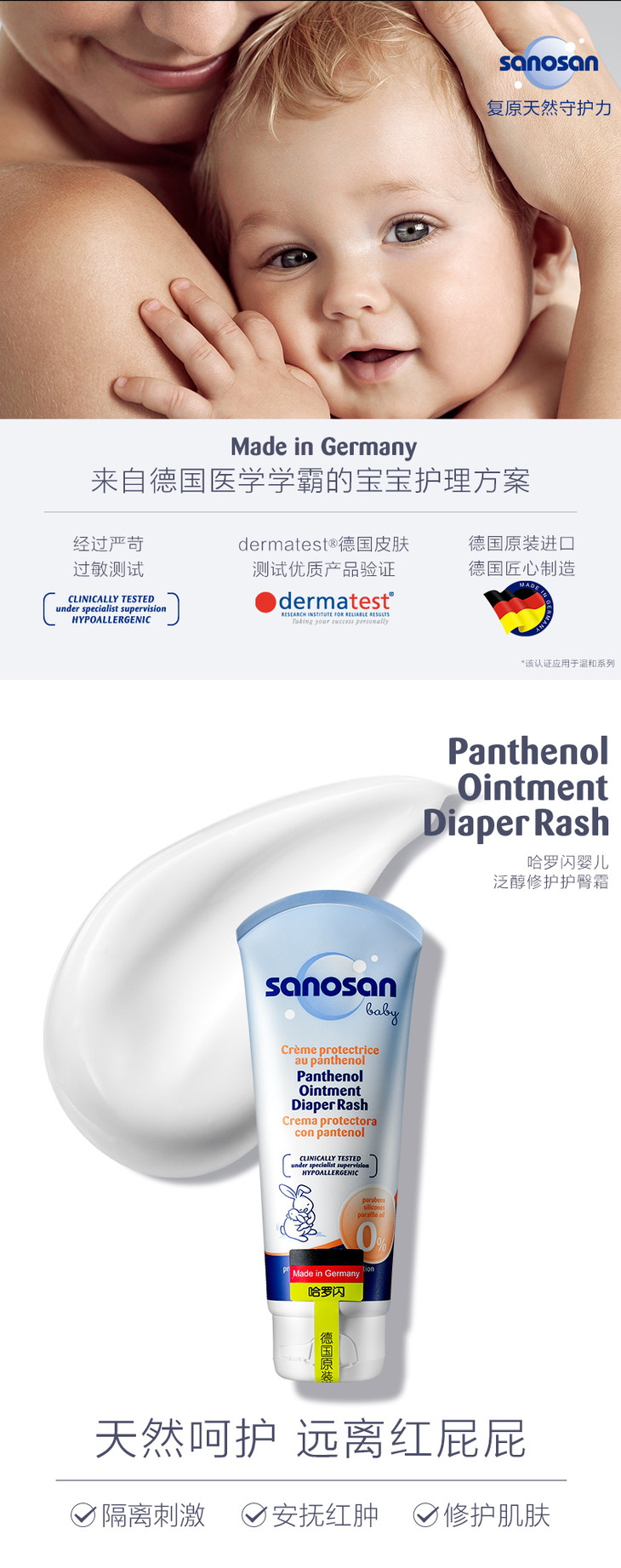 哈罗闪sanosan婴儿护臀膏宝宝屁屁护臀霜新生红苹果pp霜100ml