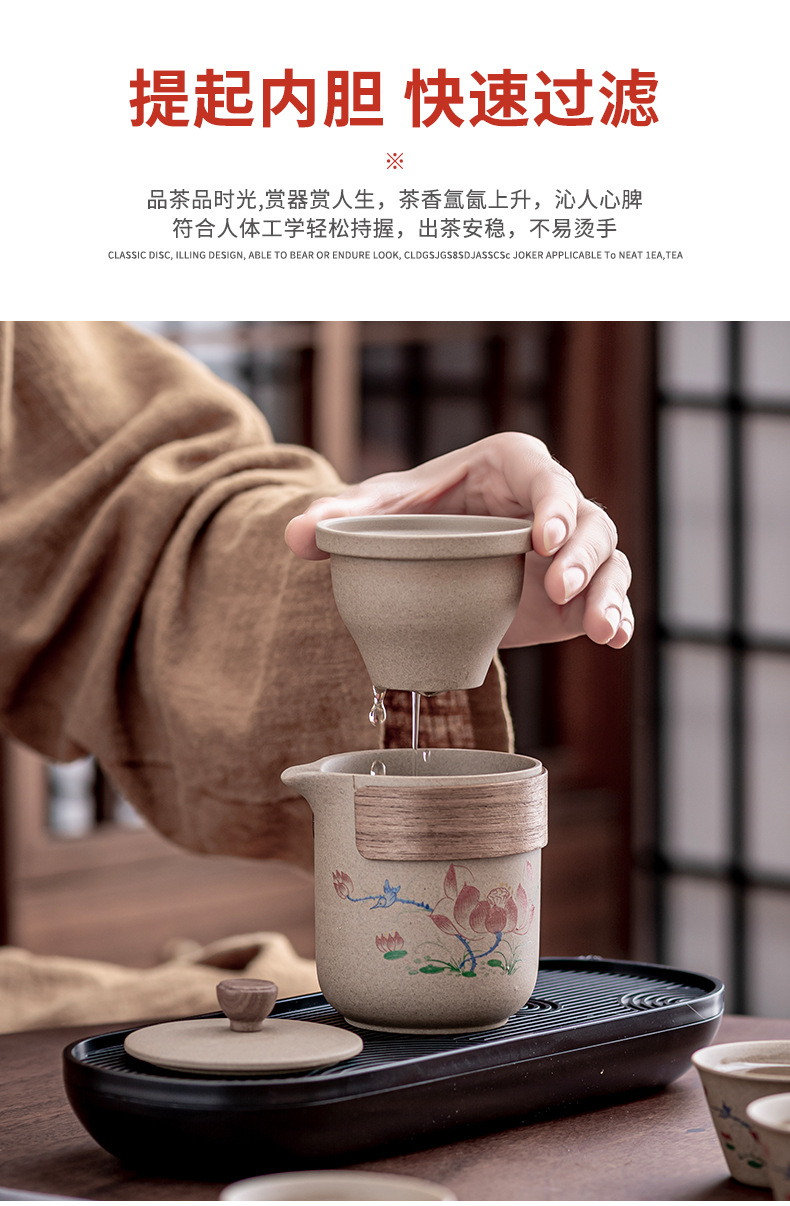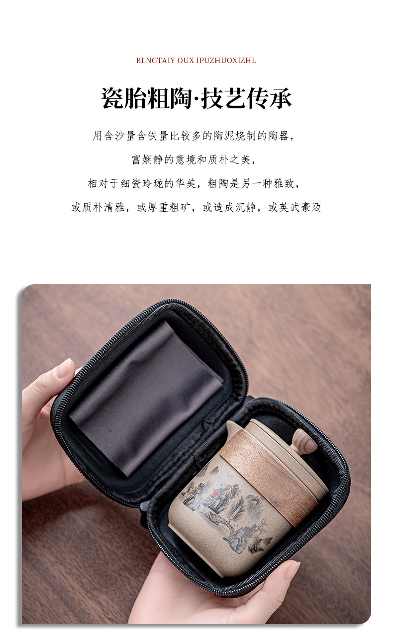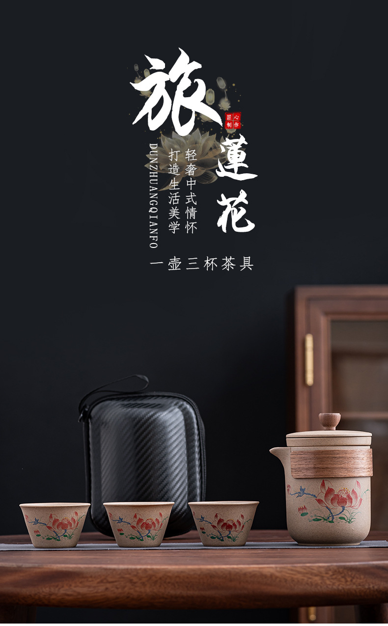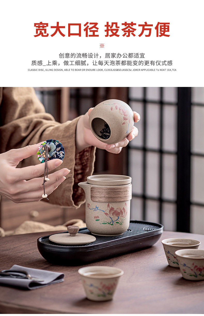 【粗陶快客杯】一壶三杯旅行茶具套装 便携式户外露营泡茶送长辈朋友礼品 外出携带方便