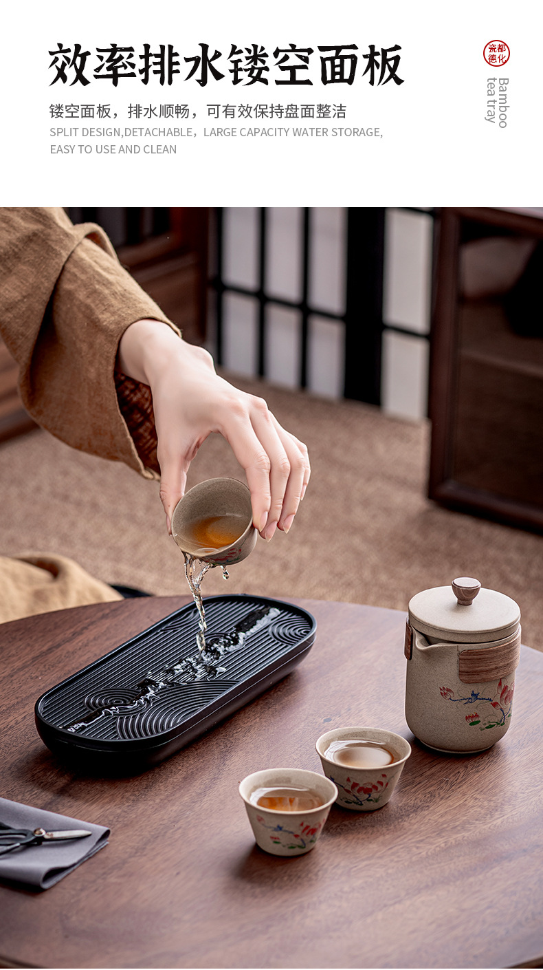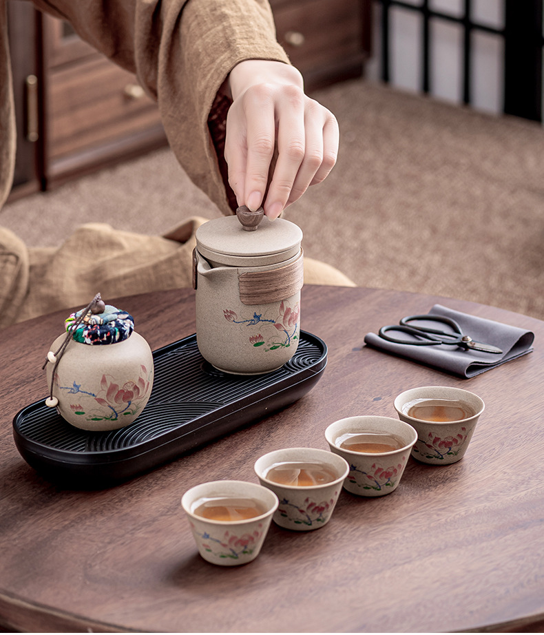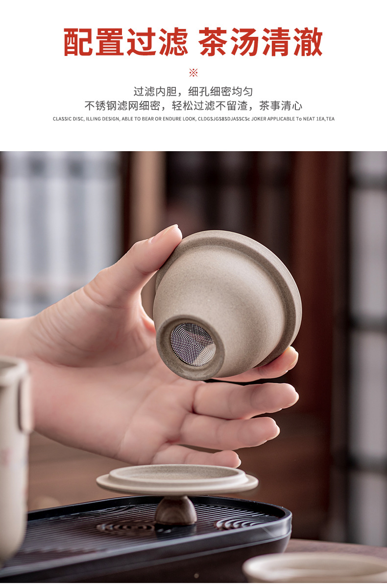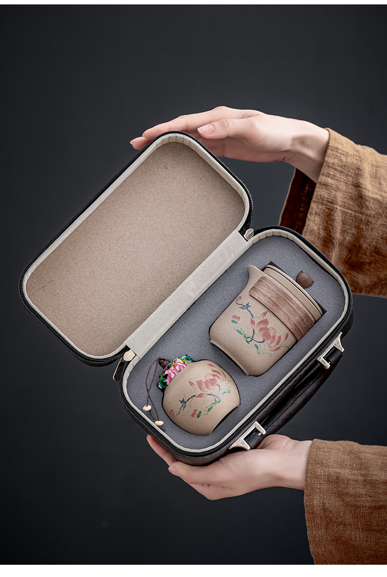【粗陶快客杯】一壶三杯旅行茶具套装 便携式户外露营泡茶送长辈朋友礼品 外出携带方便