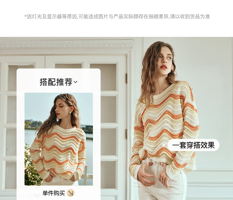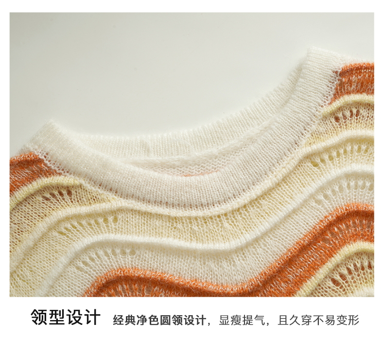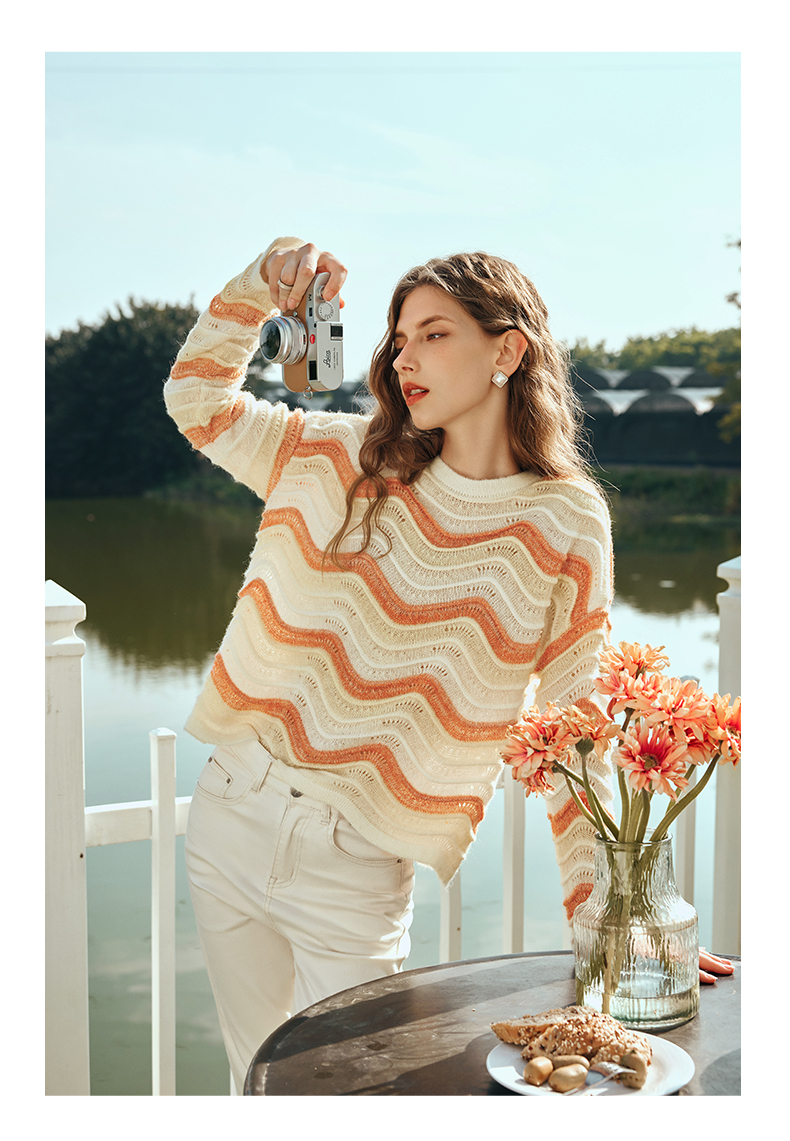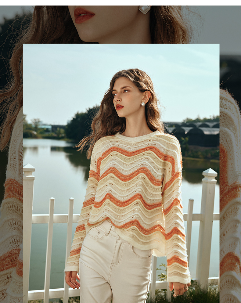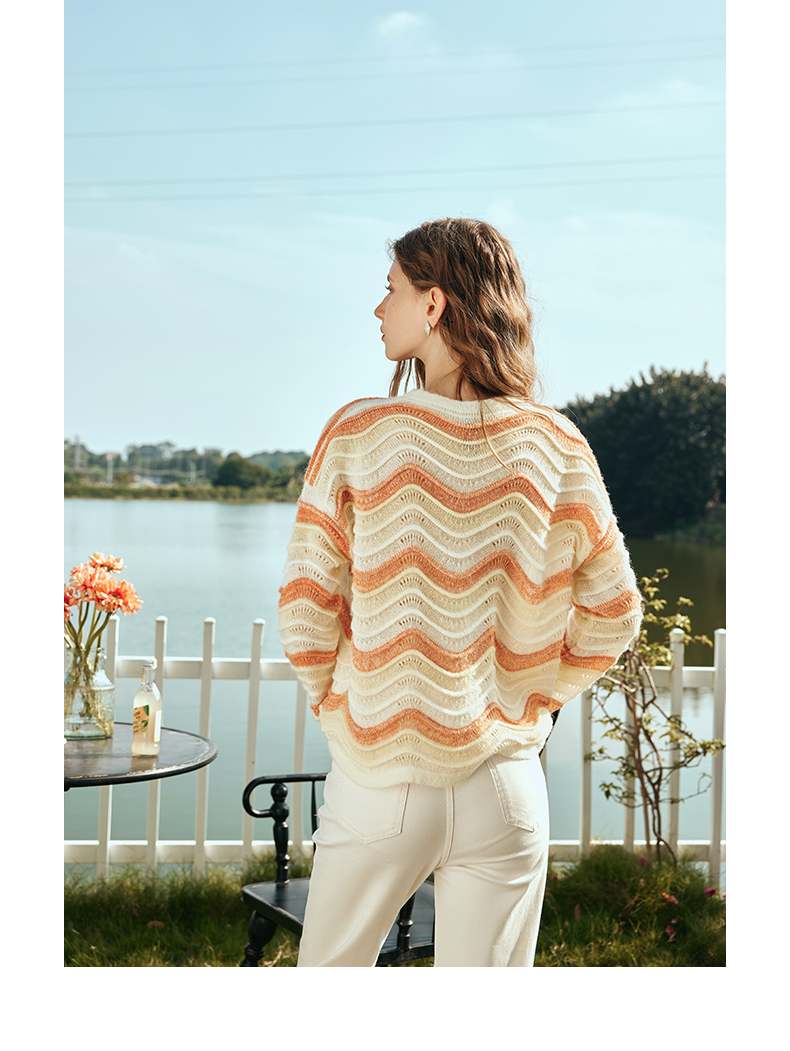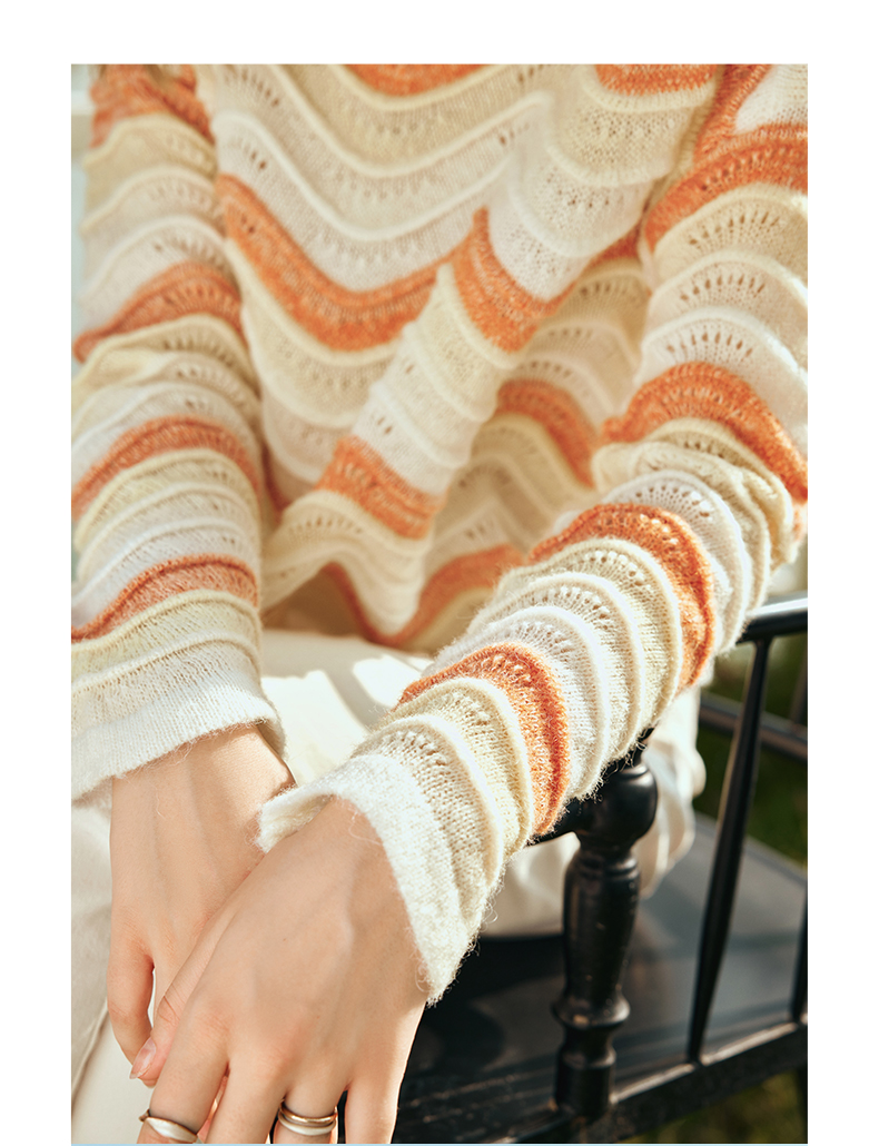 OLrain欧芮儿彩色针织衫女早春2024年新款水波纹慵懒风套头毛衣