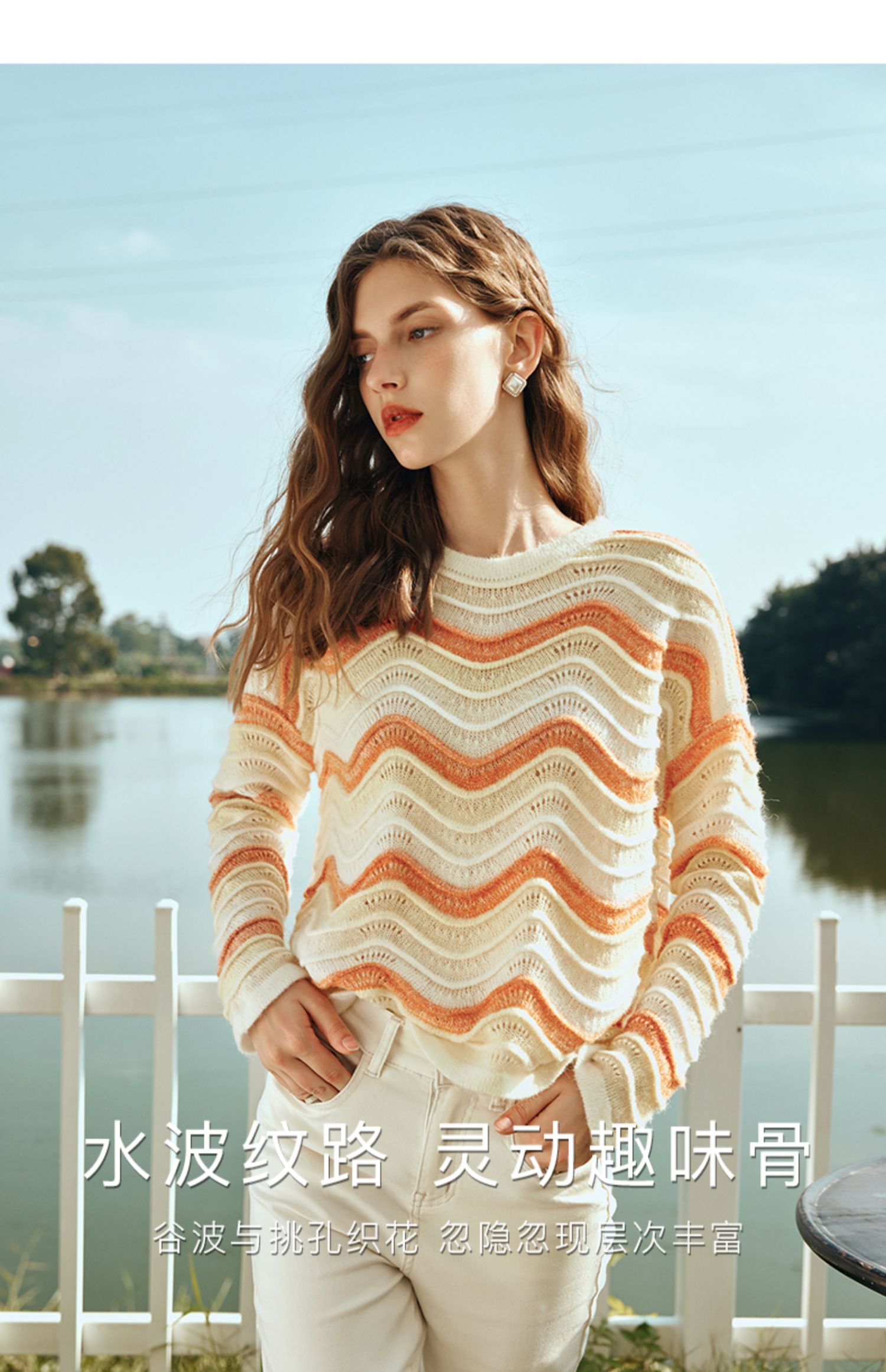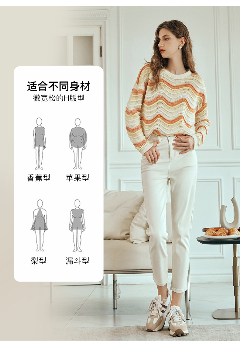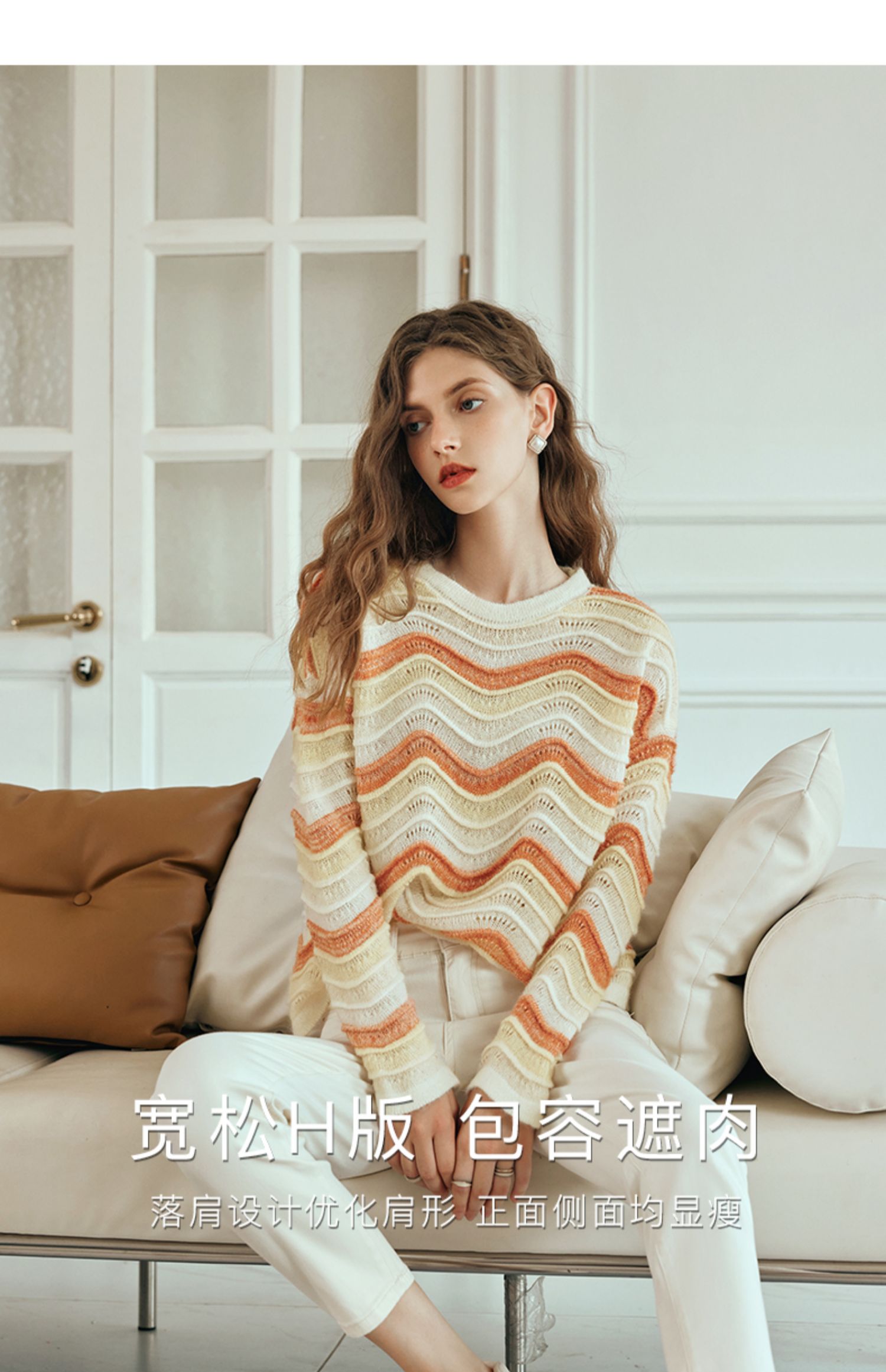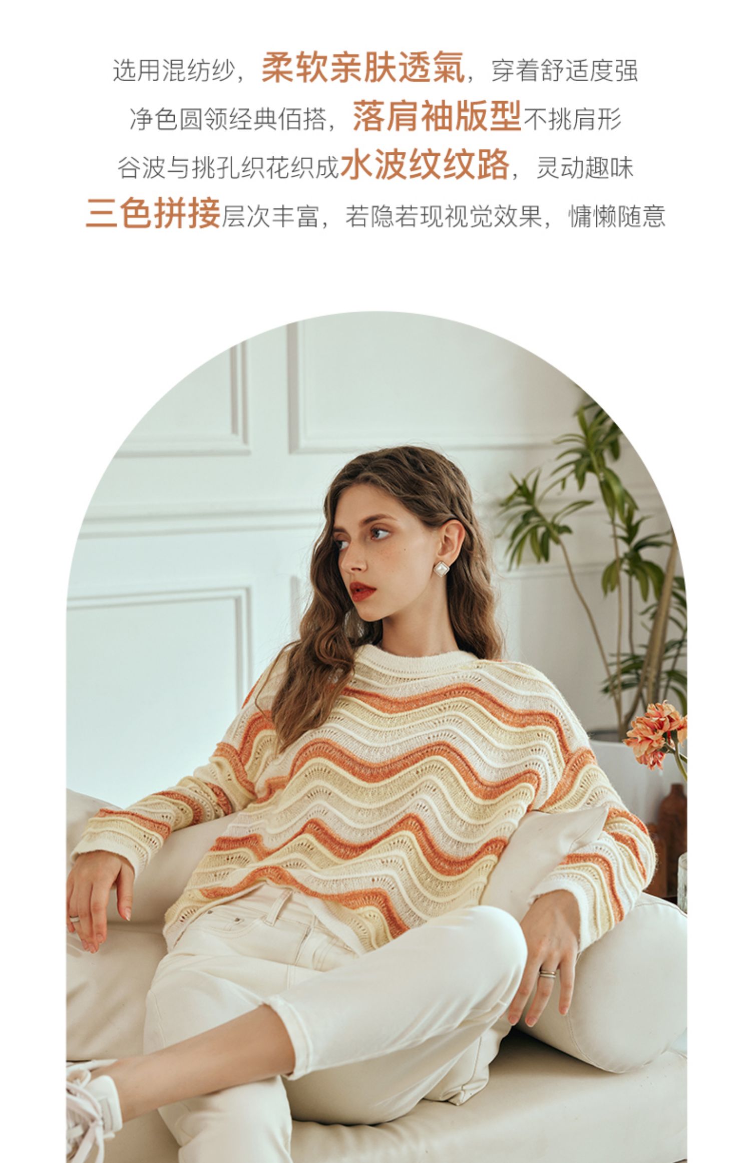 OLrain欧芮儿彩色针织衫女早春2024年新款水波纹慵懒风套头毛衣
