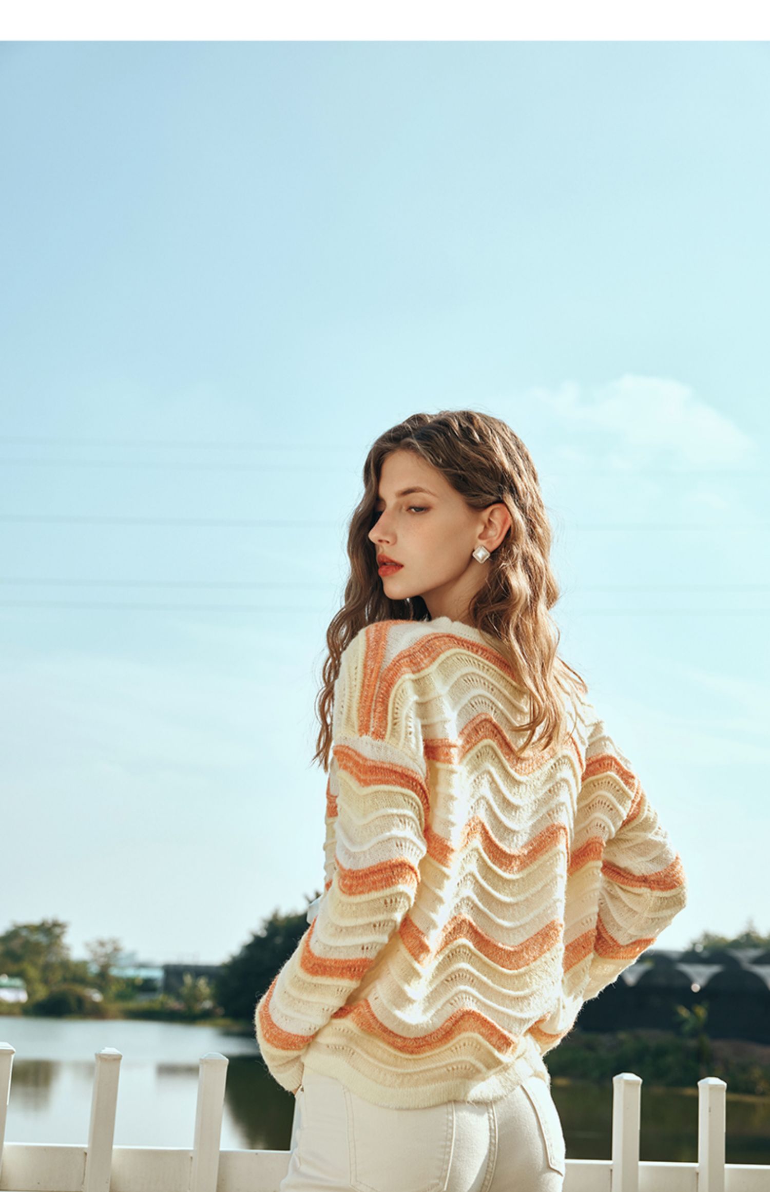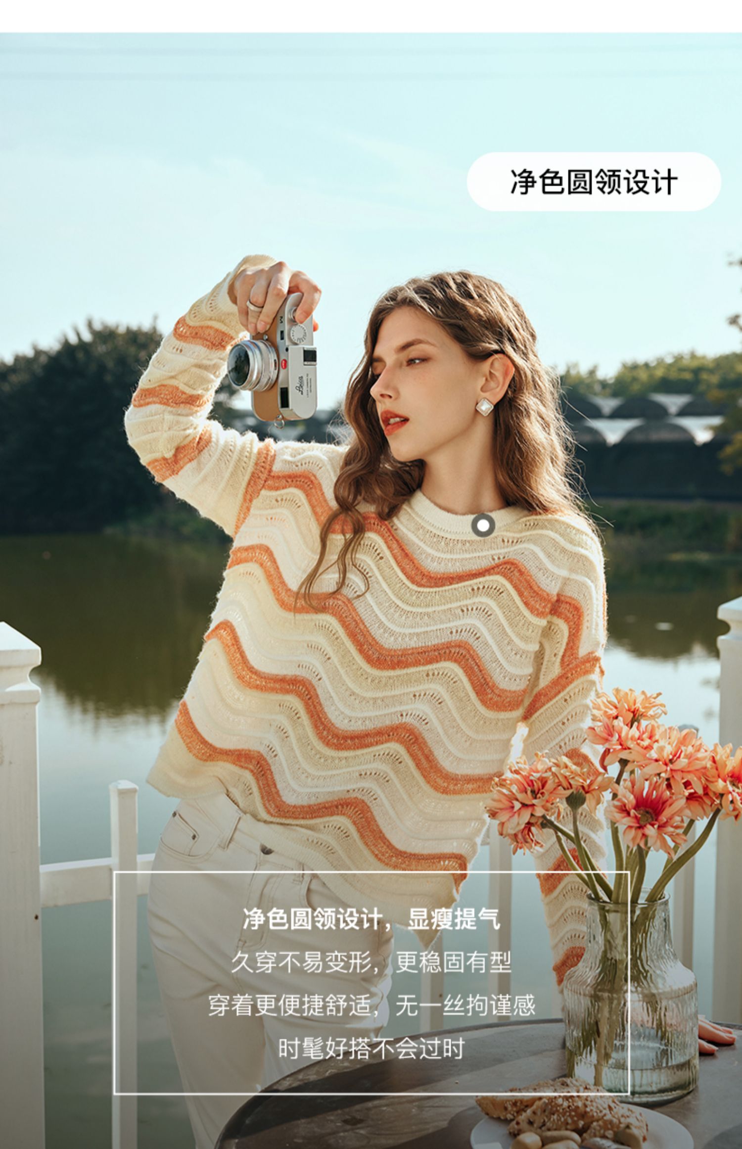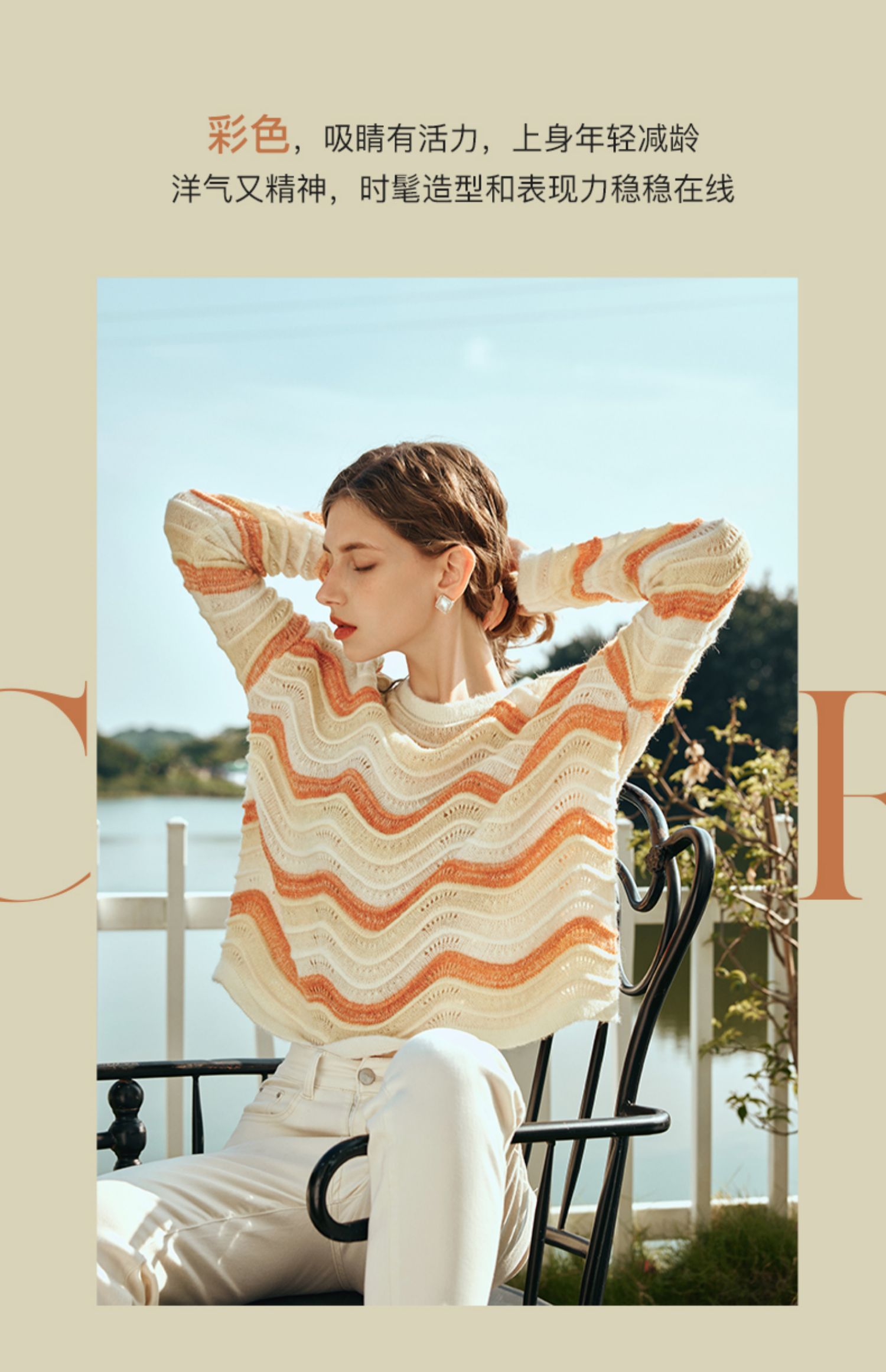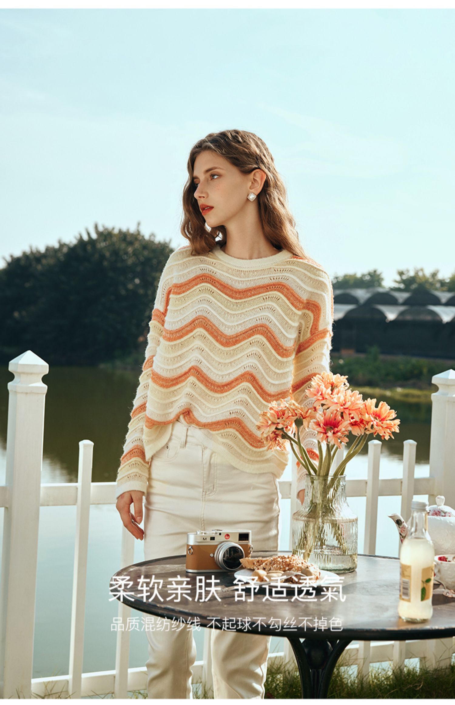 OLrain欧芮儿彩色针织衫女早春2024年新款水波纹慵懒风套头毛衣