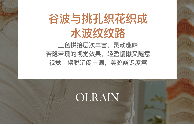 - “精致”是欧芮儿olrain品牌文化的核心,欧芮儿认为,精致的女人,不但要外在动人,更要内在迷人,内外兼修,有魅力、有气质、有内涵,自信而不自傲,优雅而不矫揉,自有万种风情而不轻浮,更不故作矜持。