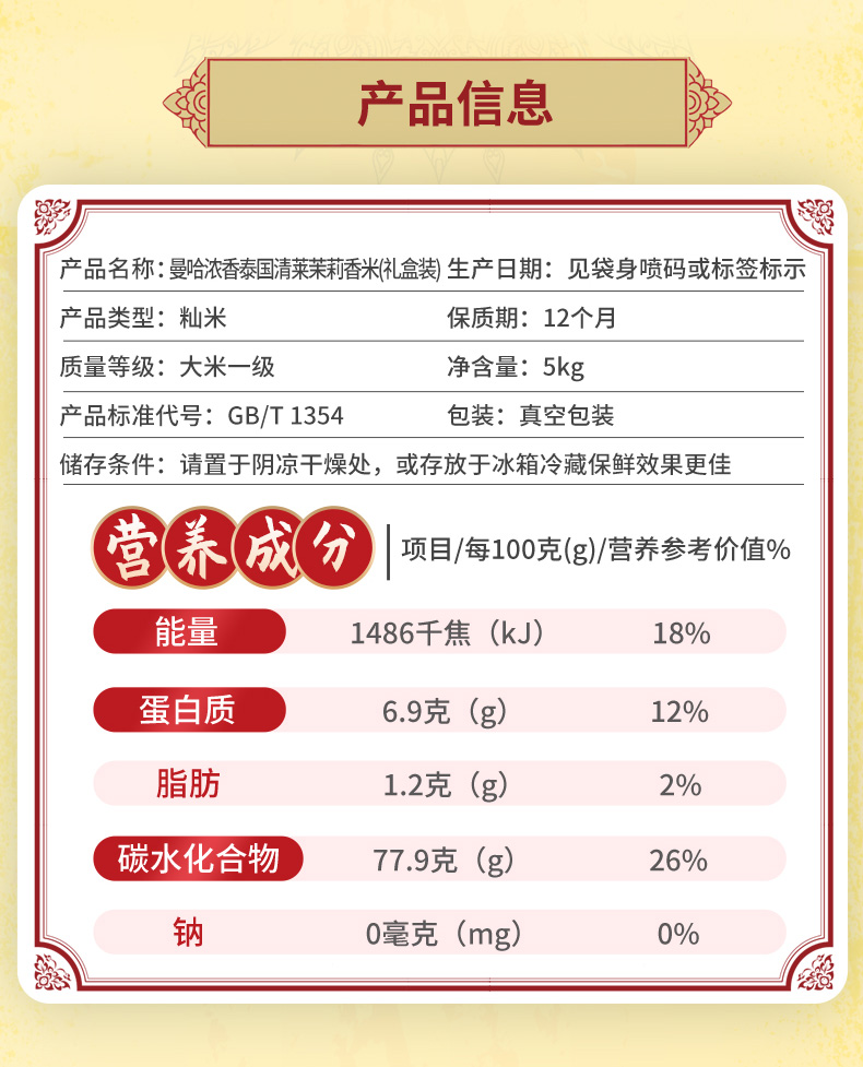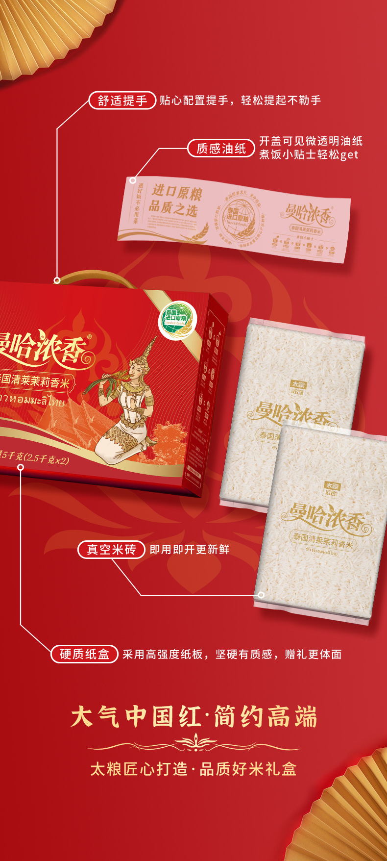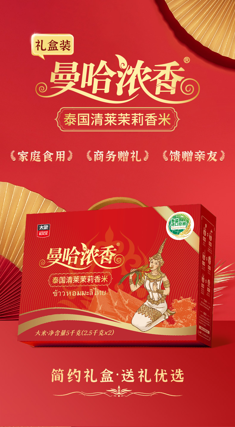 太粮(礼盒装)曼哈浓香泰国(清莱)茉莉香米2.5kg*2袋/盒