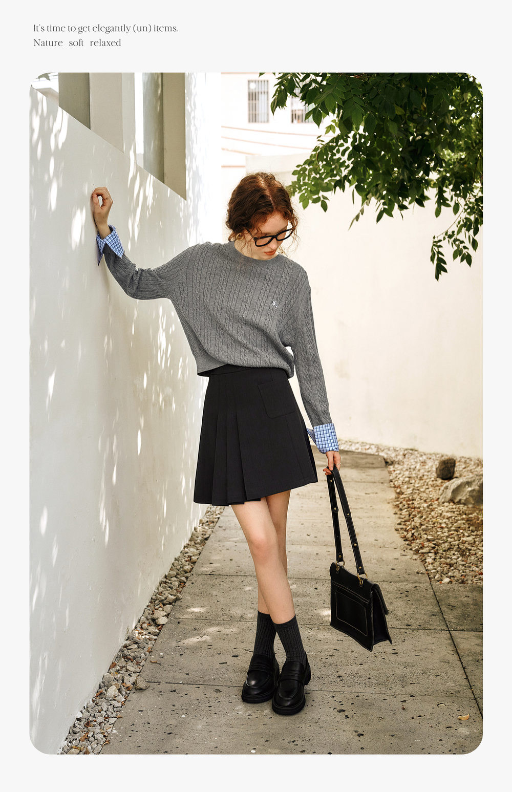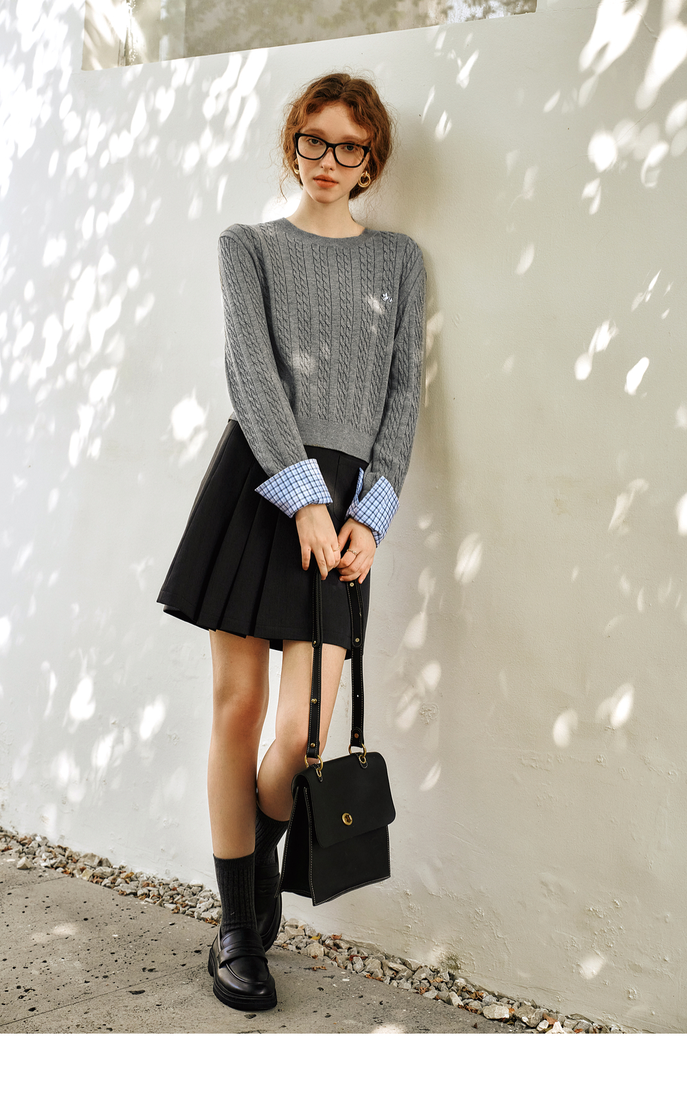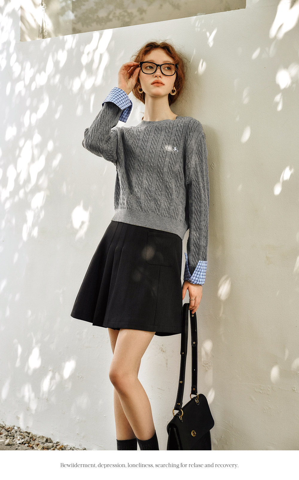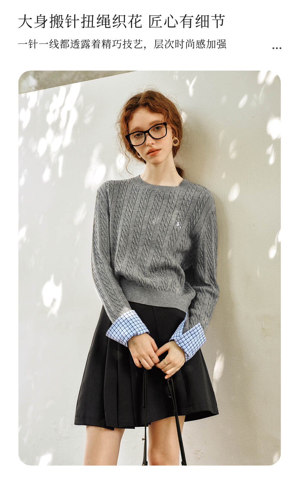 OLrain欧芮儿灰色套头毛衣女春季2025年新款拼接通勤圆领针织上衣