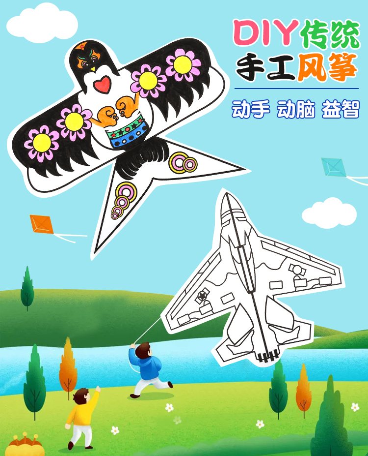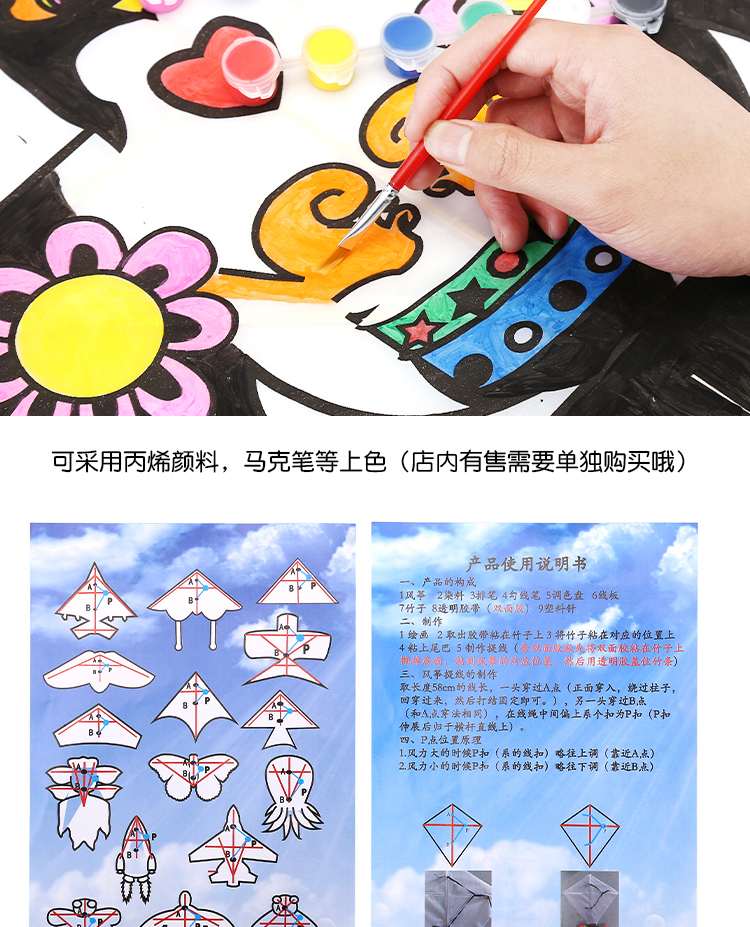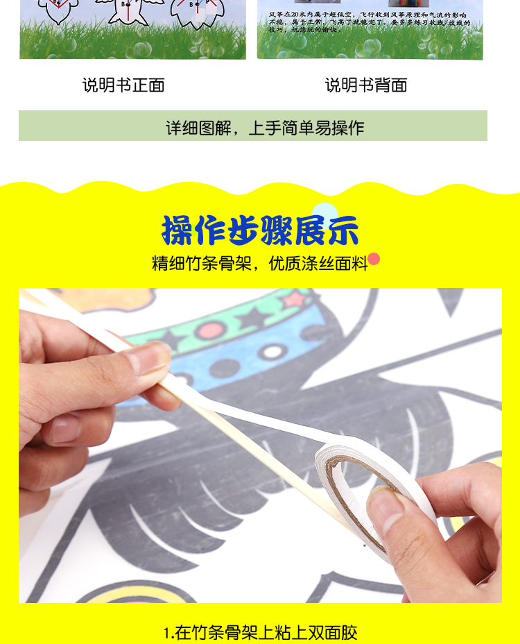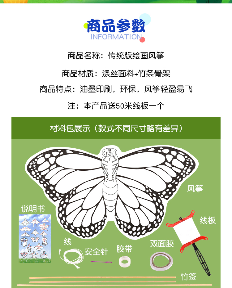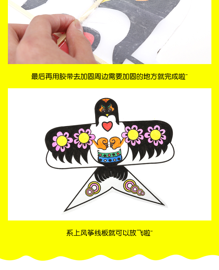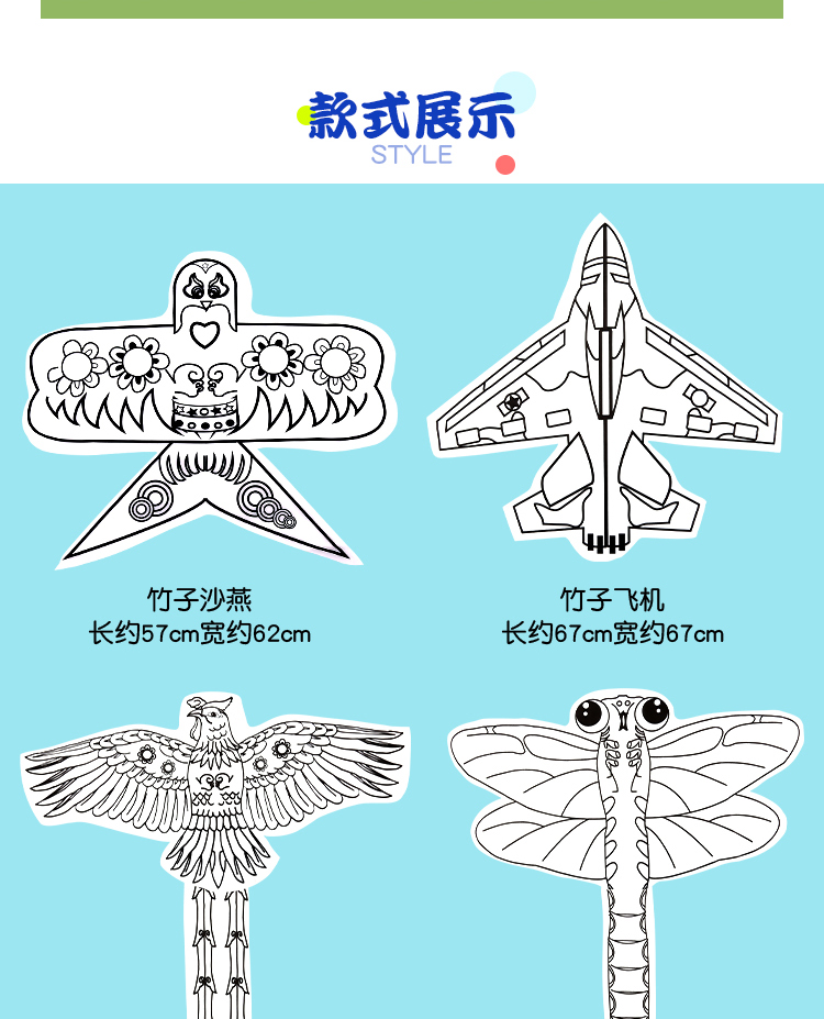 竹子风筝材料包手工制作教学材料包幼儿园空白自制涂色风筝 wtt18aj