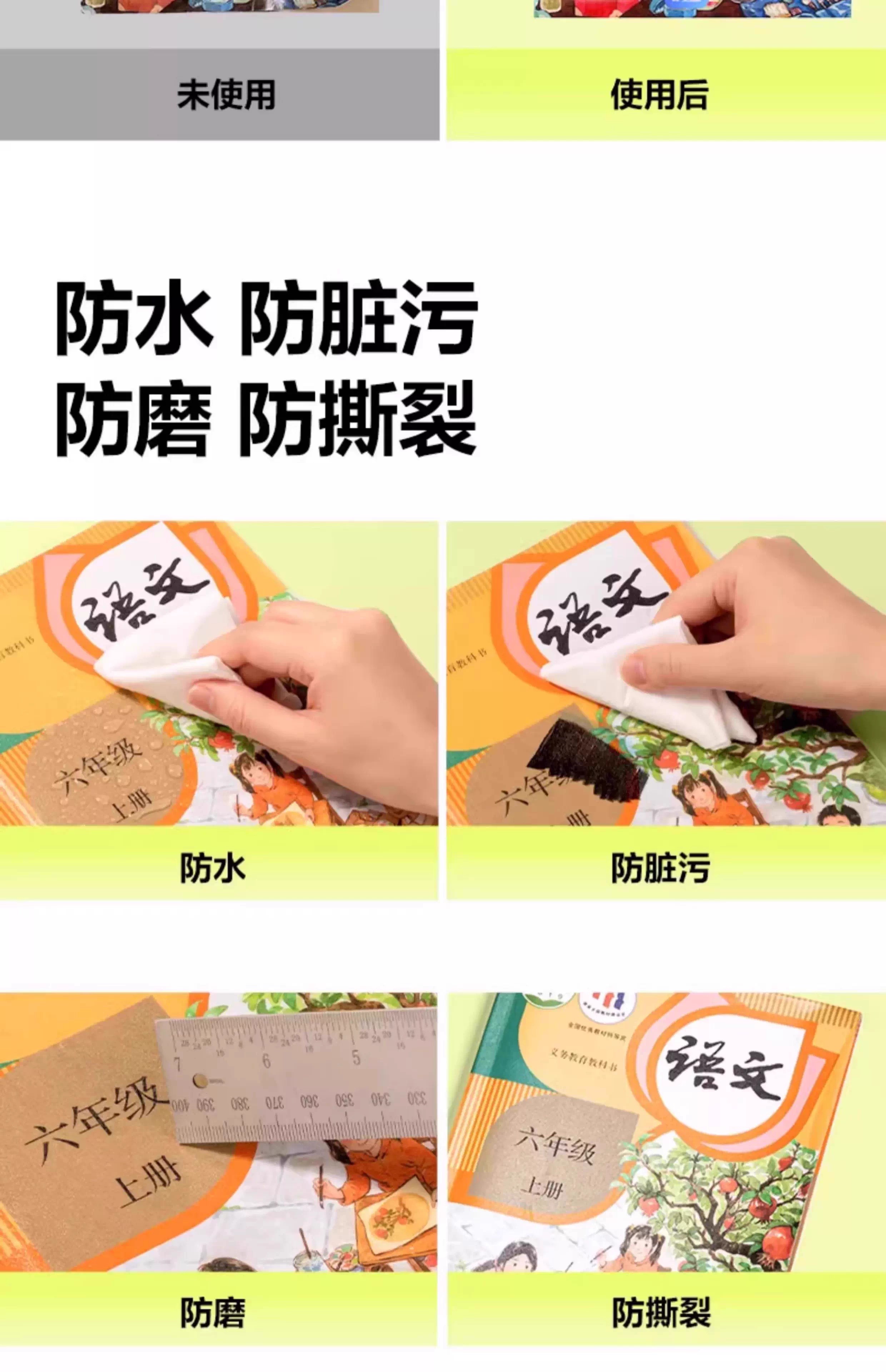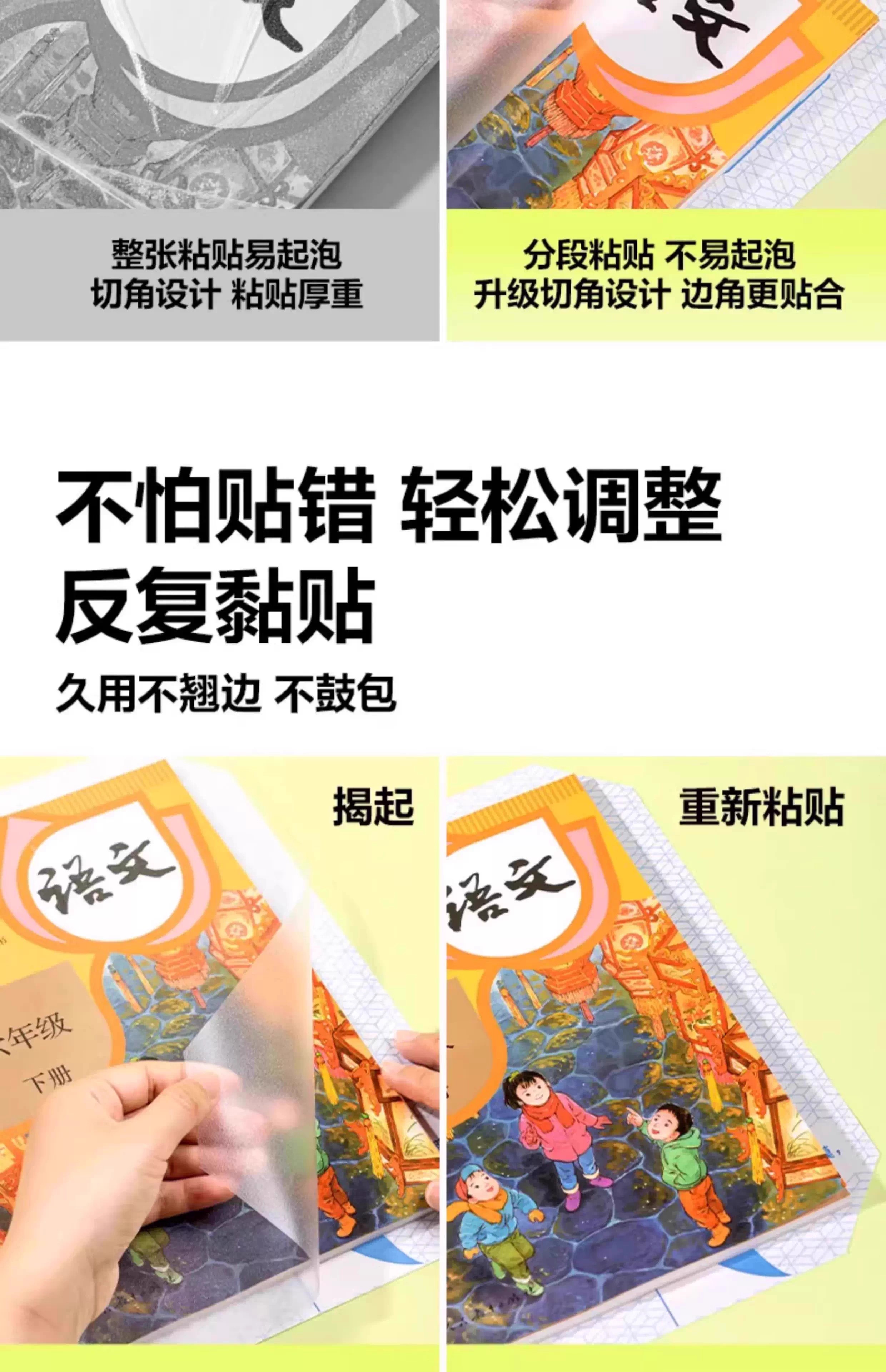 【开学季❗分段式包书皮套】分段贴膜易操作,透明磨砂材质耐磨防滑,防水防污,保护教材封面,适配中小学教材,书皮纸自粘透明磨砂加厚小学生L-d