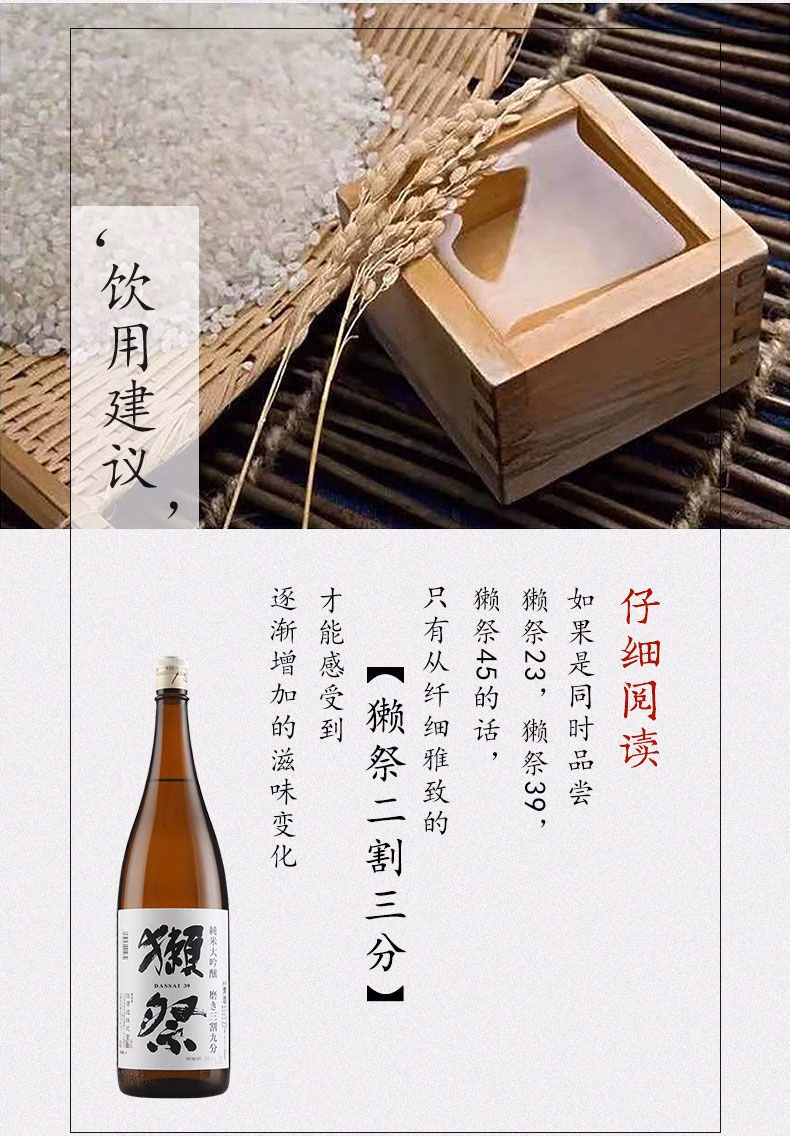 日本獭祭39 三割九分 纯米大吟酿清酒1800ml*1瓶