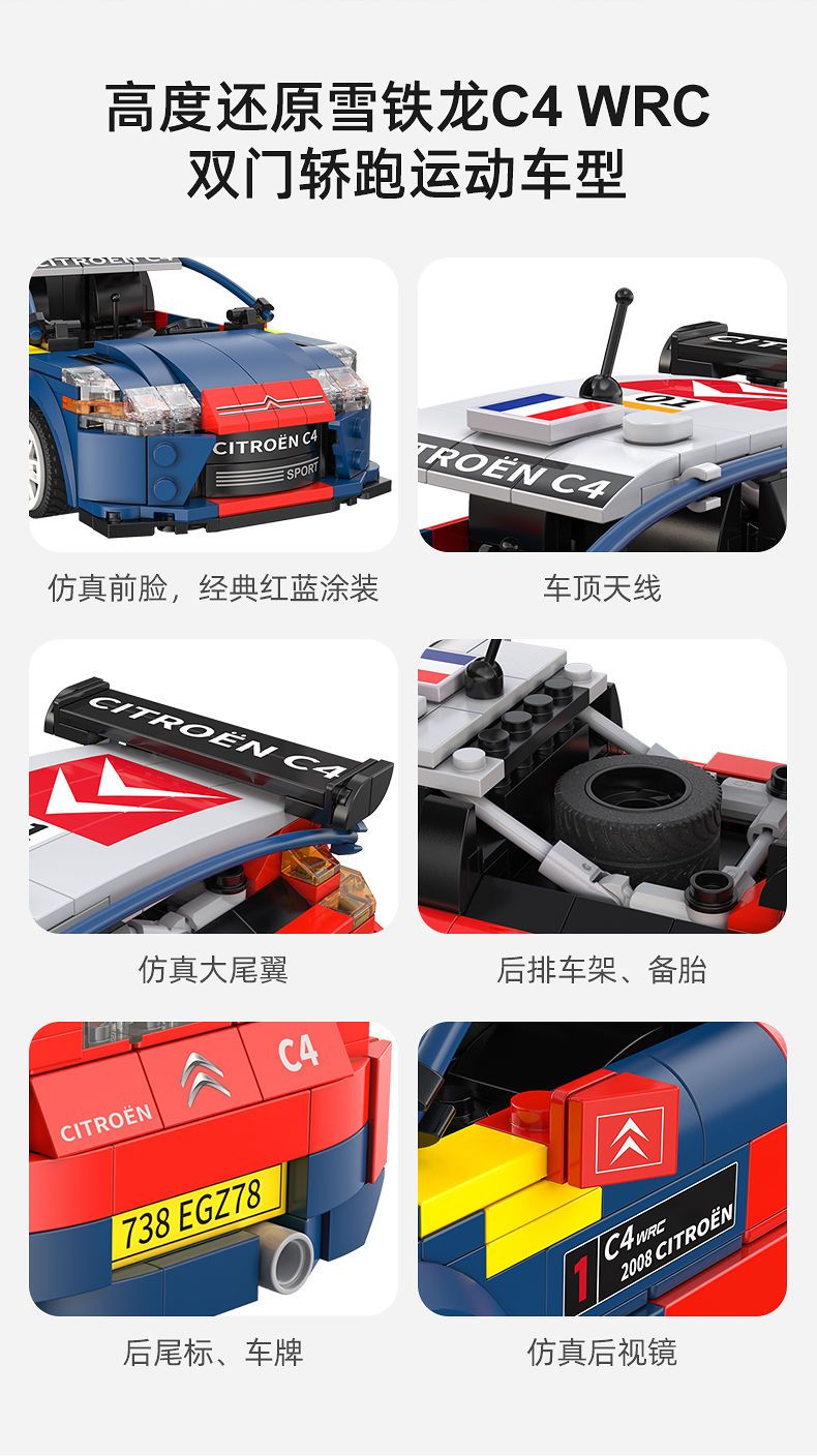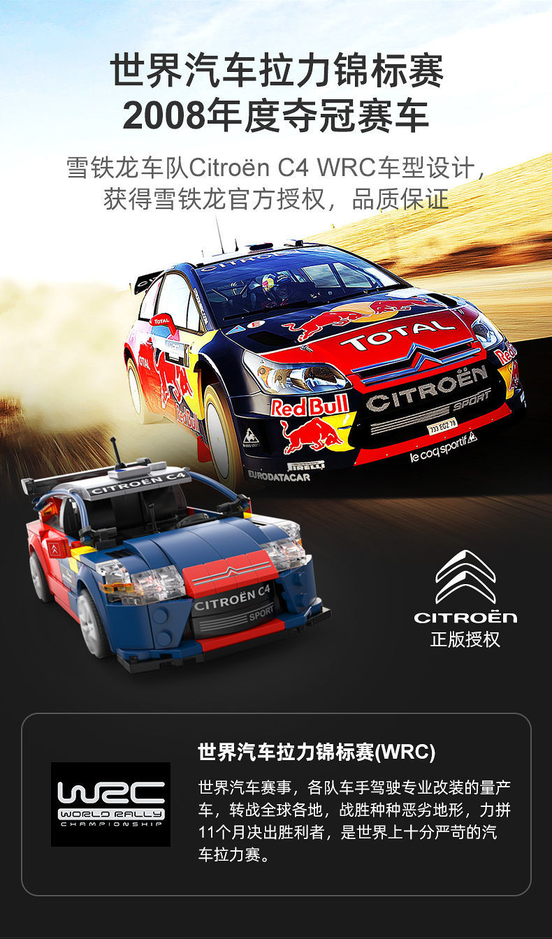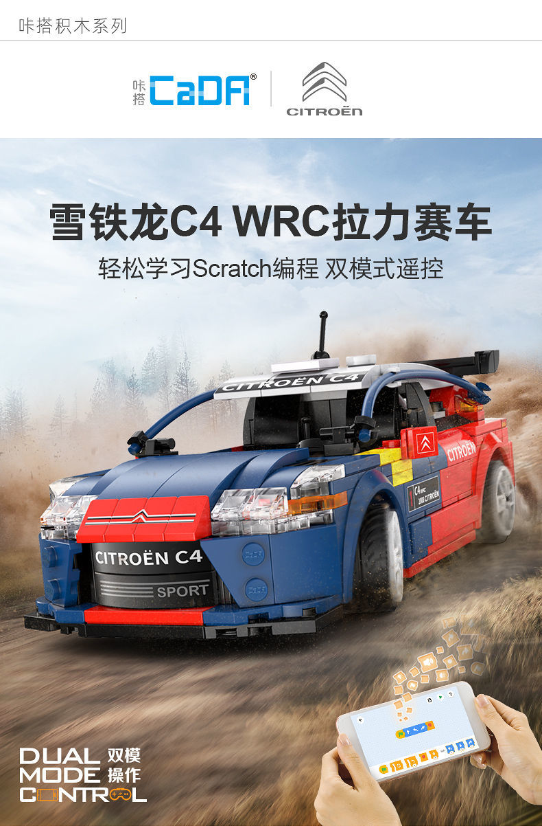【双鹰】咔搭可遥控电动积木车雪铁龙系列拼装跑车男孩玩具车生日礼物