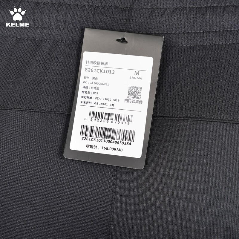 卡尔美(KELME)足球跑步紧身裤运动休闲拉链收腿裤长裤8261CK1013 黑色 8261CK1013-000