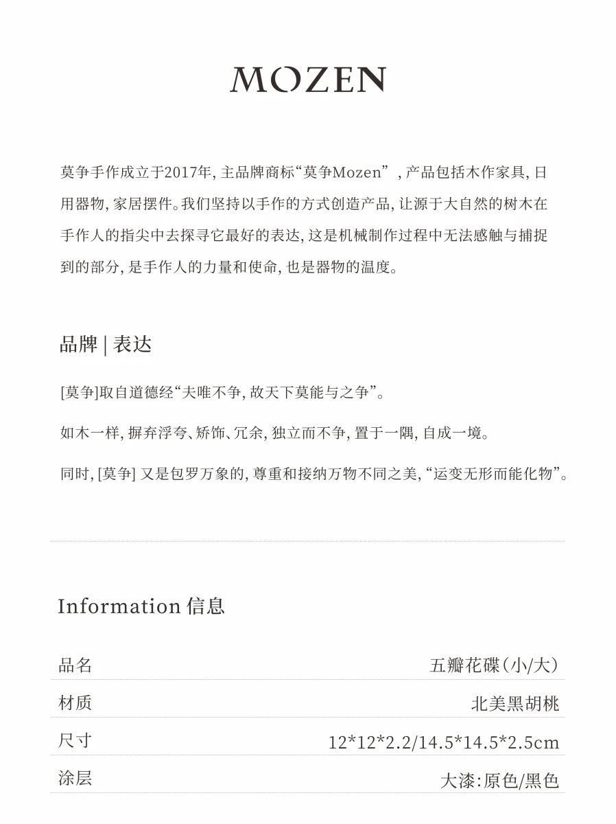 手作木器 五瓣花碟 北美黑胡桃木 整木手工雕刻大漆