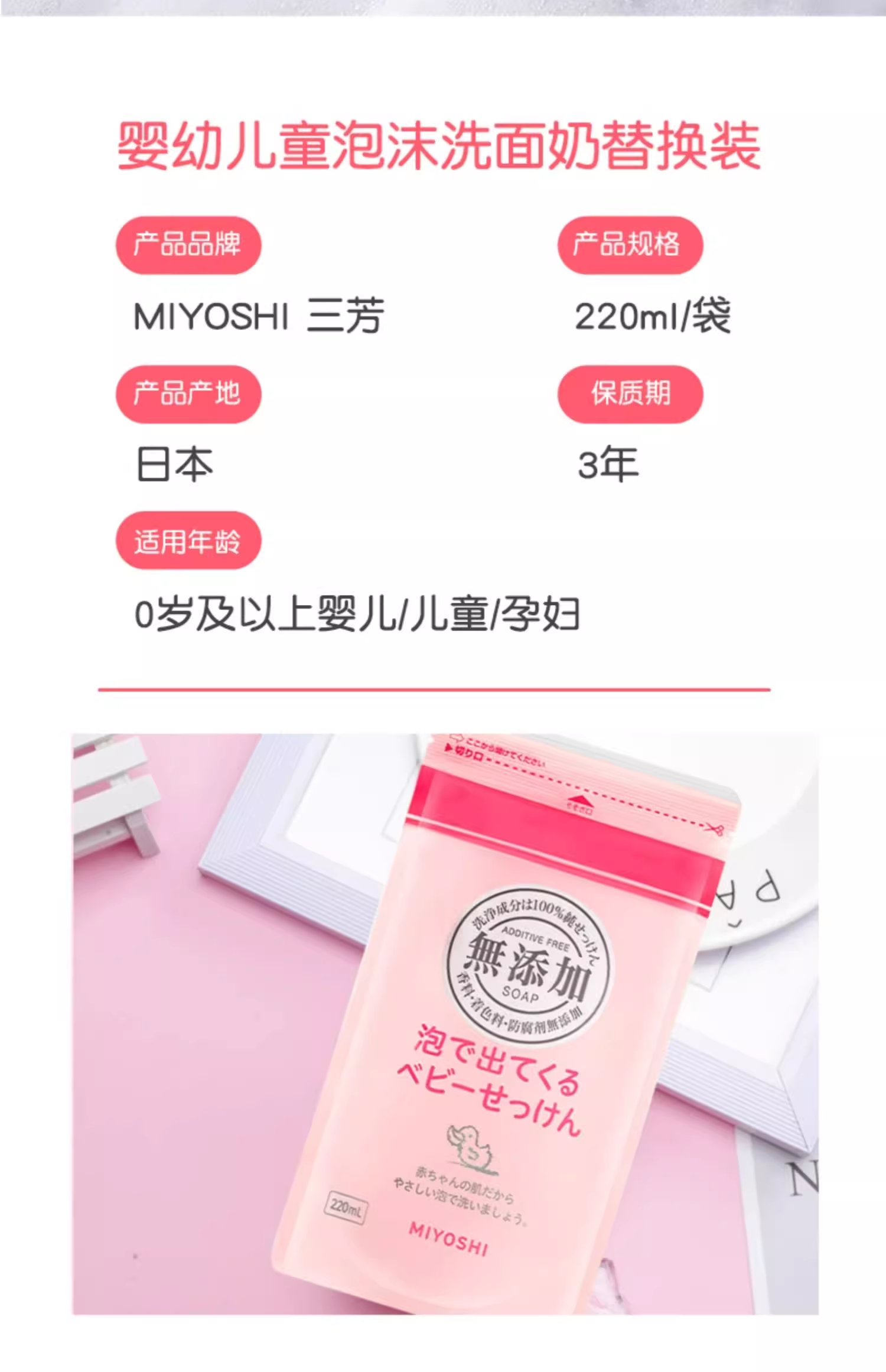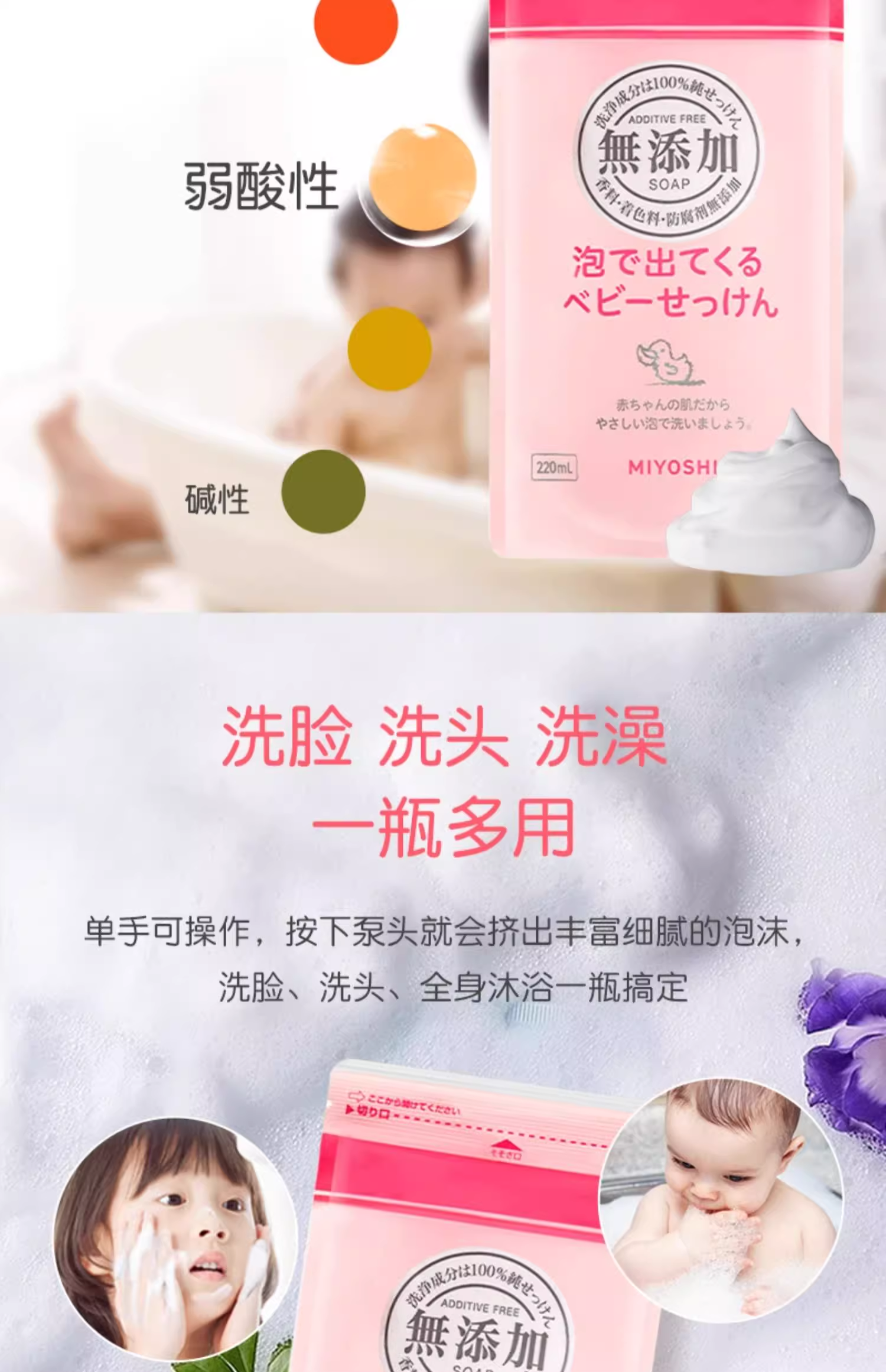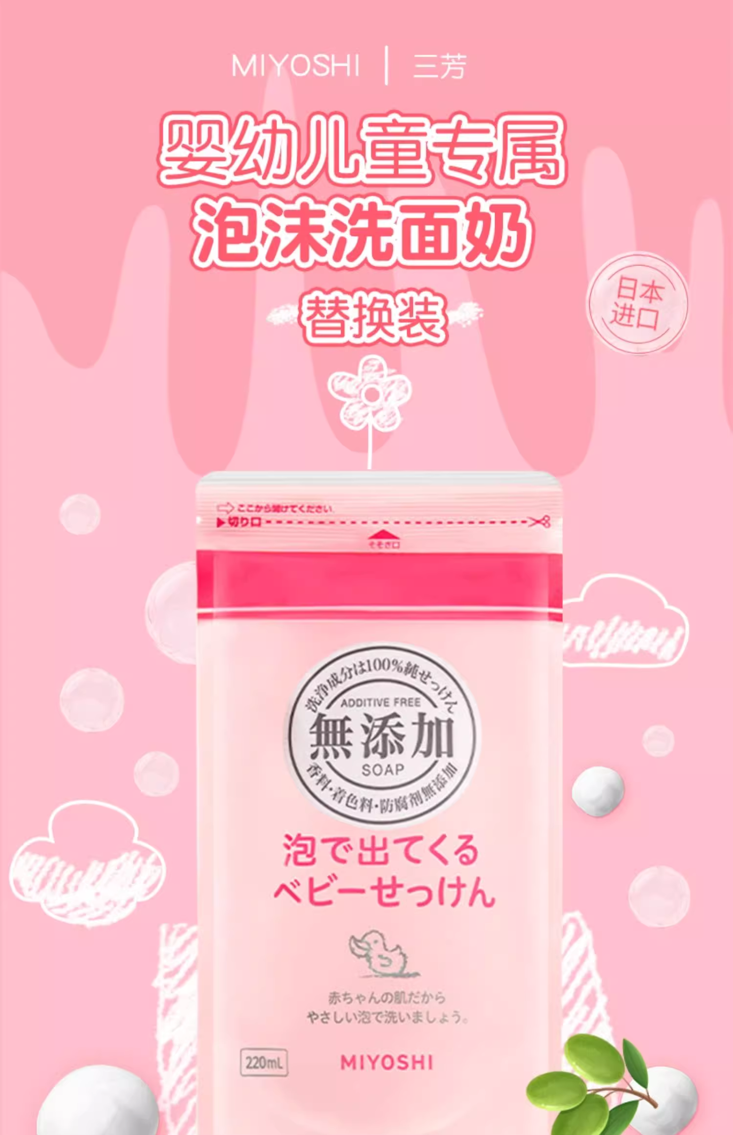 【跨境】Miyoshi/三芳儿童新生儿泡沫沐浴露替换装220ml