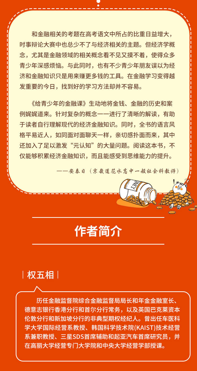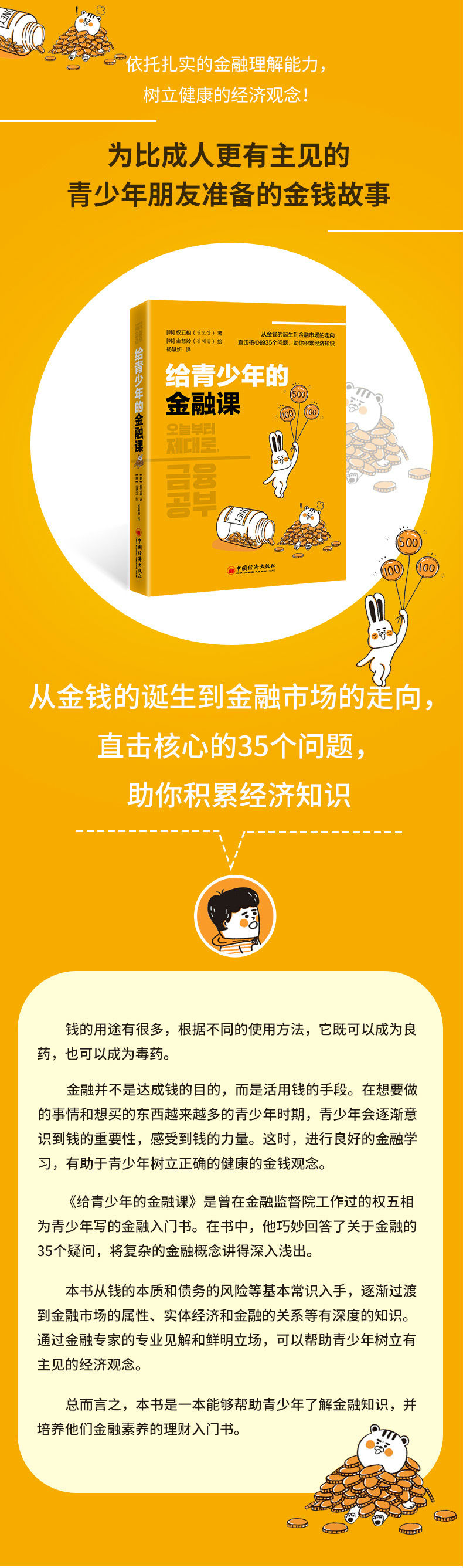 总而言之,本书是一本能够帮助青少年了解金融知识,并培养他们金融素养的理财入门书。