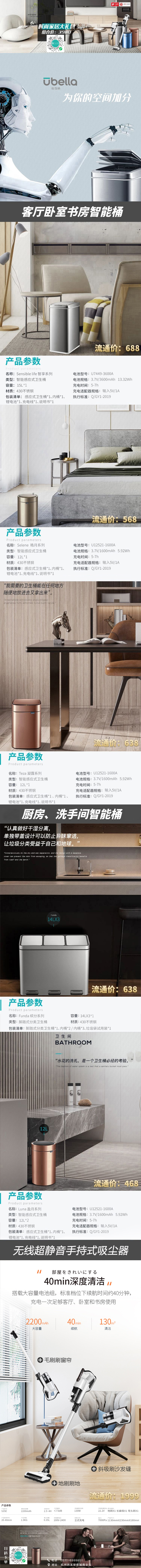客厅智享15L*1 + 卧室皓月12L*1 + 书房凝露12L*1 + 餐厅缤分14LX3*1 + 卫生间盈月12L*2 + 无线手持吸尘器*1