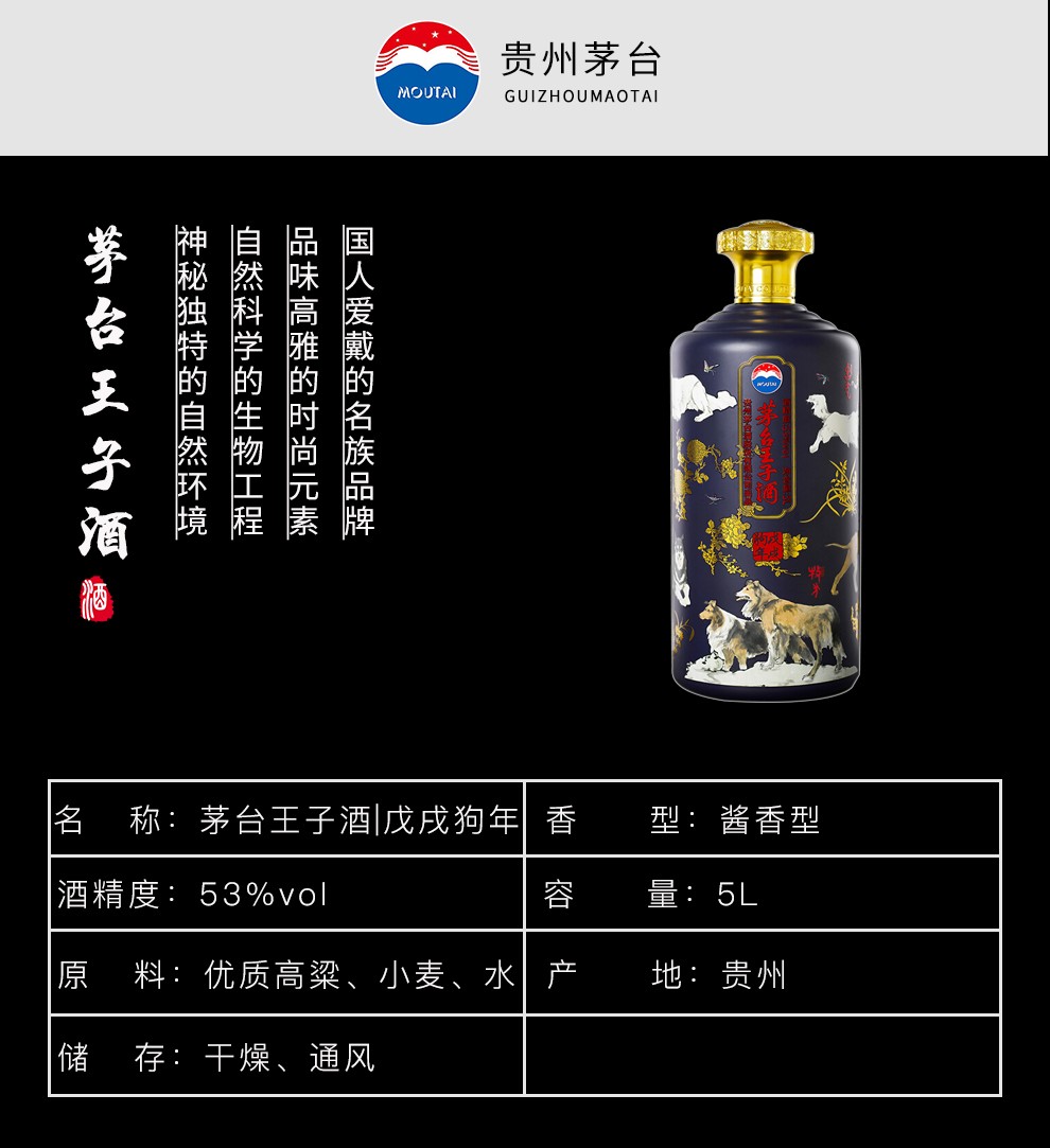 茅台王子酒 生肖王子酒 53度 十全十美 5L 戊戌狗年纪念酒