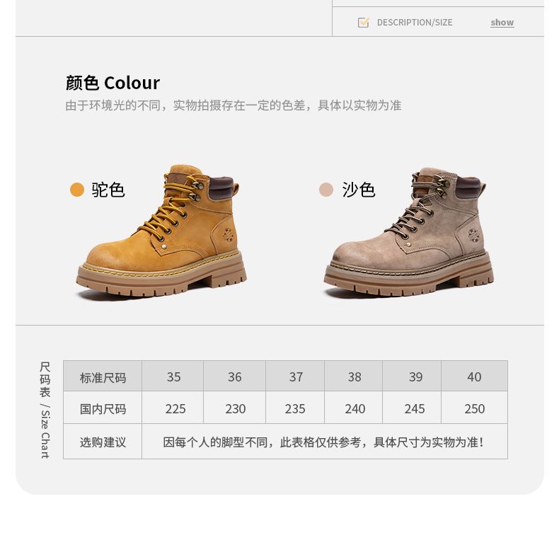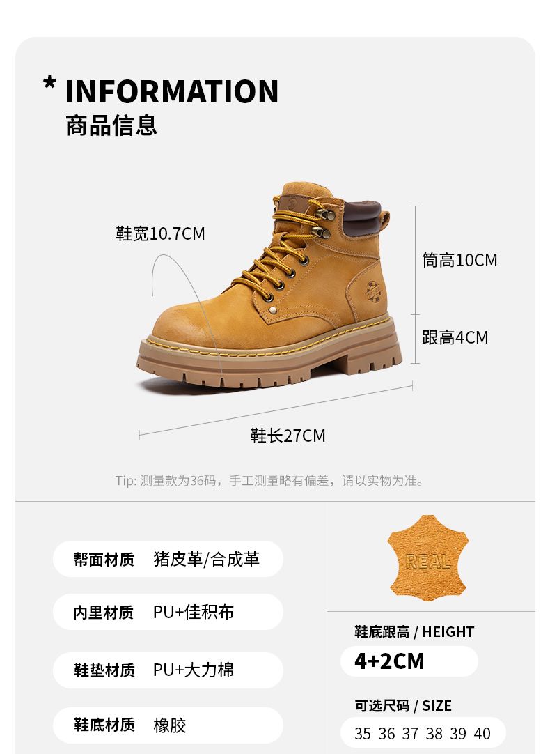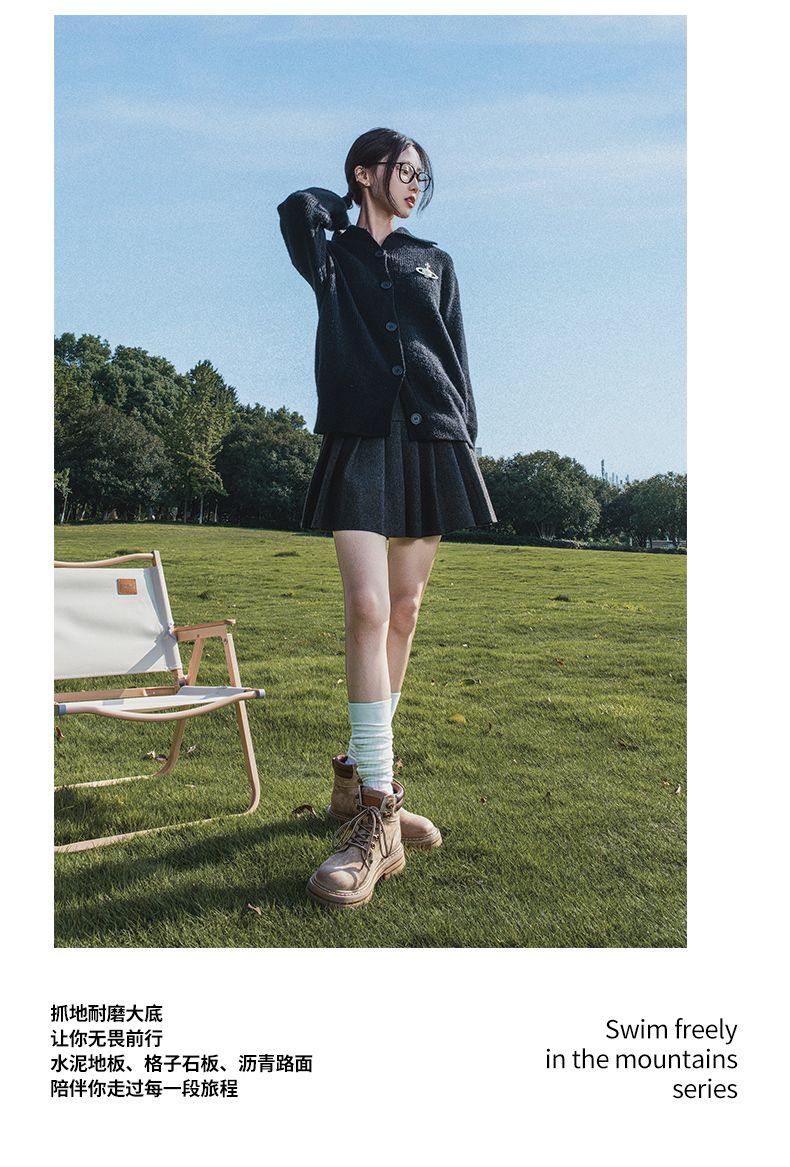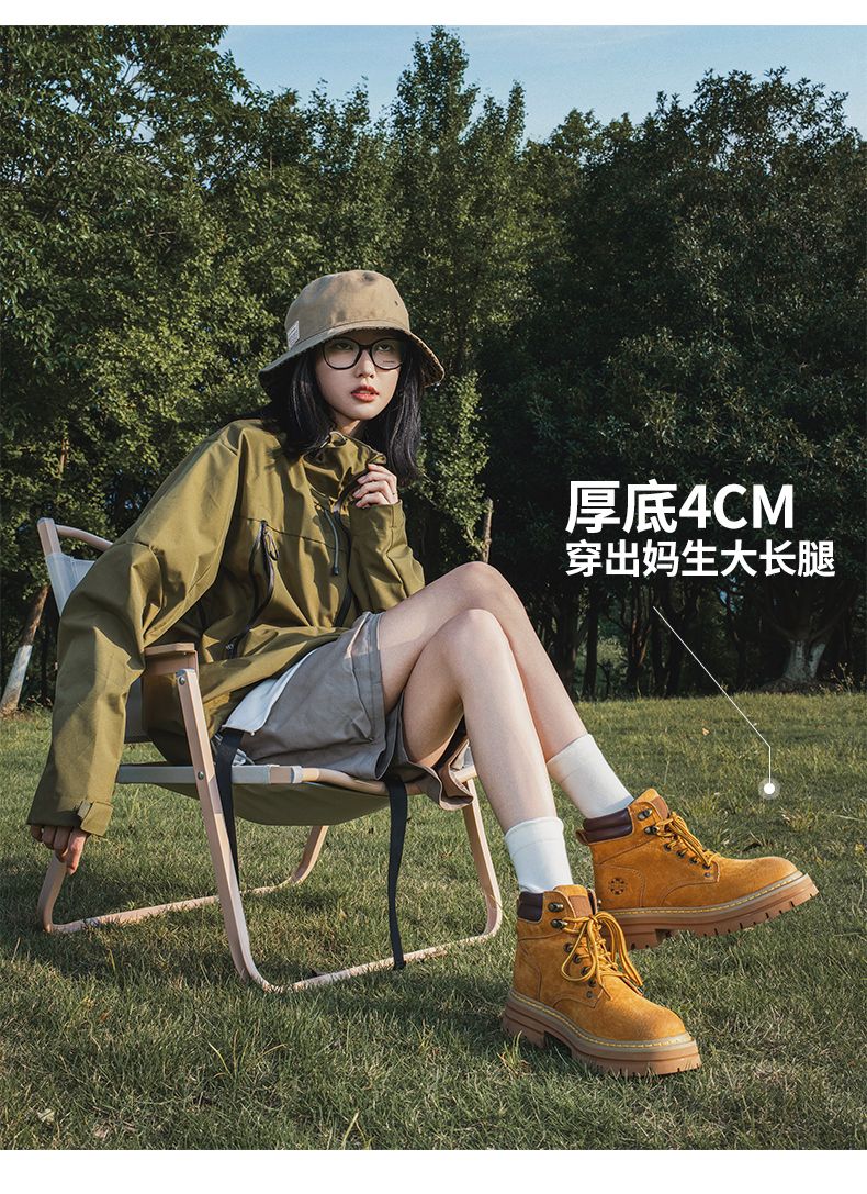 ZHR则则厚底增高马丁靴防水防滑女靴2024秋季新款百搭户外工装靴
