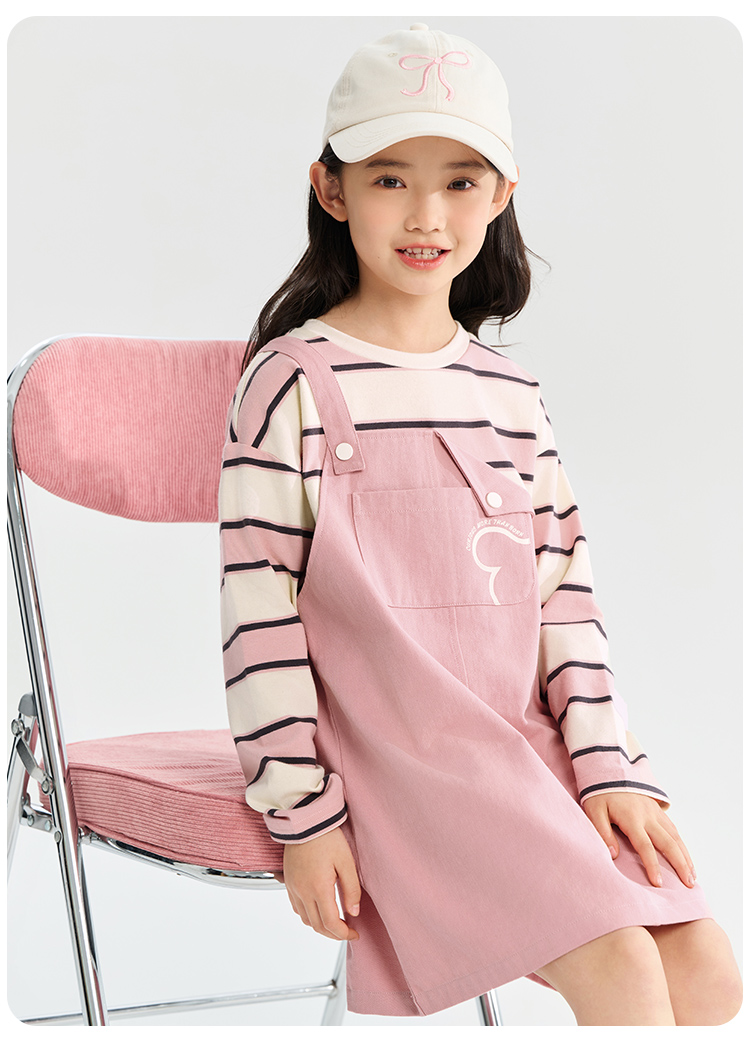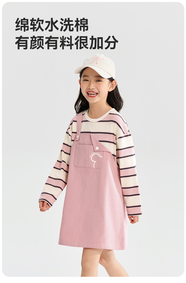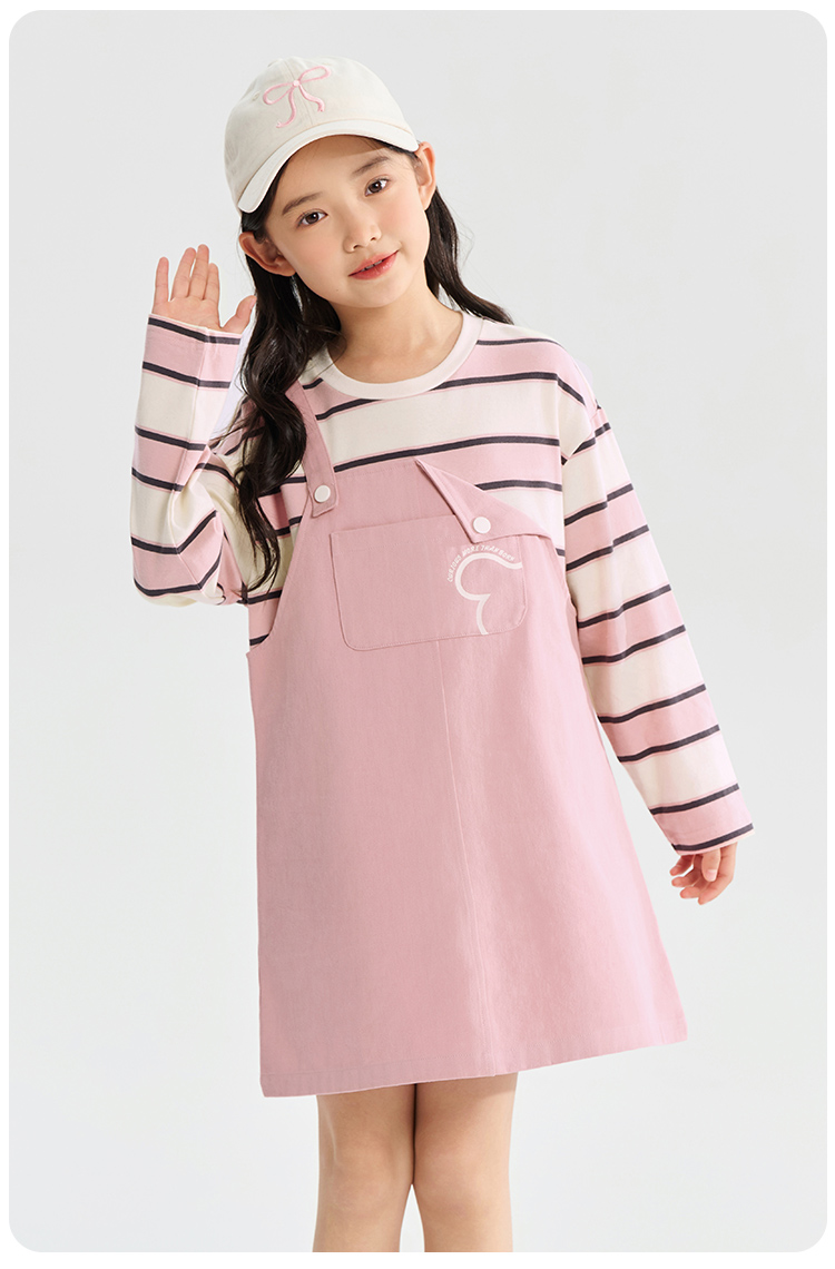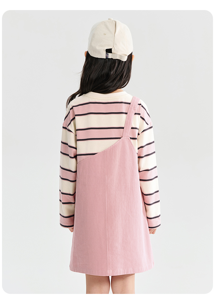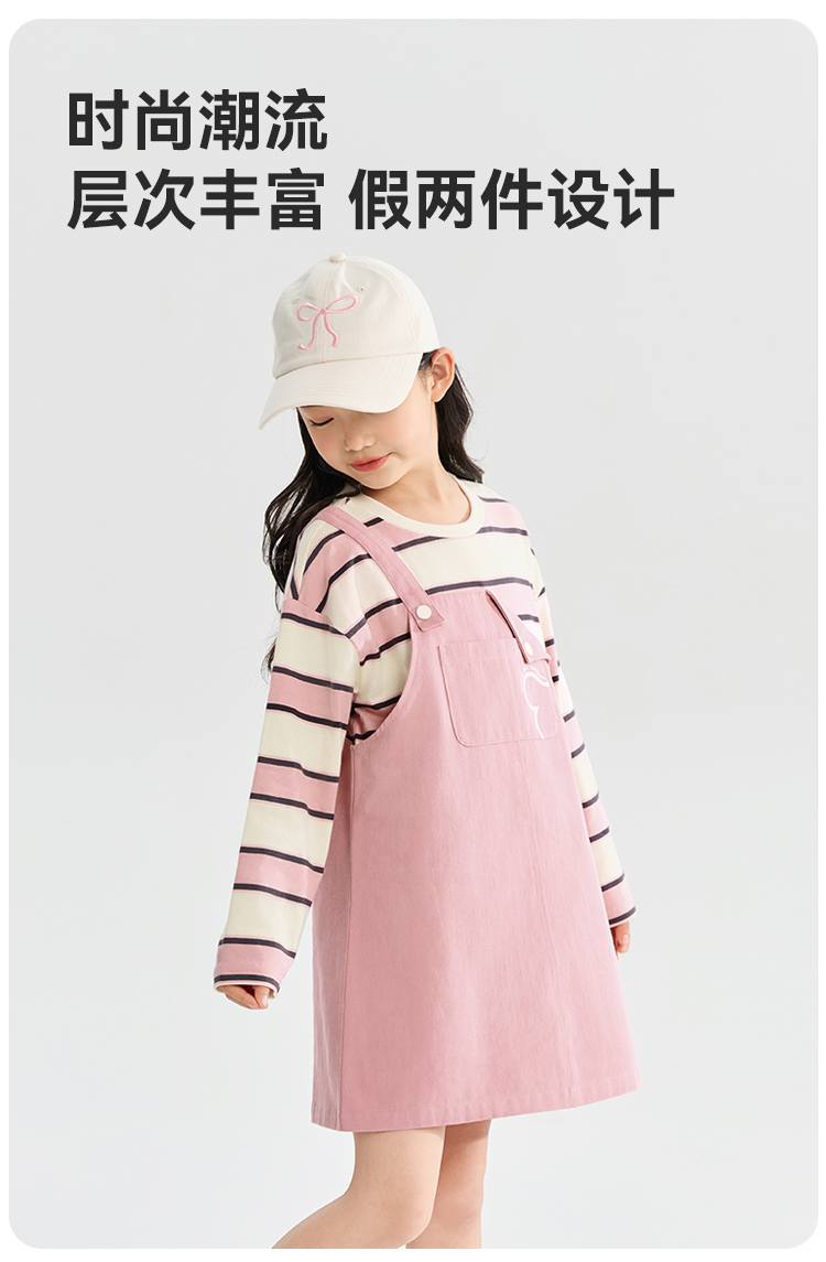 【清仓捡漏】【假两件条纹裙】【130-165】【可可鸭】女童春秋长袖连衣裙儿童裙子
