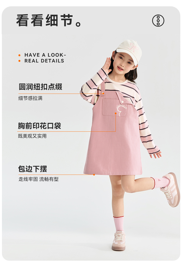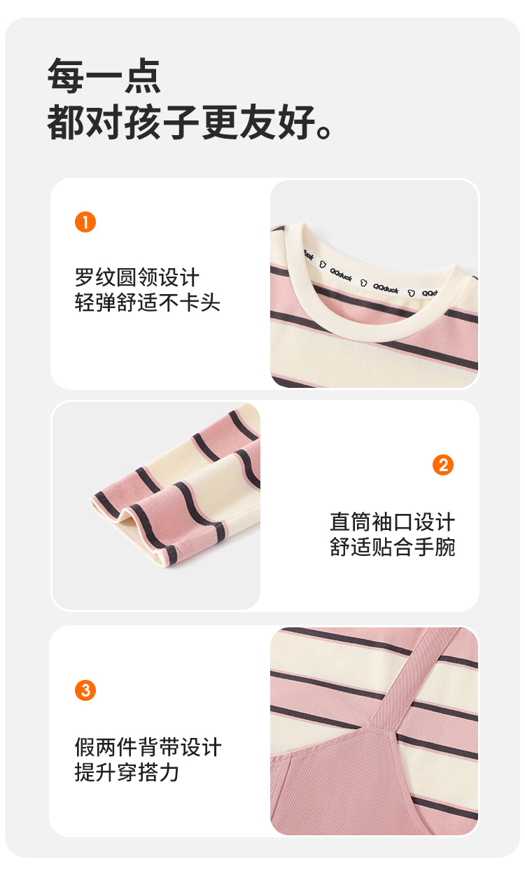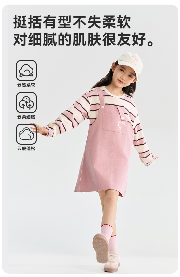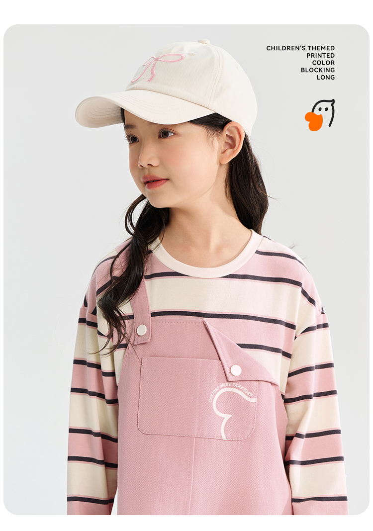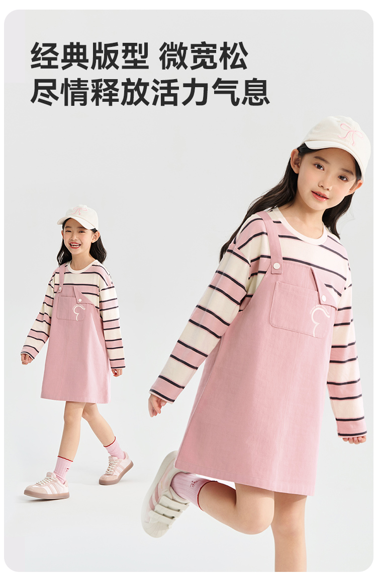 【清仓捡漏】【假两件条纹裙】【130-165】【可可鸭】女童春秋长袖连衣裙儿童裙子