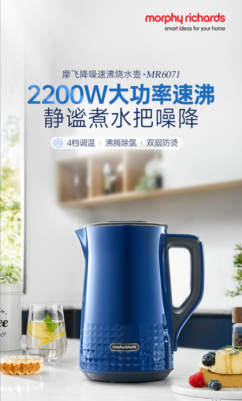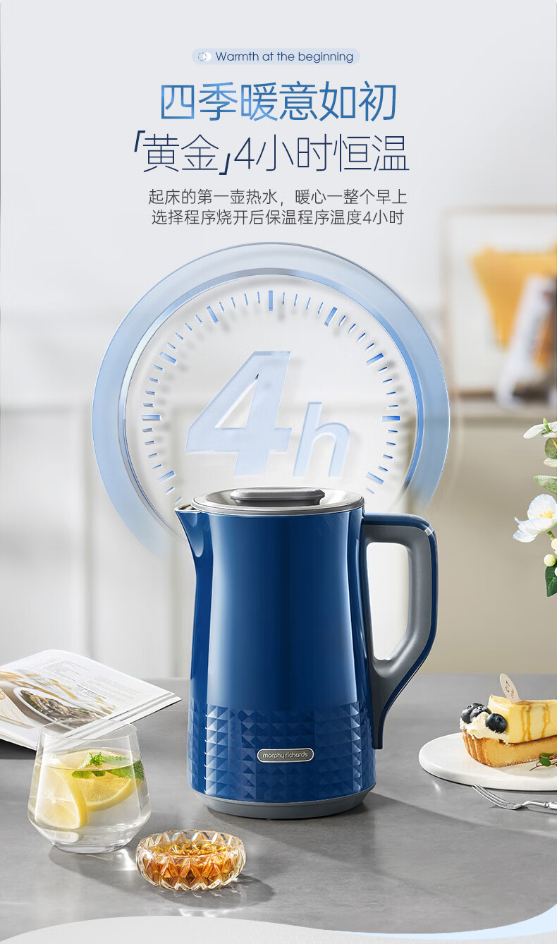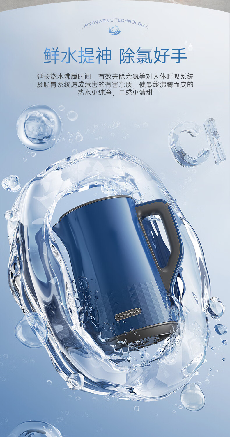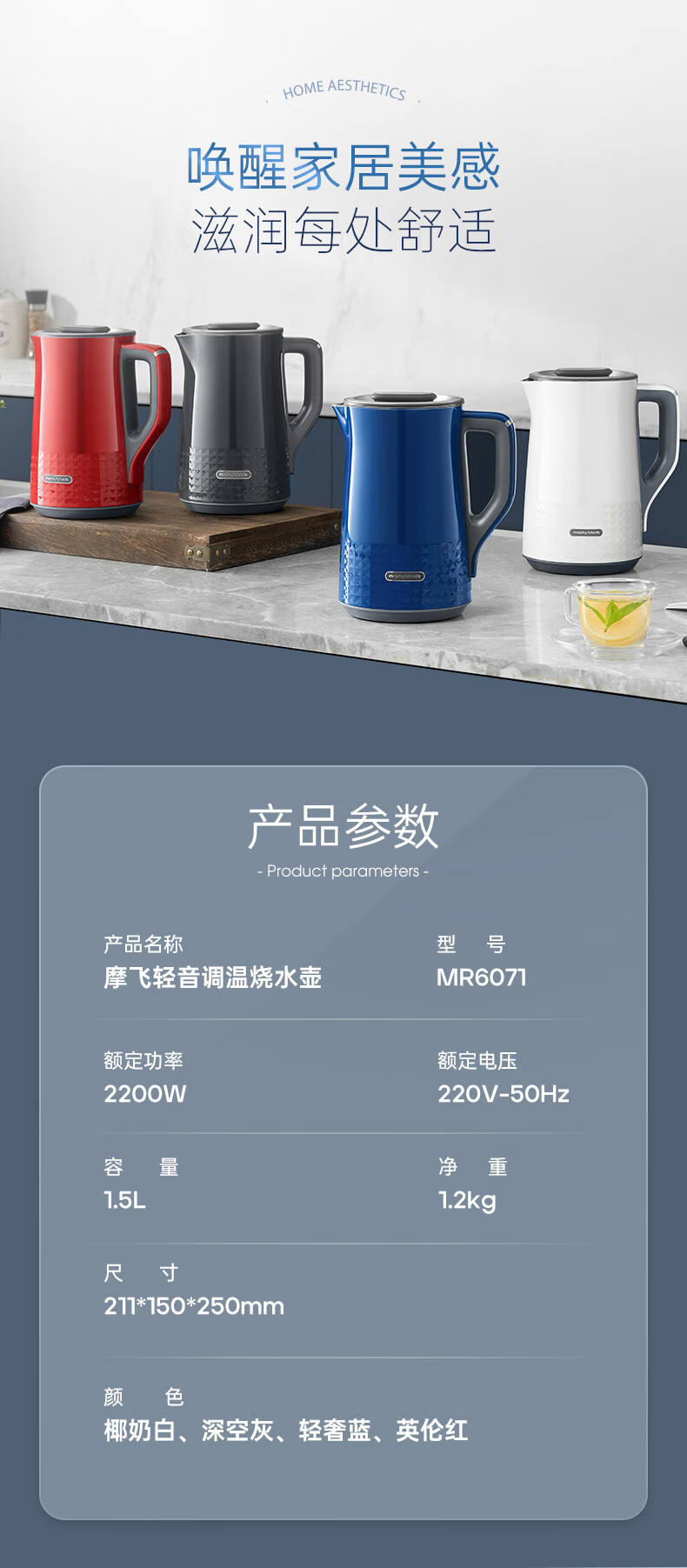 摩飞电热水壶保温一体双层 MR6071 1.5L 轻奢蓝
