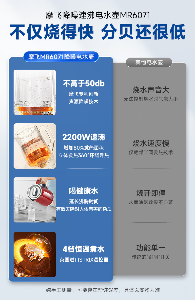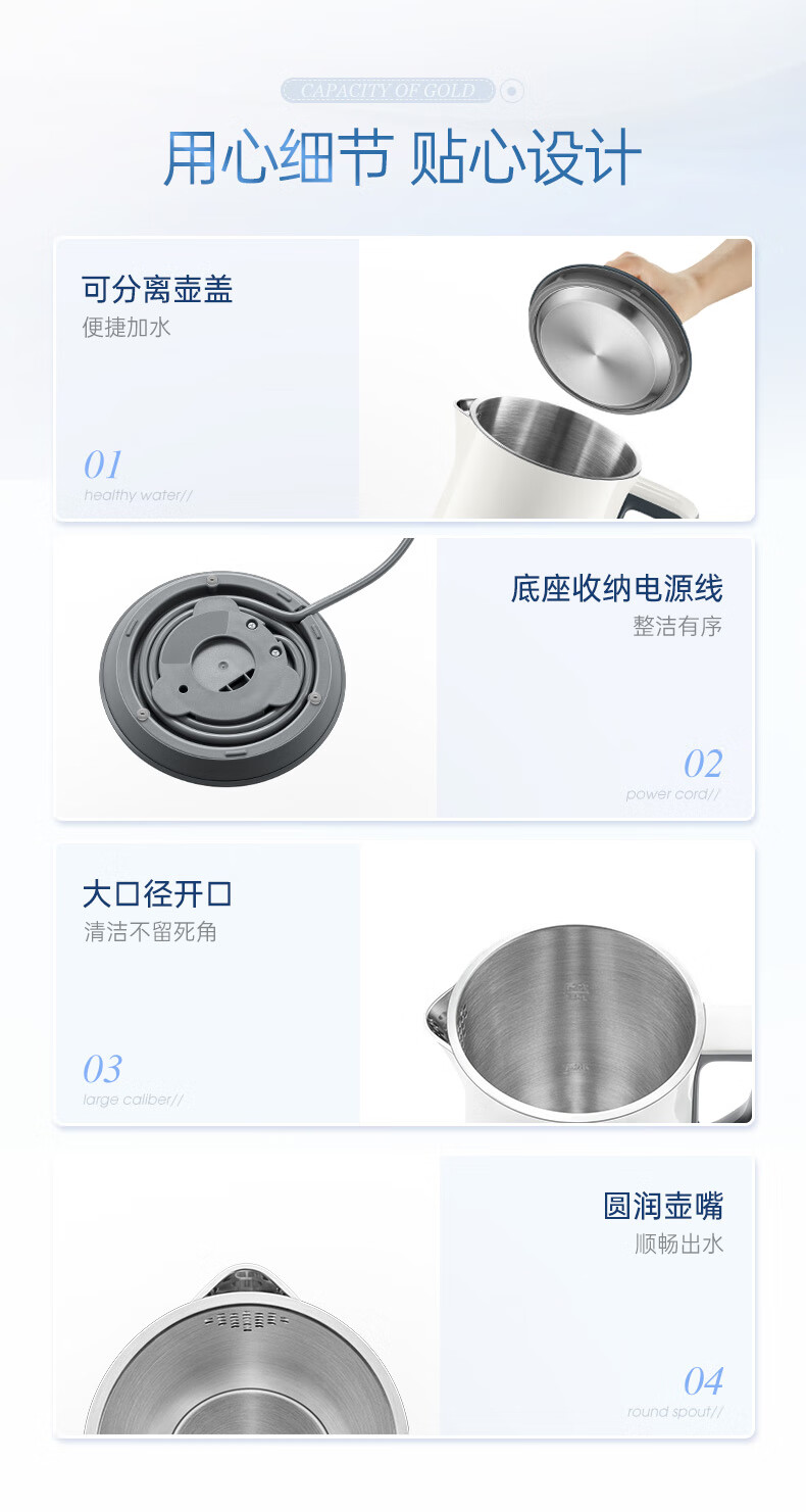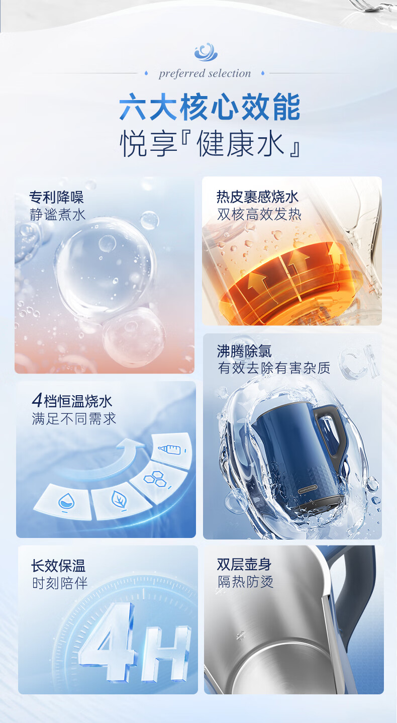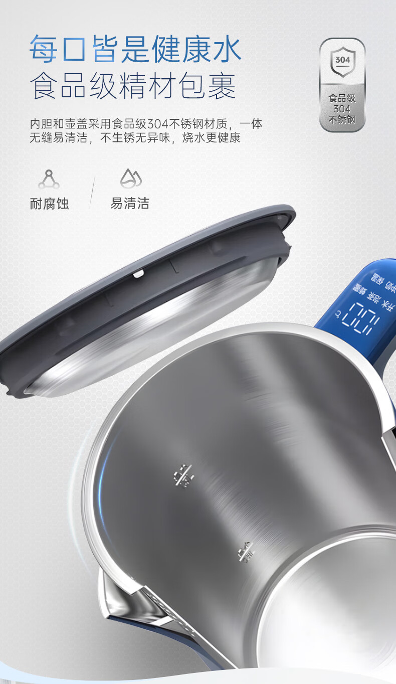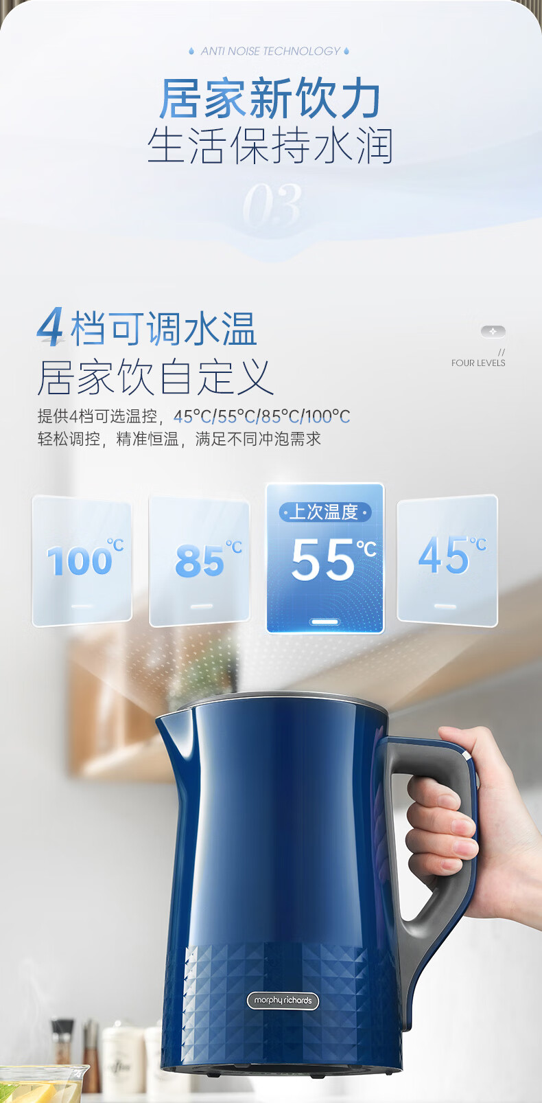 摩飞电热水壶保温一体双层 MR6071 1.5L 轻奢蓝